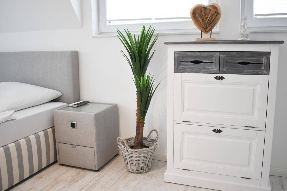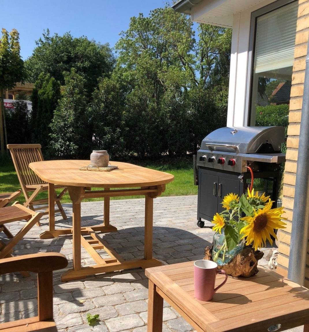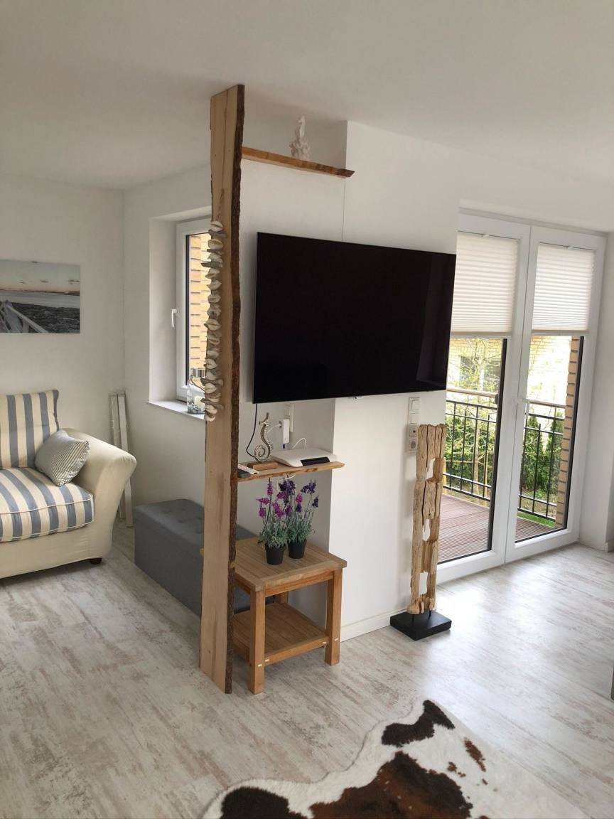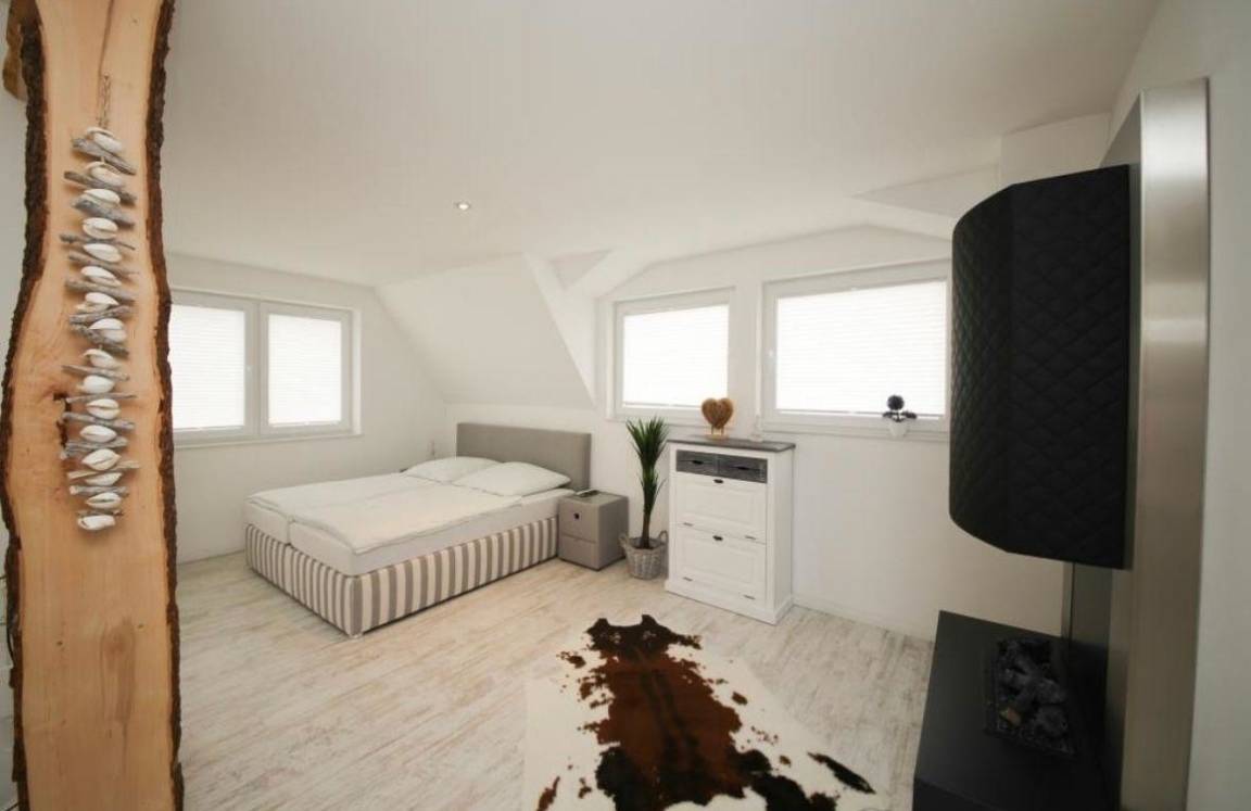 Das stilvolle Haus ist Ende 2019 fertiggestellt und modern, maritim eingerichtet. Große bodentiefe Fenster im Wohn- und Schlafbereich und moderne Bodenbeläge sorgen für eine helle und gemütliche Atmosphäre. Im Wohnzimmer befinden sich eine bequeme Couch und ein hochwertiger Essbereich im maritimen Stil für sechs Personen. An das Wohnzimmer grenzt ein kleiner Wintergarten, der vom sonnigen Garten umgeben ist. Im Erdgeschoss können Sie neben dem Gäste-WC die hauseigene, moderne Sauna im geräumigen Saunaraum erleben. Die offene Marken-Küche ist unter anderem mit Markengeräten von Neff mit Induktionsherd, Kühl-/Gefrierschrank, Backofen, Mikrowelle, Kaffeevollautomat und Geschirrspülmaschine ausgestattet. Im Obergeschoss befinden sich zwei Schlafzimmer jeweils mit Boxspringbetten. Das eine Schlafzimmer ist in L-Form geräumig geschnitten und komfortabel mit Doppelbett, XL-Couchsessel und hochwertigen Elektrokamin ausgestattet. Vom Schlafzimmer aus gelangen Sie zum Südbalkon. Das weitere Schlafzimmer im Obergeschoss ist mit zwei Boxspring-Einzelbetten versehen, die auch als Doppelbett zusammengestellt werden können. Beide Schlafzimmer sind mit Verdunkelungs-Plissee's für ein angenehmen Schlaf ausgestattet. Das modern geflieste Badezimmer ist als Vollbad mit Dusche, WC und Badewanne ausgestattet. Das Dachgeschoss hat seinen Charm durch die hohe Giebel-Decke und bietet weiteren Schlafraum mit einem Doppelbett. Alle Schlafräume sowie das Wohnzimmer sind mit großen, modernen Flachbild-Fernsehern mit Telekom MagentaTV ausgestattet. Schnelles Glasfasernetz mit WLan und Fußbodenheizung sind im ganzen Haus vorhanden.