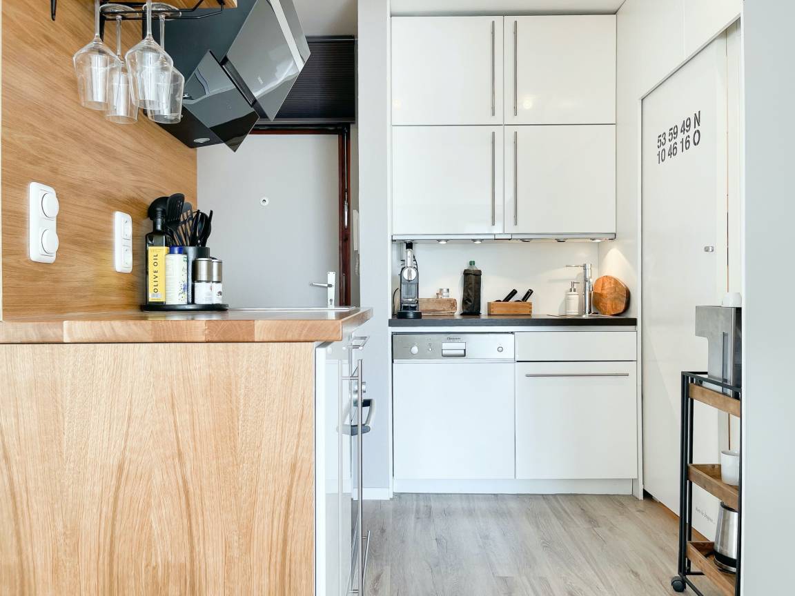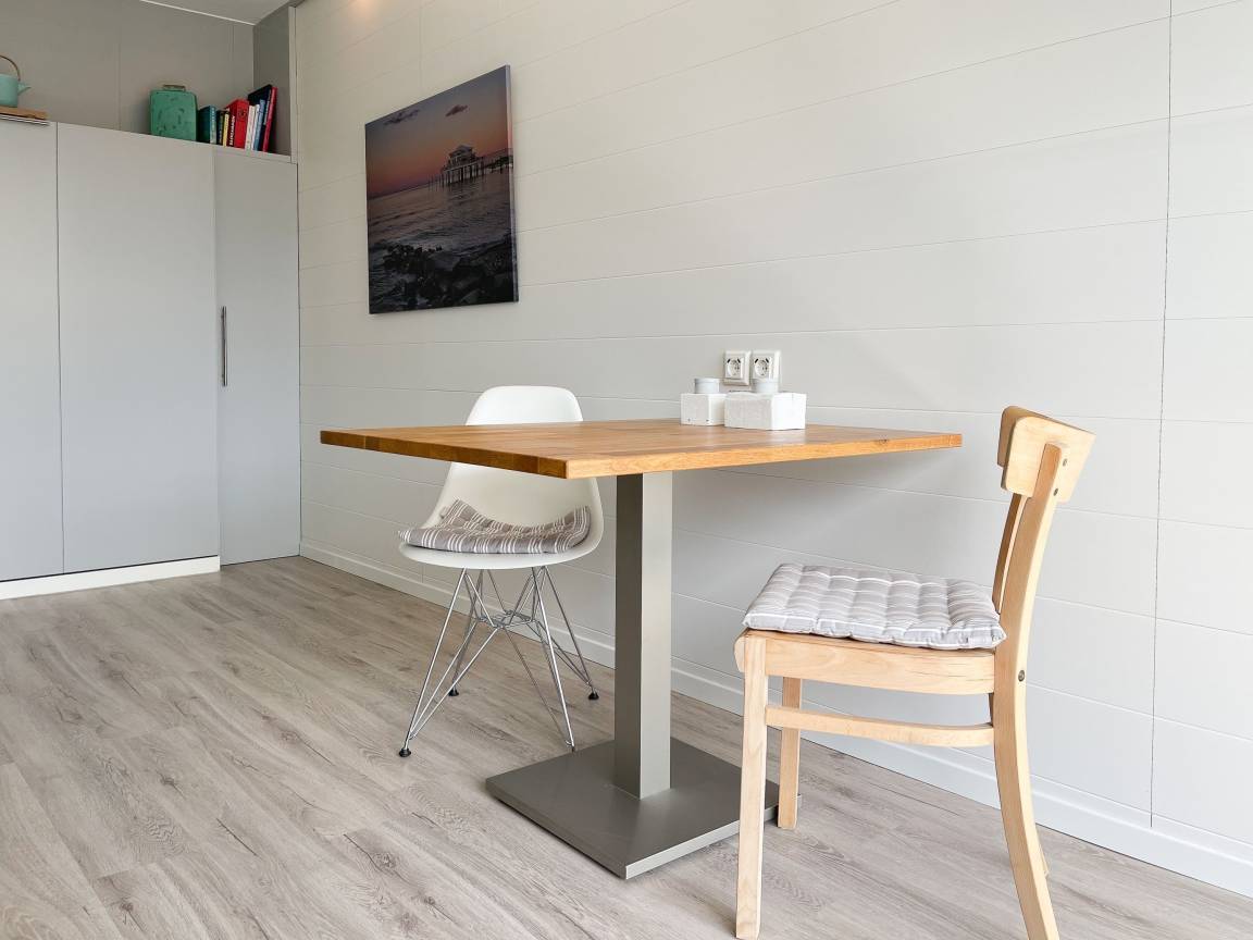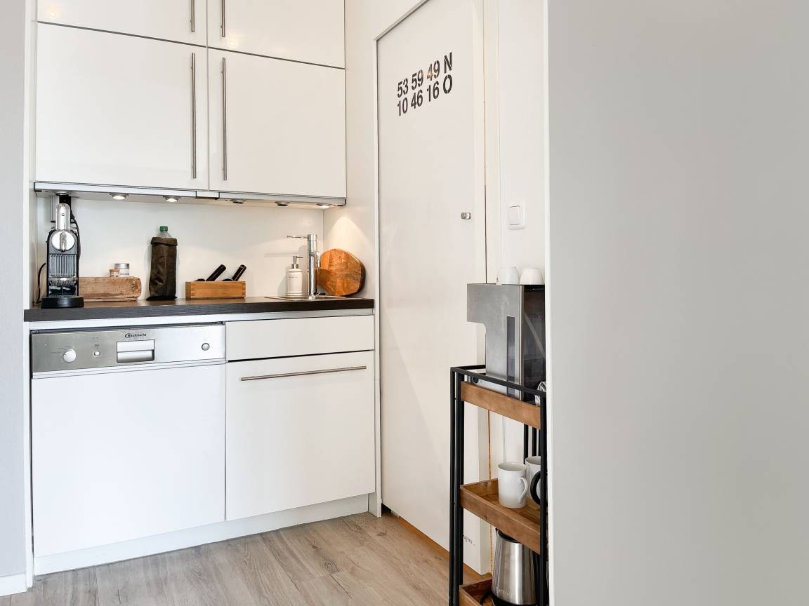 Das mit Herz und Seele gestaltete Studio ist klein aber fein und liegt im 1. Obergeschoss einer terrassenförmigen Wohnanlage zur lichtdurchfluteten Südseite. Ein kleines Raumwunder mit Liebe zum Detail und reichlich Staufläche, da jeder qm optimal genutzt wurde. Der stylische Wohnbereich mit Sofa, TV, Bluetoothradio, Schrankbett und einem Essbereich für 2 Personen, präsentiert sich lichtdurchflutet dank bodentiefer Fensterelemente. Das Doppelbett verschwindet tagsüber im Schrank und ist mit nur einem Handgriff zur Schlafenszeit bereit. Ein Highlight ist der äußerst großzügige Sonnenbalkon mit elektrischer Markise, Gartenmöbeln und Sonnenliege. Die kleine Küche fügt sich perfekt ein und ist mit allen technischen Geräten wie Spülmaschine, Backofen und 2er Induktionsfeld ausgestattet. WLAN steht selbstverständlich zur kostenlosen Nutzung zur Verfügung. Es gibt ein kleines Duschbad und einen Garderobenschrank im Eingangsbereich. Der kleine Strandräuber liegt direkt neben der Freibeuter-Höhle, ideal zum Urlauben unter Freunden, ganz nah beieinander mit Privatsphäre.