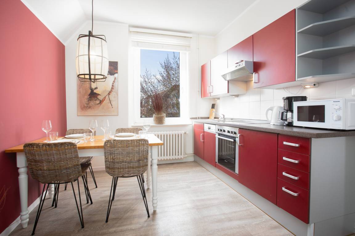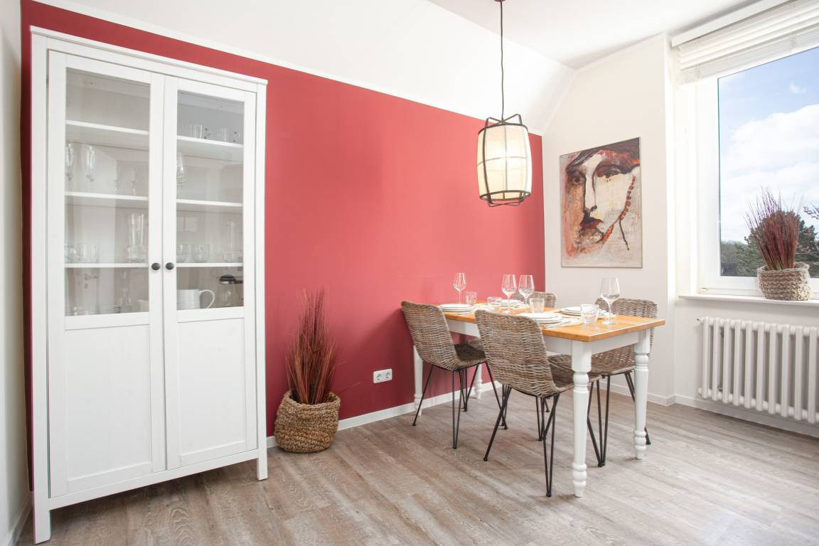 Internet per WLAN in der Wohnung sowie ein PKW-Stellplatz steht Ihnen kostenlos zur Verfügung und ein Münzwaschautomat und Trockner sind in dem Appartementhaus vorhanden. Auf Anfrage steht im Appartement ein Kinderreisebett und ein Hochstuhl für Sie bereit.