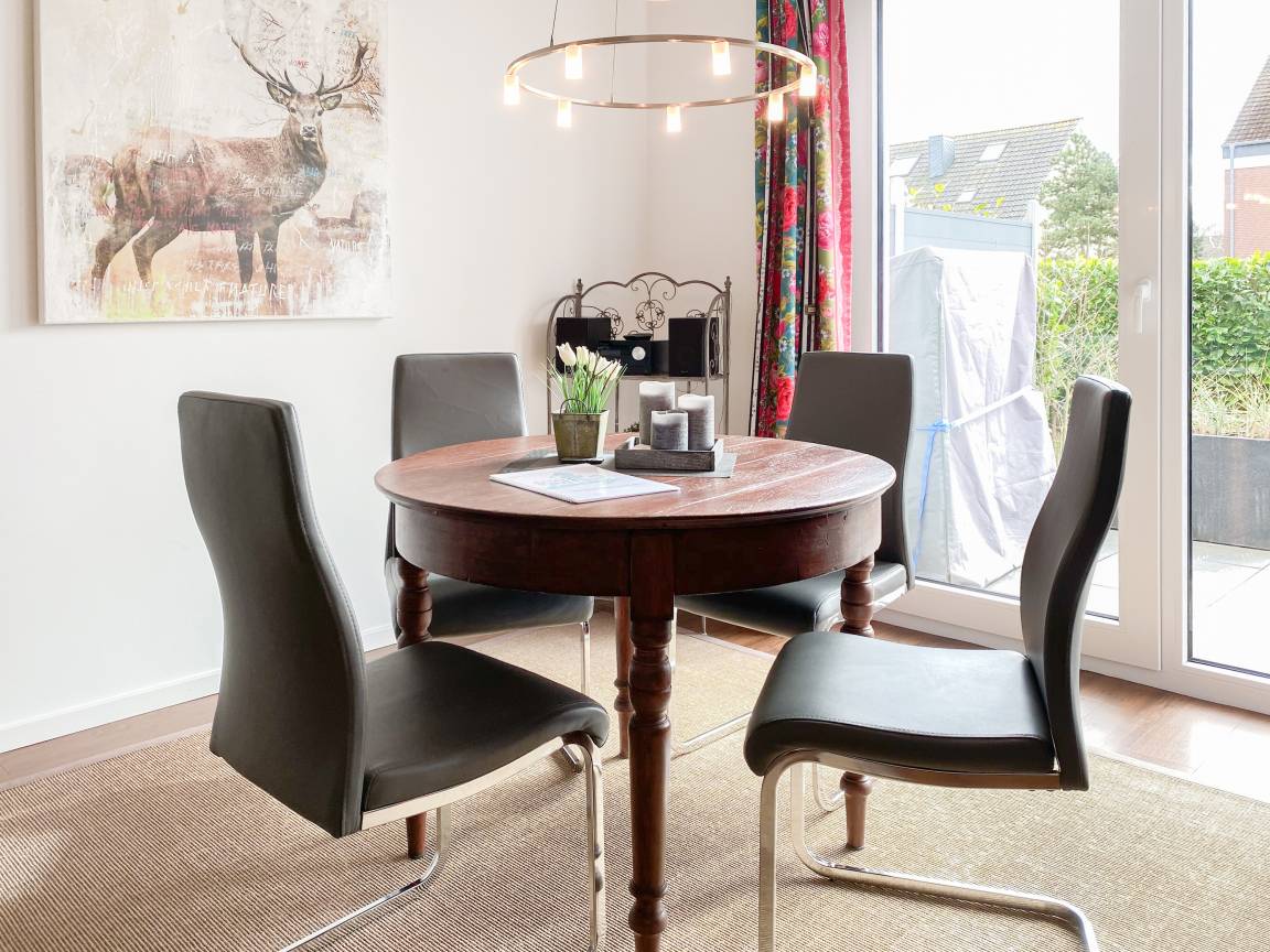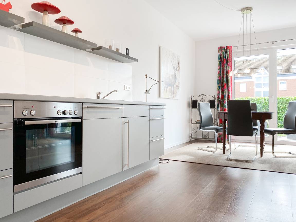 Die[nbsp] Ferienwohnung[nbsp] im Erdgeschoss des neu erbauten Hauses "Nienhüs" mit nur 7 Wohneinheiten verfügt über eine sehr schöne ca. 20 qm große Terrasse in Südausrichtung mit kleinem Gartenanteil. Sie ist mit Gartenmöbeln, einem Strandkorb und einer elektrischen Markise ausgestattet. Ein herrlicher Rückzugsort zu jeder Tageszeit.[nbsp] Der großzügige Wohnbereich verfügt über eine gemütliche Couchgarnitur mit Schlaffunktion (120x200), TV und kostenlosem Internetzugang über WLAN. Die bodentiefen Fensterelemente sorgen für helle, sonnige Räume zum Wohlfühlen und die Fußbodenheizung für ein angenehmes Raumklima. Die offene Einbauküche mit anschließendem Essbereich verfügt über Cerankochfeld, Backofen, Mikrowelle und Spülmaschine. Im separaten Schlafzimmer befindet sich ein Doppelbett (180x200) und ein Einbauschrank. Das hochwertige, moderne Bad mit Fenster ist mit einer großen, bodentiefen Walk-In Dusche ausgestattet. Ein separater Abstellraum befindet sich in der Wohnung.