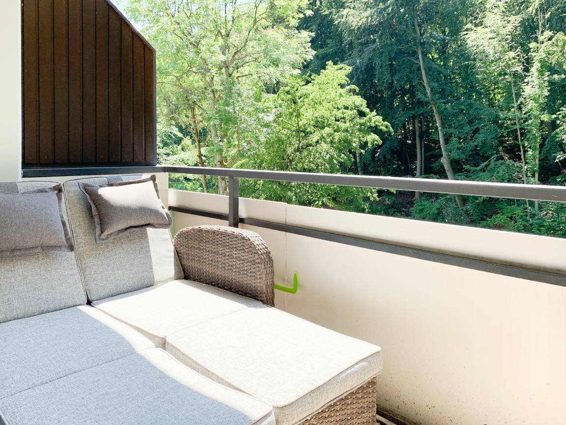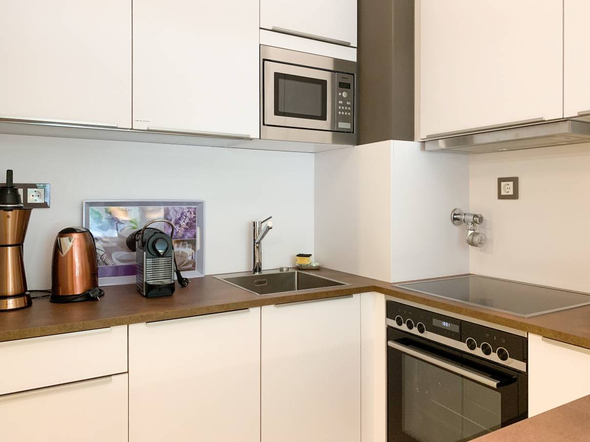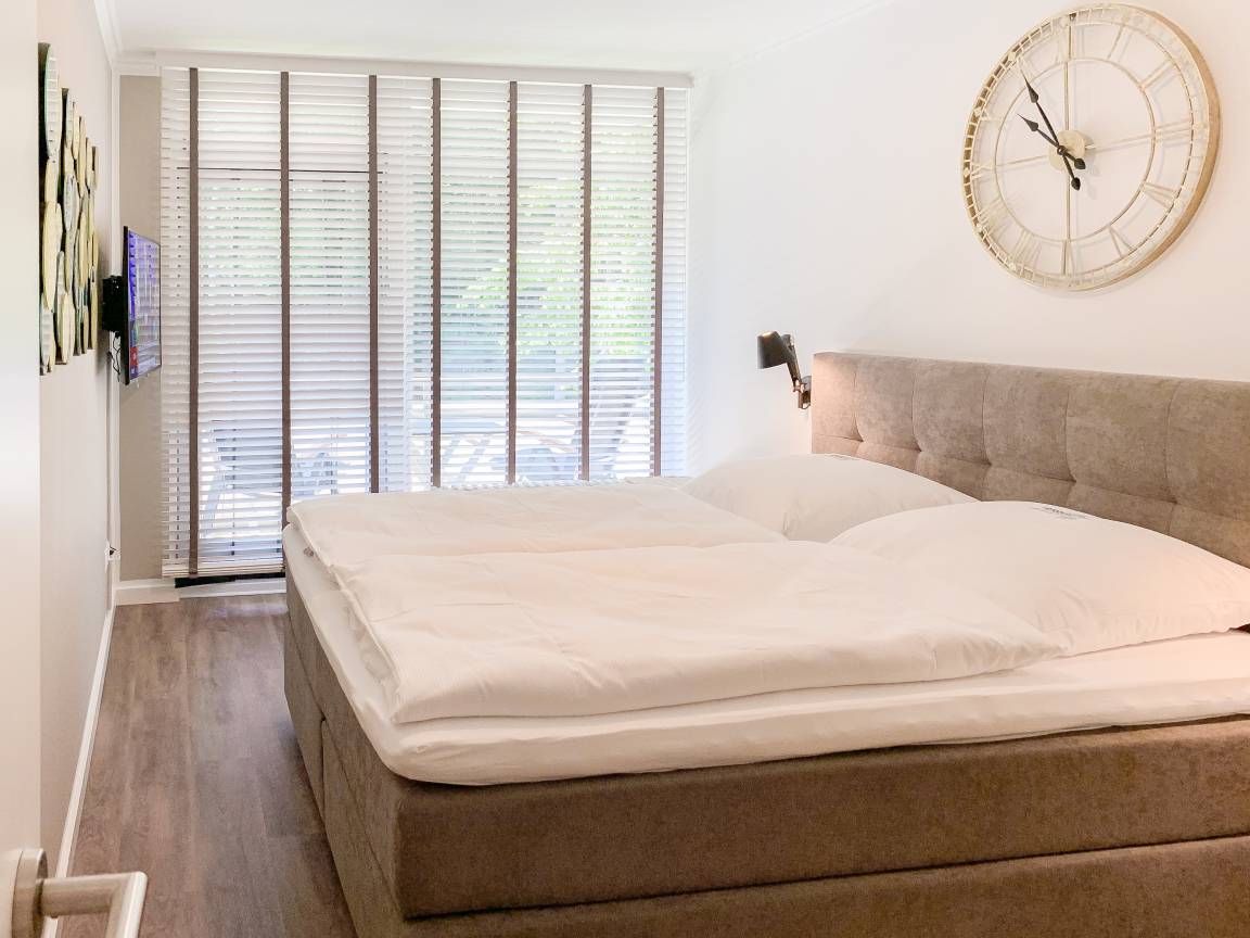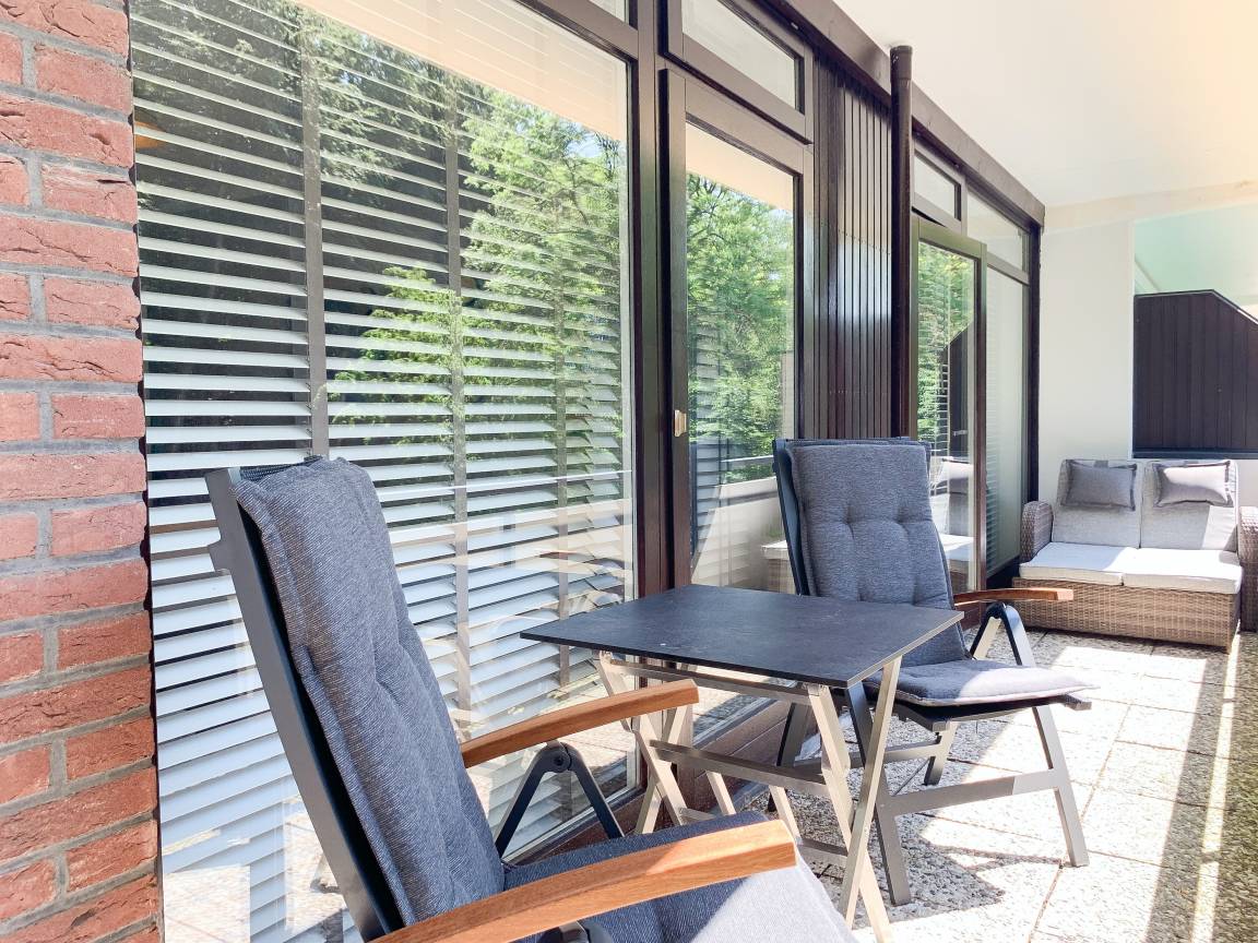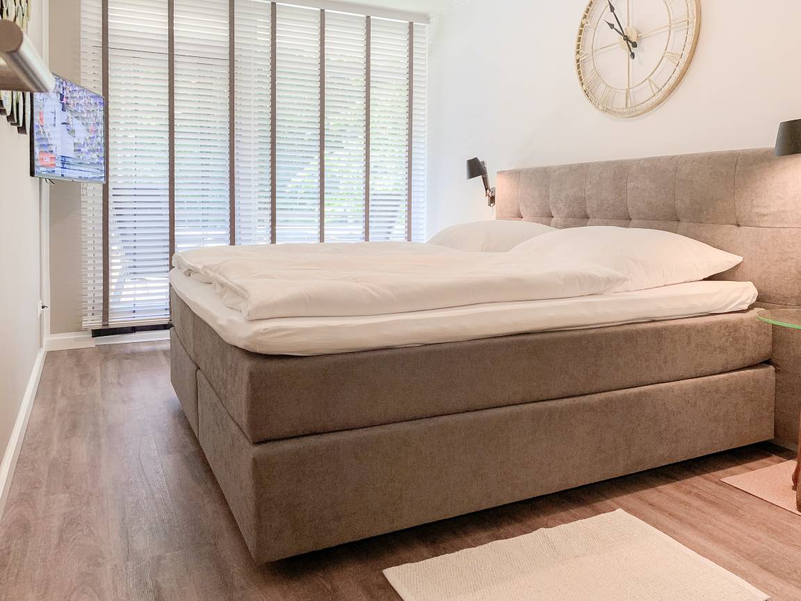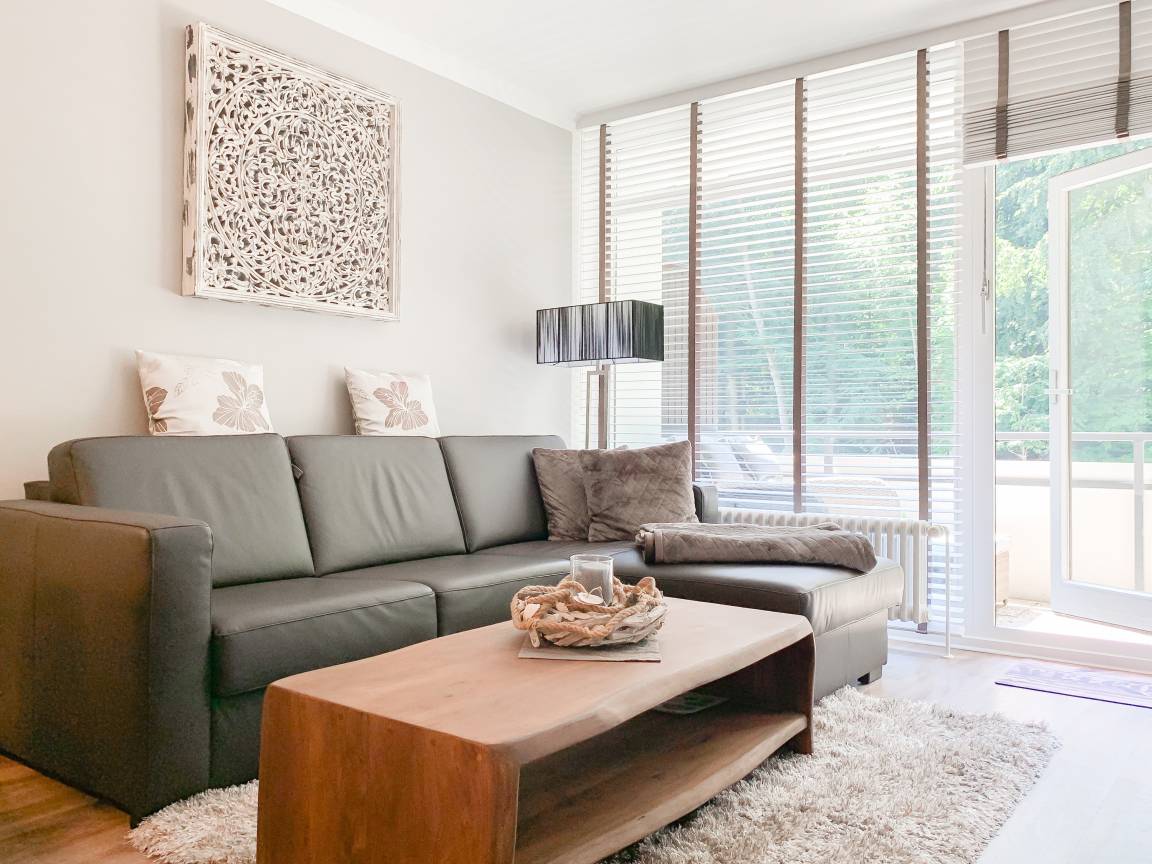 Die äußerst hochwertige Einrichtung mit Liebe zum Detail und die moderne, bestens ausgestattete Einbauküche schaffen ein zeitgemäßes Wohnambiente. Der großzügig angelegte Südbalkon erstreckt sich über die gesamte Breite der Wohnung und ist neben Gartenmöbeln und Sonnenliege auch mit einem Strandkorb ausgestattet. Ein idealer Rückzugsort zu jeder Tageszeit. Der Wohnbereich ist mit einem komfortablen Schlafsofa, WLAN und TV ausgestattet, der integrierte Essbereich bietet ausreichend Platz für 4 Personen. Das Schlafzimmer ist mit einem hochwertigen Boxspringbett (180x200), einem weiteren TV und Innenjalousien zur Abdunkelung ausgestattet. In dem modernen, neuen Duschbad mit Doppelwaschbecken und bodentiefer Dusche ist eine Waschmaschine untergebracht.