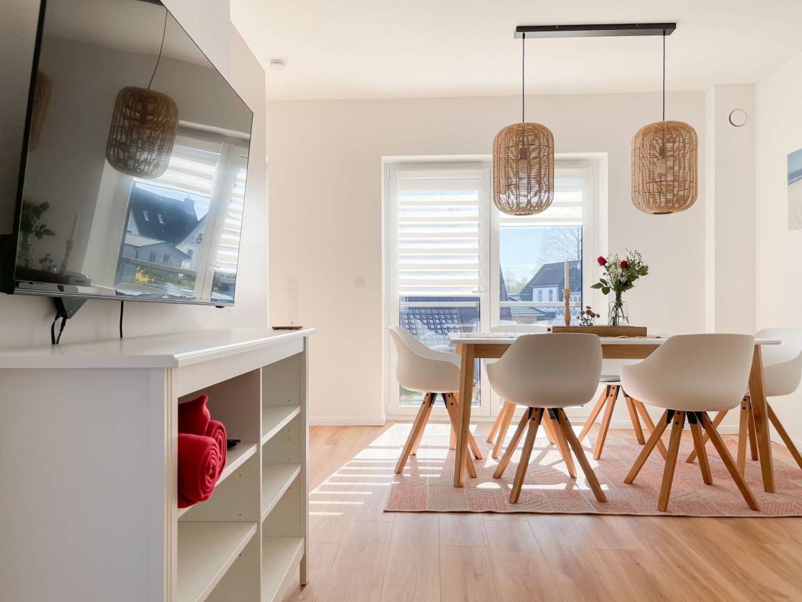 Die Ferienwohnung Meerzeit, frisch und nachhaltig erbaut in 2022, befindet sich im Obergeschoss eines Doppelhauses in beliebter Wohnlage von Timmendorfer Strand. Der kilometerlange Ostseestrand und die Promenade sind nur 300 Meter entfernt. Sowohl der lebendige Ortskern von Timmendorfer Strand mit exklusiven Geschäften, Cafés und vielfältiger Gastronomie als auch der urige Niendorfer Yacht- und Fischereihafen sind bequem in 10 -15 Gehminuten zu erreichen.