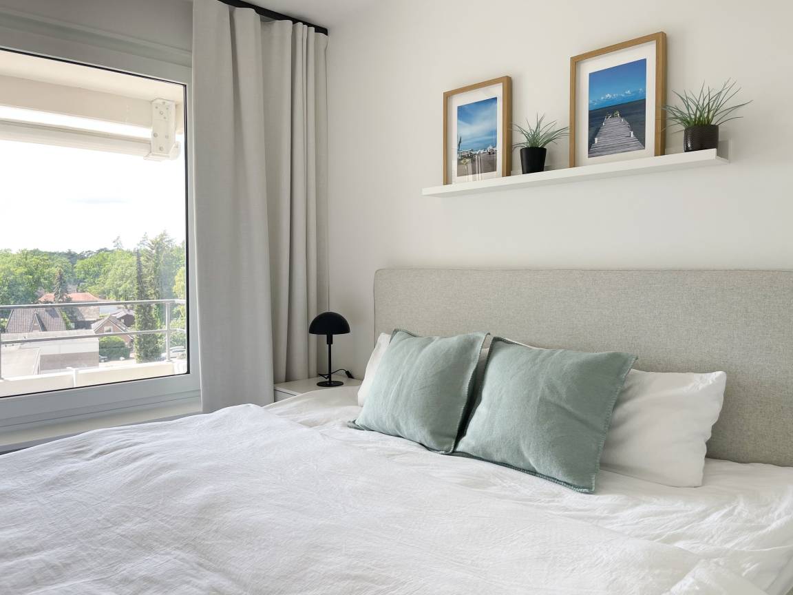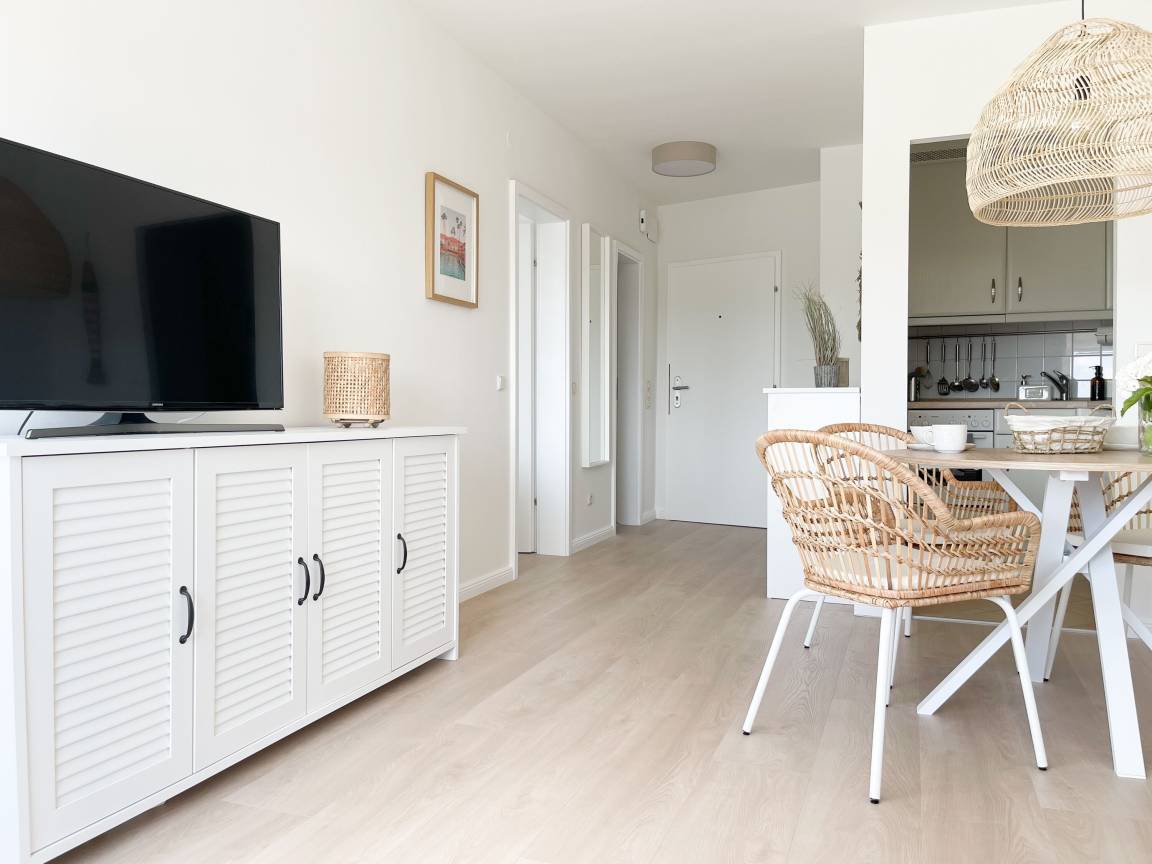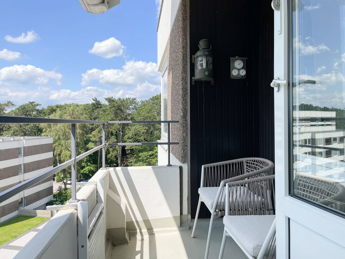 Wunderschönes Ambiente und Wohlfühlatmosphäre pur! Die aufwendig renovierte und sehr geschmackvoll eingerichtete Ferienwohnung befindet sich in der 5. Etage der äußerst gepflegten Wohnanlage Carpe Diem. Es erwartet Sie ein lichtdurchfluteter Wohnbereich mit viel Sonne und herrlichem Panoramablick. Der Balkon in Südwestausrichtung ist mit Gartenmöbeln sowie einer elektrischen Markise ausgestattet und bietet einen herrlichen Ausblick, je nach Jahreszeit kann man sogar die Ostsee durch die Bäume blitzen sehen.[nbsp] Meeresrauschen und[nbsp] frische Seeluft sind garantiert.[nbsp] Der Wohnbereich ist mit einem gemütlichen Ecksofa eingerichtet und der anschließende Essbereich bietet ausreichend Platz für 4 Personen. Die kleine Küche ist bestens ausgestattet mit Backofen, Cerankochfeld , Mikrowelle, Spülmaschine, Kühl- und Gefrierschrank. Das separate Schlafzimmer verfügt über ein[nbsp] Doppelbett (Boxspring 180x200), Vorhänge zur Verdunkelung und einem Einbauschrank, der reichlich Stauraum für die Urlaubsgarderobe bietet. Im Duschbad ist ein kombinierter Waschtrockner untergebracht. Zur Wohnung gehört reservierter Außenstellplatz. WLAN steht selbstverständlich kostenlos zur Verfügung.