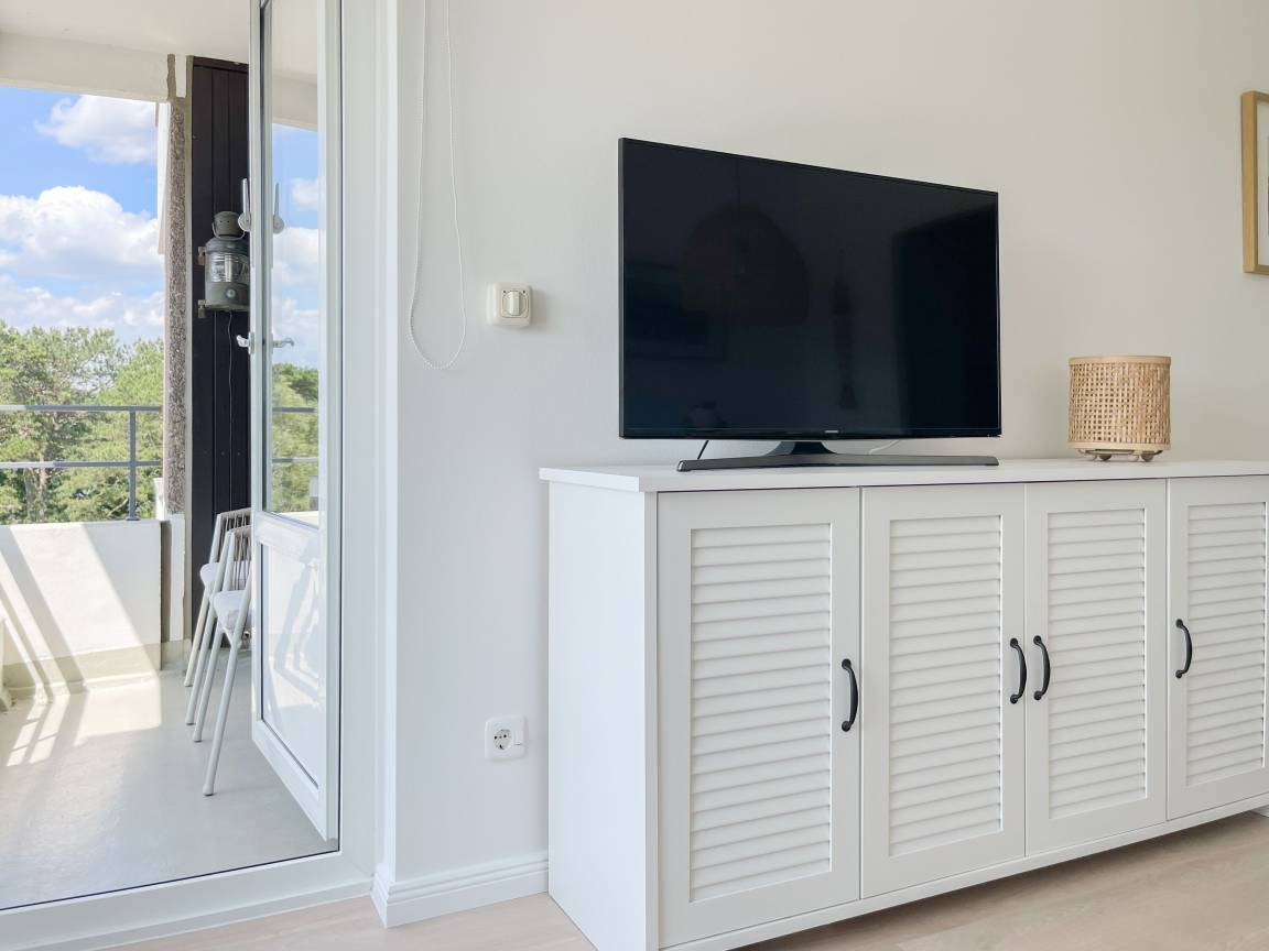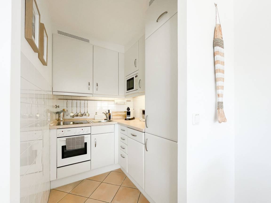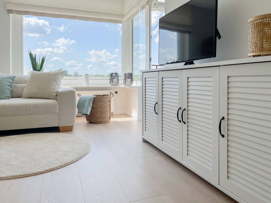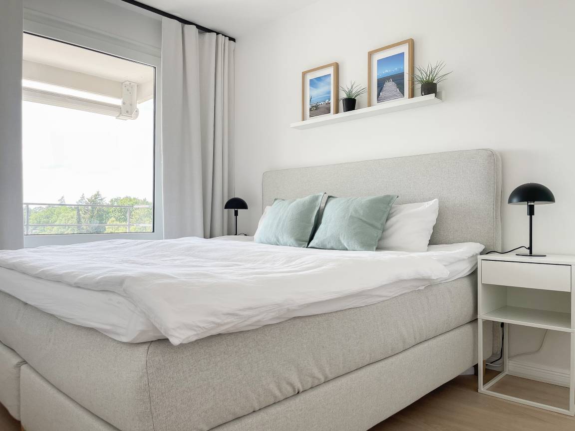 Wunderschönes Ambiente und Wohlfühlatmosphäre pur! Die aufwendig renovierte und sehr geschmackvoll eingerichtete Ferienwohnung befindet sich in der 5. Etage der äußerst gepflegten Wohnanlage Carpe Diem. Es erwartet Sie ein lichtdurchfluteter Wohnbereich mit viel Sonne und herrlichem Panoramablick. Der Balkon in Südwestausrichtung ist mit Gartenmöbeln sowie einer elektrischen Markise ausgestattet und bietet einen herrlichen Ausblick, je nach Jahreszeit kann man sogar die Ostsee durch die Bäume blitzen sehen.[nbsp] Meeresrauschen und[nbsp] frische Seeluft sind garantiert.[nbsp] Der Wohnbereich ist mit einem gemütlichen Ecksofa eingerichtet und der anschließende Essbereich bietet ausreichend Platz für 4 Personen. Die kleine Küche ist bestens ausgestattet mit Backofen, Cerankochfeld , Mikrowelle, Spülmaschine, Kühl- und Gefrierschrank. Das separate Schlafzimmer verfügt über ein[nbsp] Doppelbett (Boxspring 180x200), Vorhänge zur Verdunkelung und einem Einbauschrank, der reichlich Stauraum für die Urlaubsgarderobe bietet. Im Duschbad ist ein kombinierter Waschtrockner untergebracht. Zur Wohnung gehört reservierter Außenstellplatz. WLAN steht selbstverständlich kostenlos zur Verfügung.