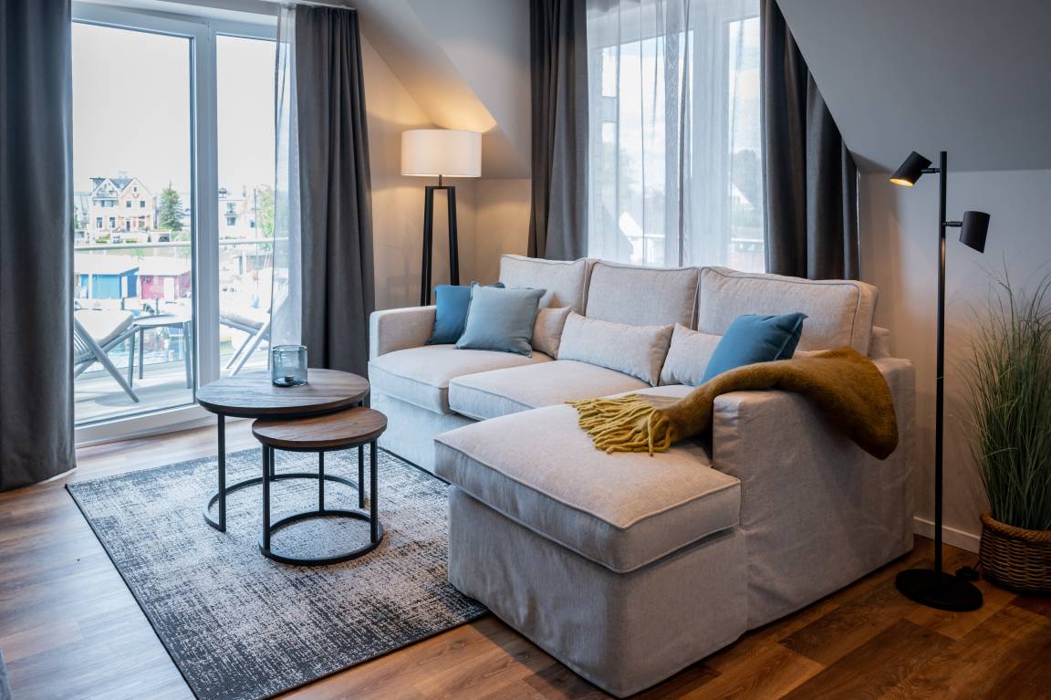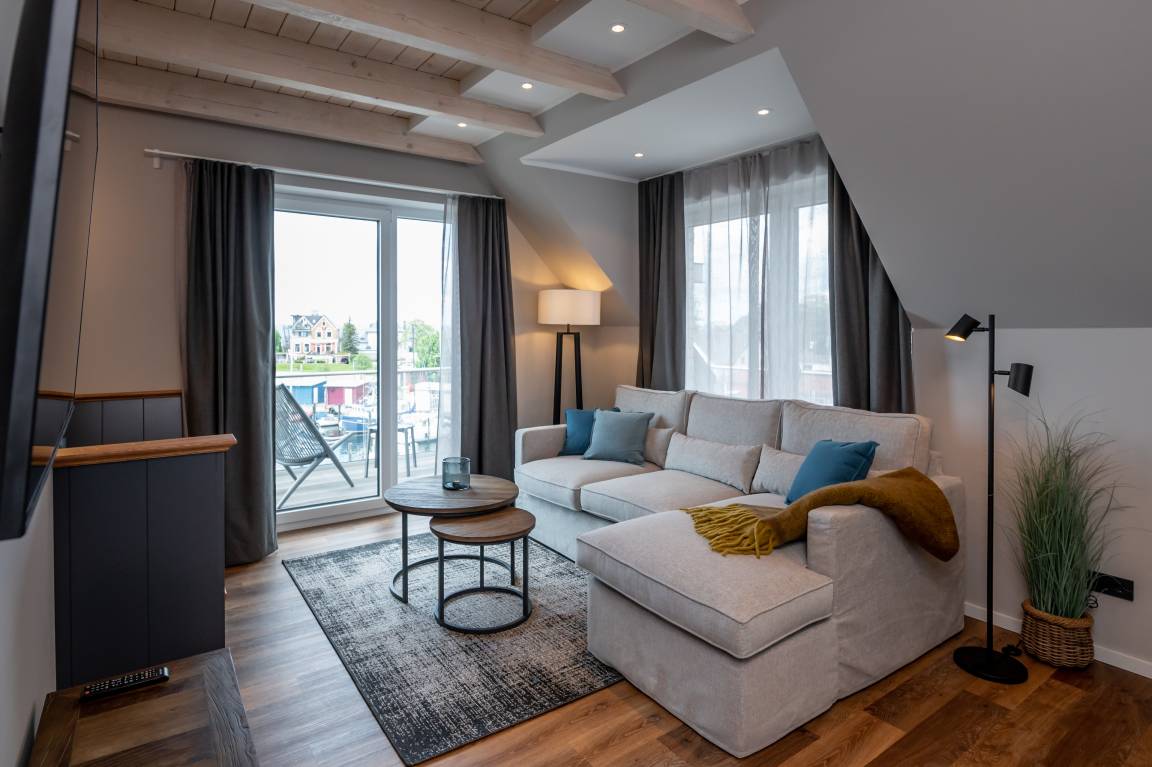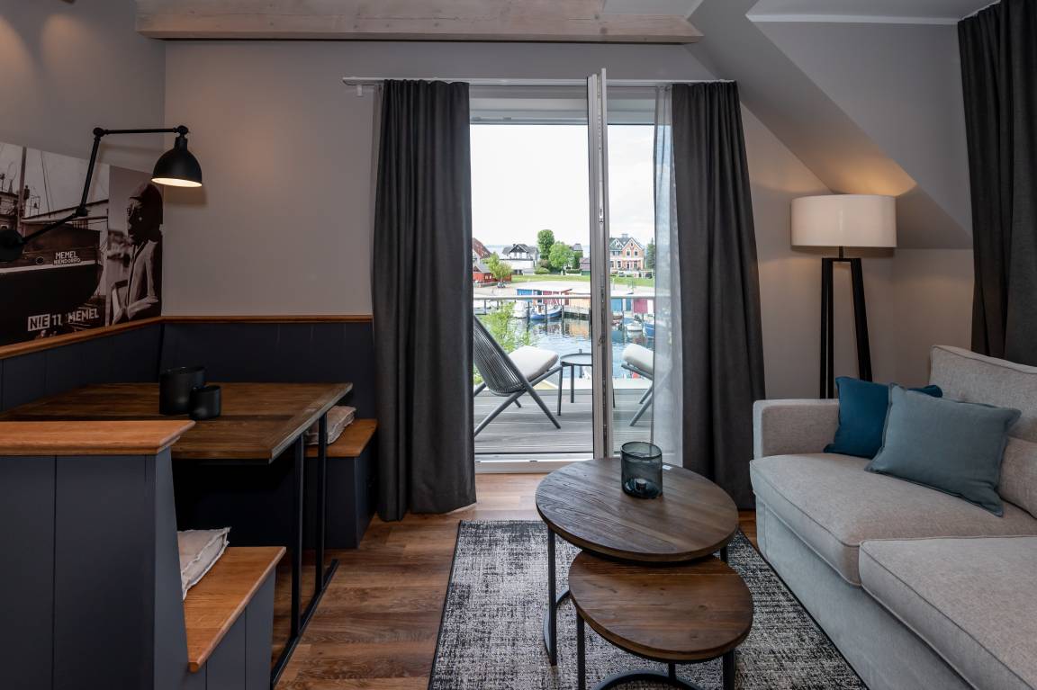 Unsere Memel ist 60 m² groß und bietet Platz für 2 Personen im separaten Schlafzimmer und für ein Kind im gemütlich eingerichteten Alkoven. Die Einrichtung dieser hochwertigen Ferienwohnung kombiniert die zeitgemäßen Loft- und Beachhousestyles ganz erfrischend und wird Ihren Aufenthalt unvergesslich machen.