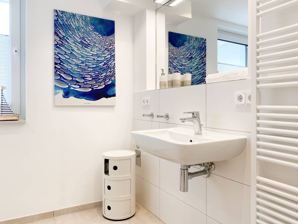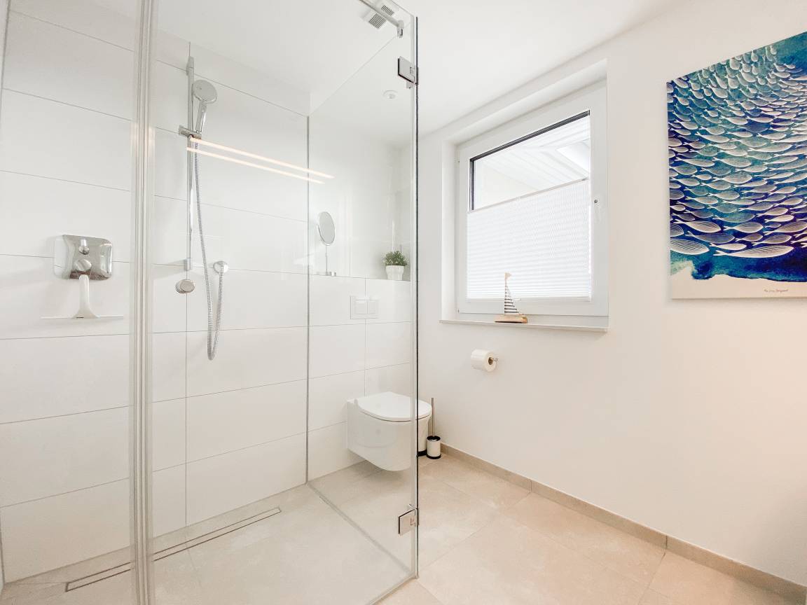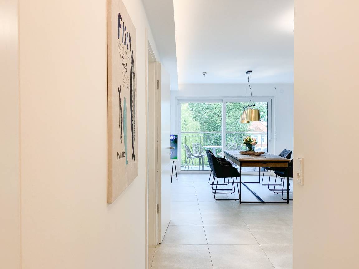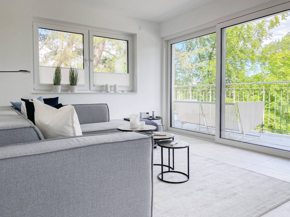 Zehn exklusive Wohnungen mit Balkonen und Terrassen zur Meerseite bieten traumhafte Ausblicke bis auf die Ostsee und jeglichen Komfort zur Gewährleistung eines hohen Wohnstandards in schönem Ambiente. Alle Wohnungen verfügen über moderne Bäder mit Walk In Duschen, Fußbodenheizung und elektrische Außenjalousien mit einstellbaren Lamellen, die gleichermaßen für Tageslicht und Privatsphäre sorgen.