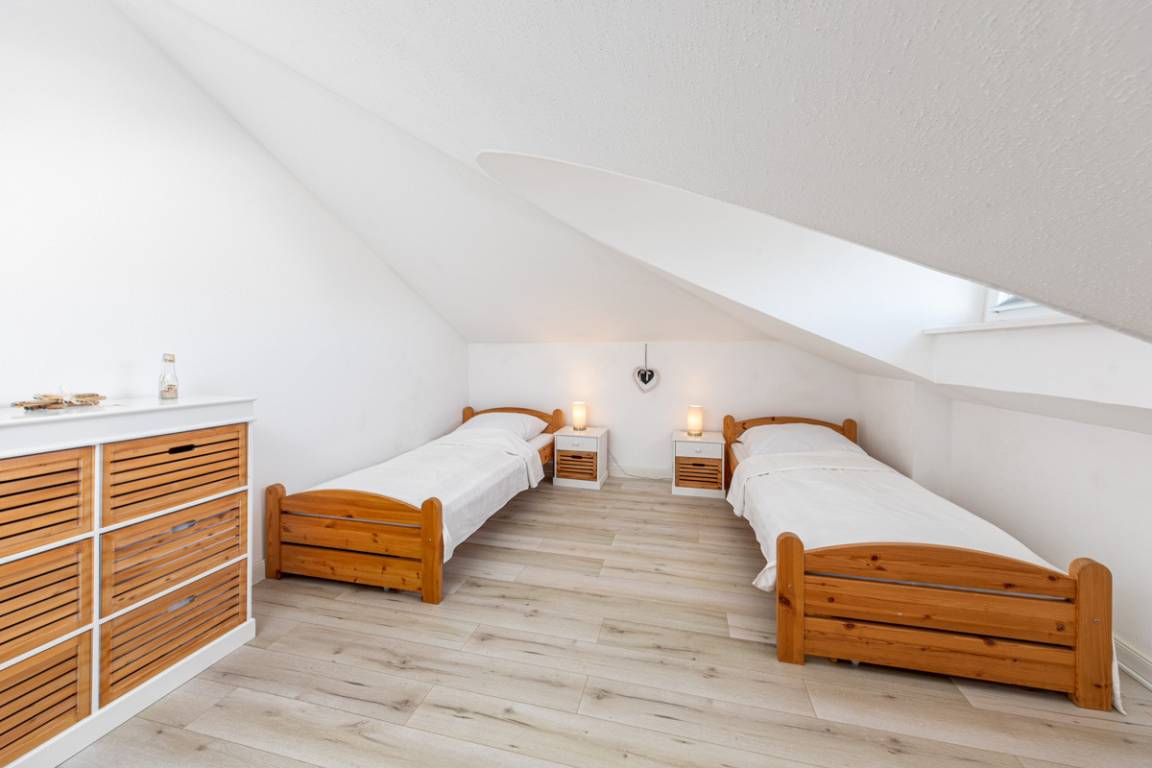 Das erste Schlafzimmer ist mit einem bequemen Doppelbett ausgestattet. Das zweite Schlafzimmer erreichen Sie vom Flur aus über eine Treppe. Hier können bis zu 2 Personen in Einzelbetten erholsamen Schlaf bekommen.