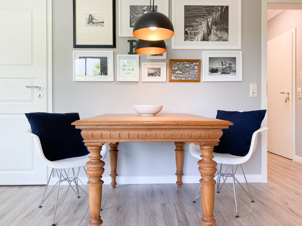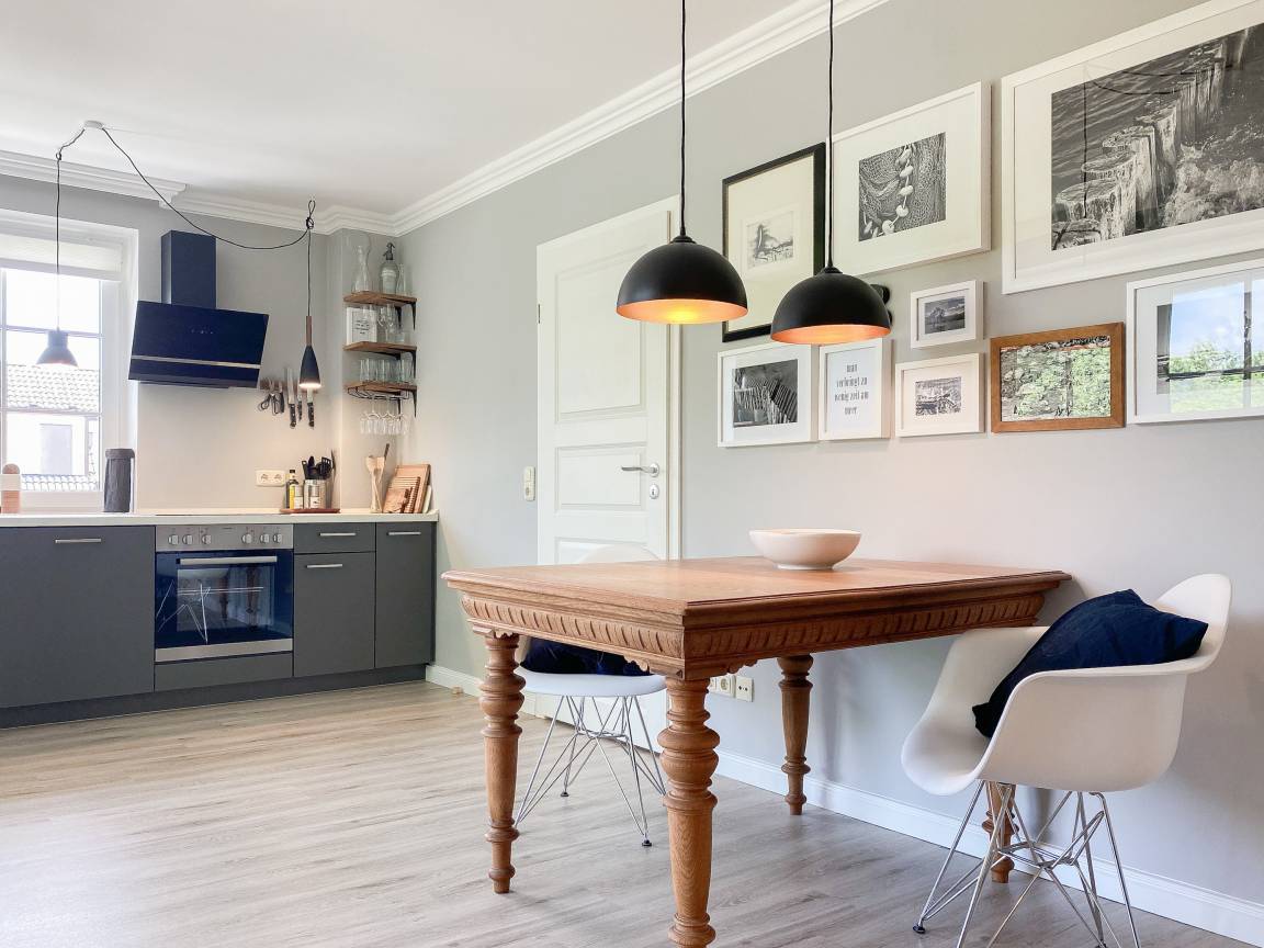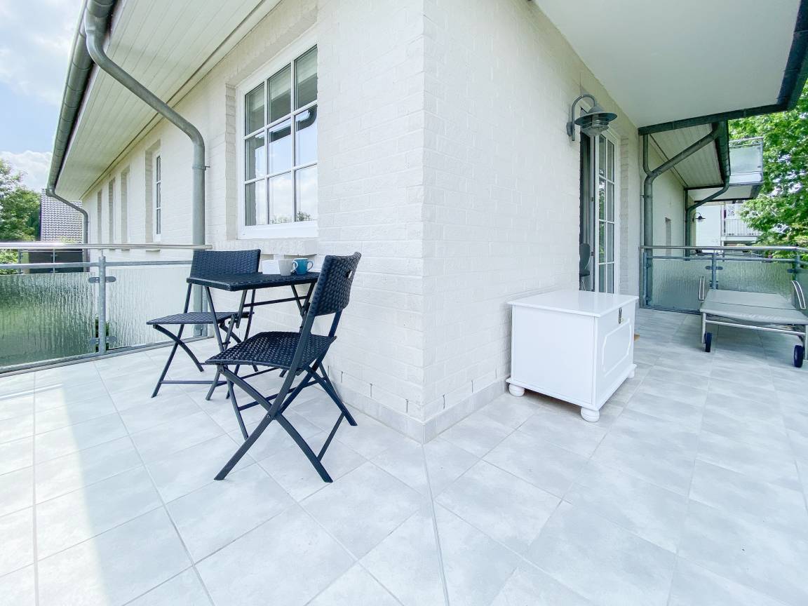 Klein aber fein, gespickt mit liebevollen Details und geschmackvoller Einrichtung präsentiert sich das kleine Piratennest für 2 Personen. Es erwartet Sie ein stylischer Wohnbereich mit Sofa, TV, Bluetooth Lautsprecher und kostenloses WLAN sowie ein Essbereich für 2 Personen. Die integrierte Küche ist bestens ausgestattet, unter anderem mit Spülmaschine, Backofen, Cerankochfeld und vielem mehr. Es ist gelungen jeden qm optimal zu nutzen und eine tolle Wohnatmosphäre zu schaffen. Der große, umlaufende Eckbalkon mit Sonnenliege, Tisch und 2 Stühlen bietet herrliche Ausblicke in den Kurpark. In dem gemütlichen sehr kleinen Schlafzimmer befindet sich ein hochwertiges Boxspringbett (160x200), das den Raum bereits fast ausfüllt und mit der einen Seite an der Wand steht. Das Fenster kann durch blickdichte Vorhänge verdunkelt werden. Für die Urlaubsgarderobe stehen Wandhaken und Schubladen im Schlafzimmer und Flur zur Verfügung, ein Kleiderschrank gehört nicht zur Ausstattung. Das Duschbad ist vom Flur zu erreichen. Eine Waschmaschine ist im Keller untergebracht und kann kostenfrei genutzt werden.