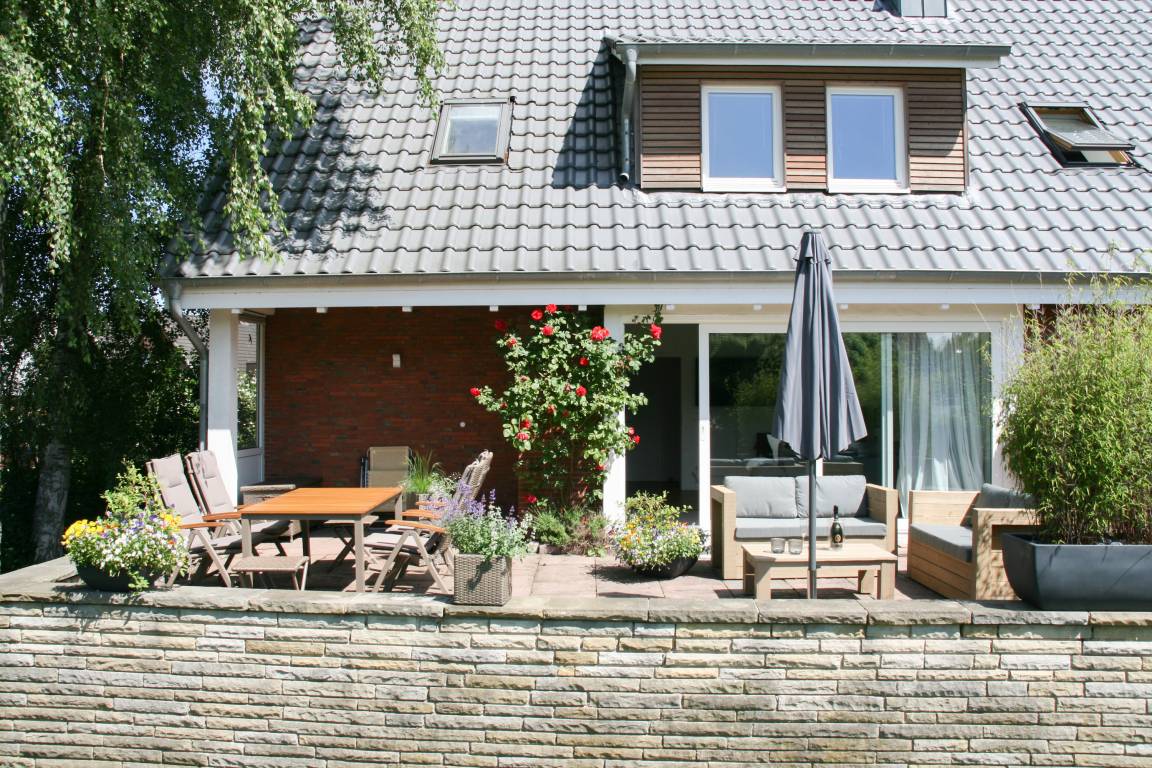 Die familienfreundlich gestaltete Ferienwohnung bietet mit 2 Schlafzimmern, einem Bad und zusätzlichem Gäste WC ausreichend Platz für maximal 5 Personen inklusive Kindern. Die Wohnung erstreckt sich über das gesamte Erdgeschoss eines Zweifamilienhauses. Das sonnige, eingezäunte Gartengrundstück ist nach Südwesten ausgerichtet und die[nbsp] XXL Sonnenterrasse, mit anschließender Rasenfläche, ist mit einem Essplatz für 6 Personen und Loungemöbeln ausgestattet.