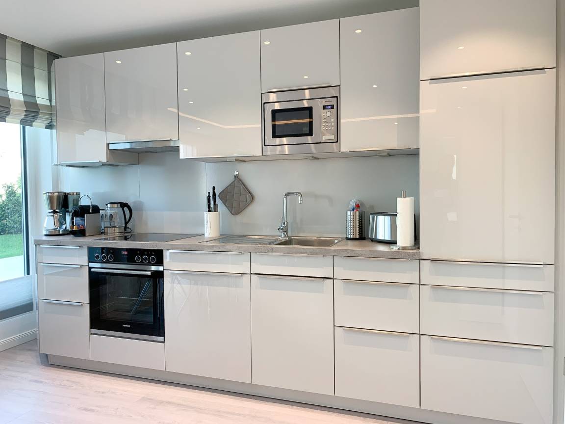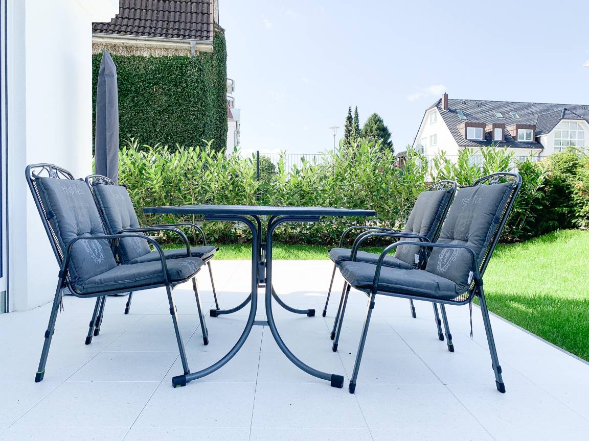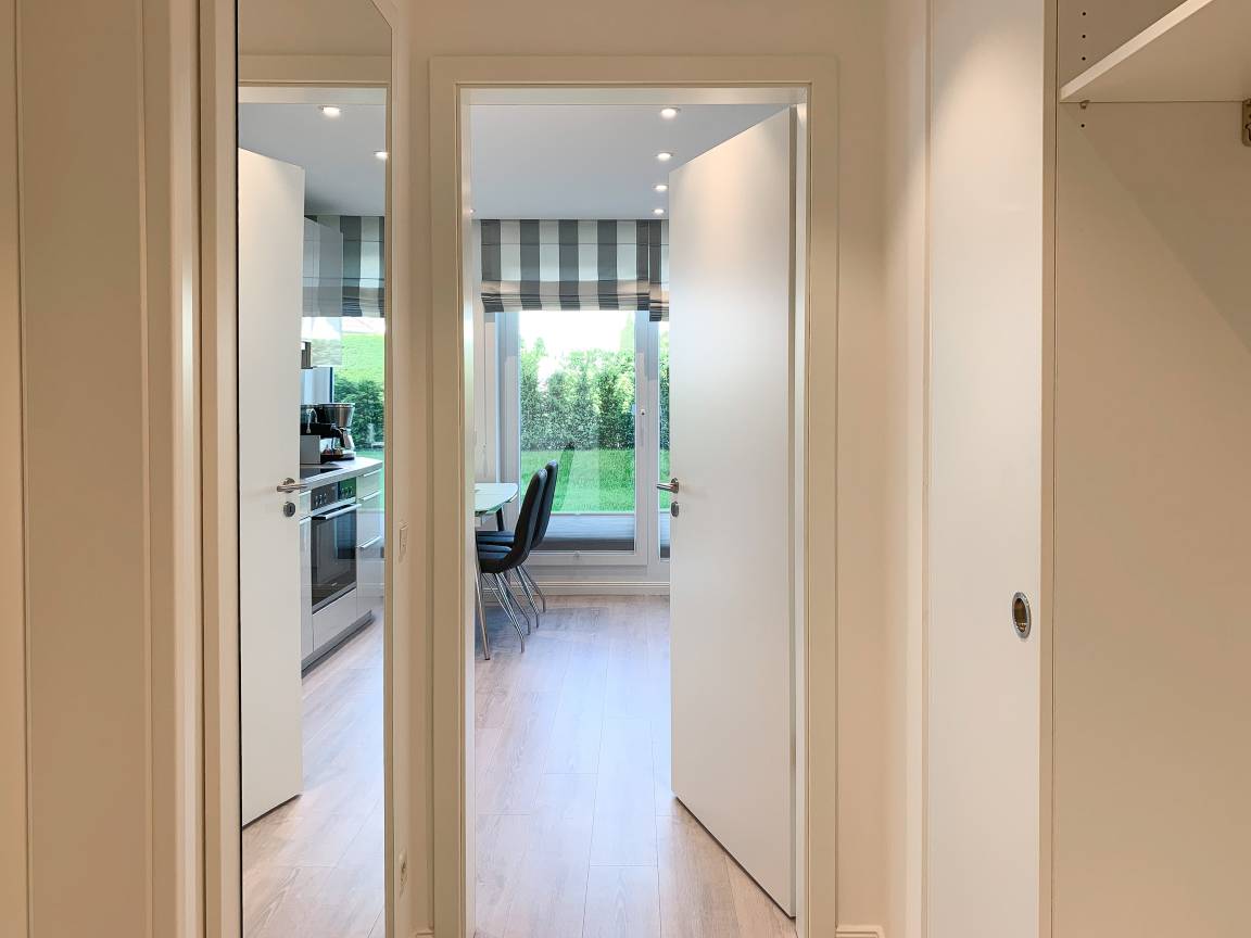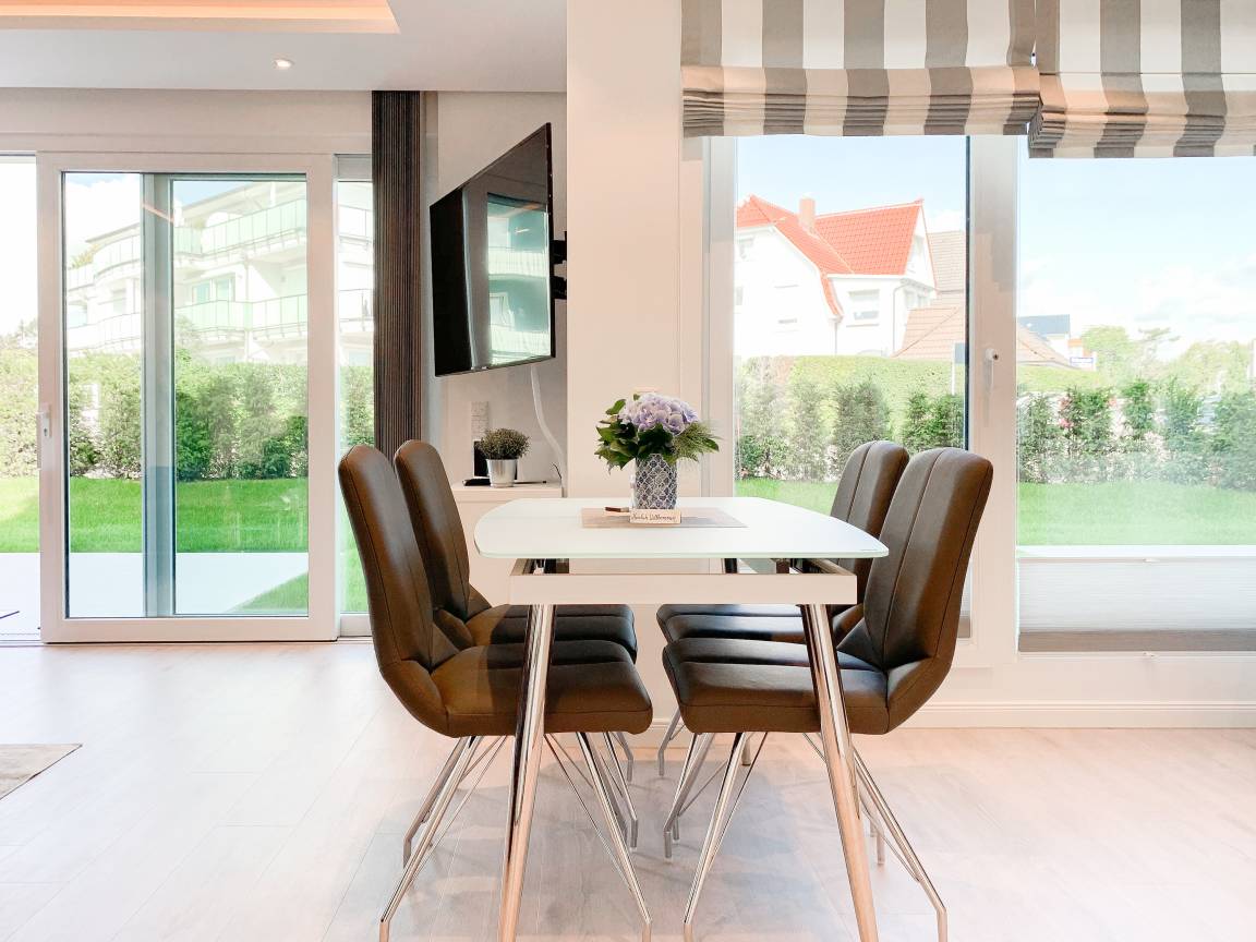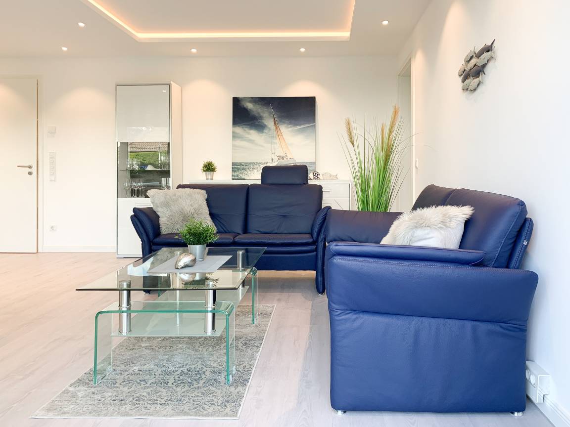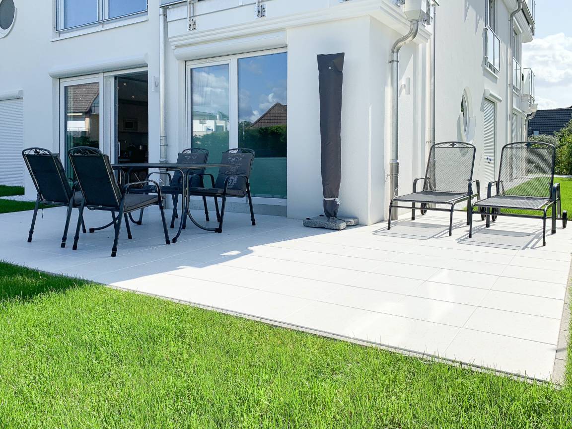 Die exklusive Wohnung bietet mit[nbsp] 2 separaten Schlafzimmern, einem modernen Duschbad sowie einem kombinierte Wohn- Essbereich mit offener Einbauküche ausreichend Platz für 3 bis 4 Personen. Sämtliche Annehmlichkeiten eines Neubaus wie bodentiefe Fensterflächen, Fußbodenheizung und elektrische Außenjalousien sorgen für helle Räumlichkeiten und ein angenehmes Raumklima. Die äußerst hochwertige Einrichtung mit durchdachten Einbauten, der bestens ausgestatteten Designküche mit entsprechenden Markengeräten und das Ruf Boxspringbett der Extraklasse zeichnen diese Wohnung besonders aus. Ein weiteres Highlight ist die 24 qm große, umlaufende[nbsp] Sonnenterrasse, ausgestattet mit Gartenmöbeln und Sonnenliegen und ein kleiner Garten, eingefriedet über Hecke und Büsche. Zur Unterhaltung[nbsp] stehen ein 55 Zoll TV mit Internet Mediathek, Bluetooth Lautsprecher, Radio und WLAN zur Verfügung. Kleine Hunde sind auf Anfrage willkommen.