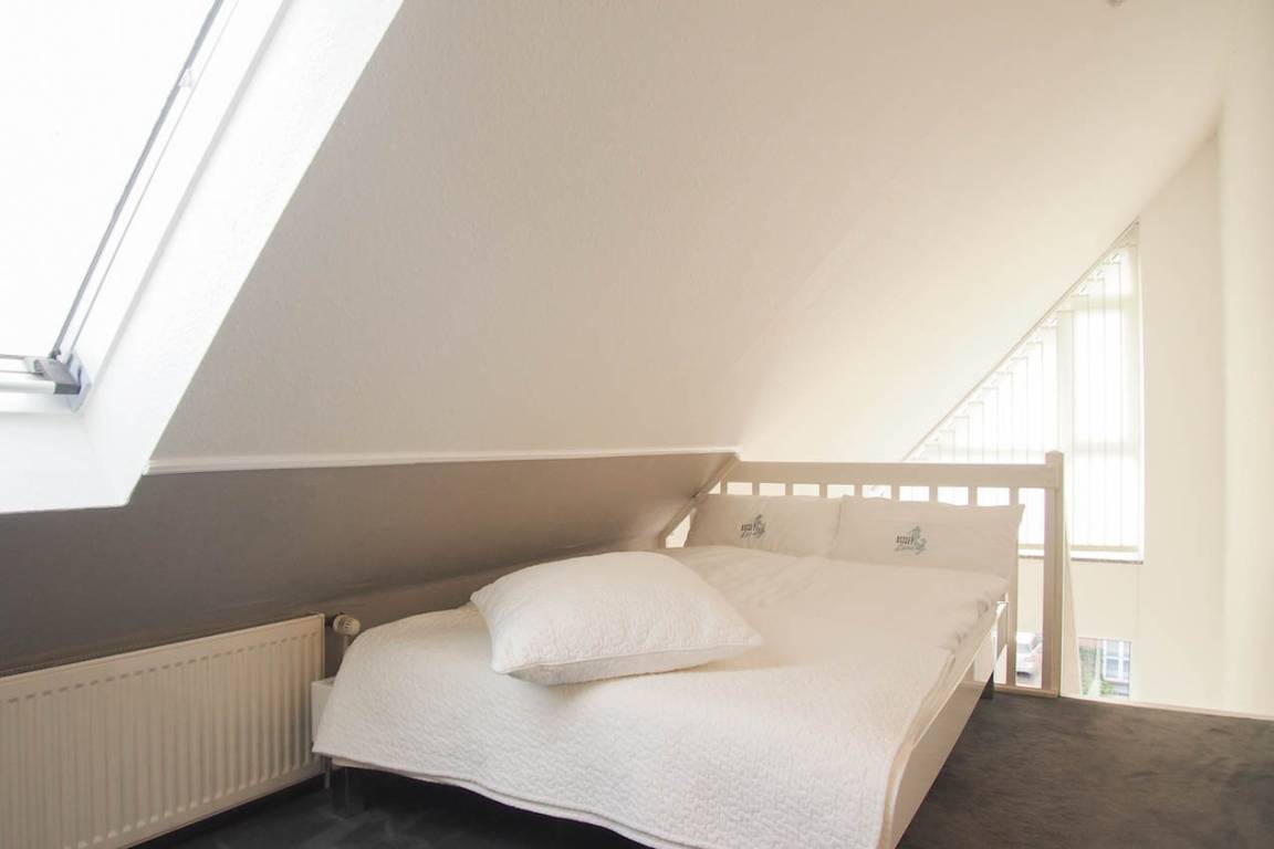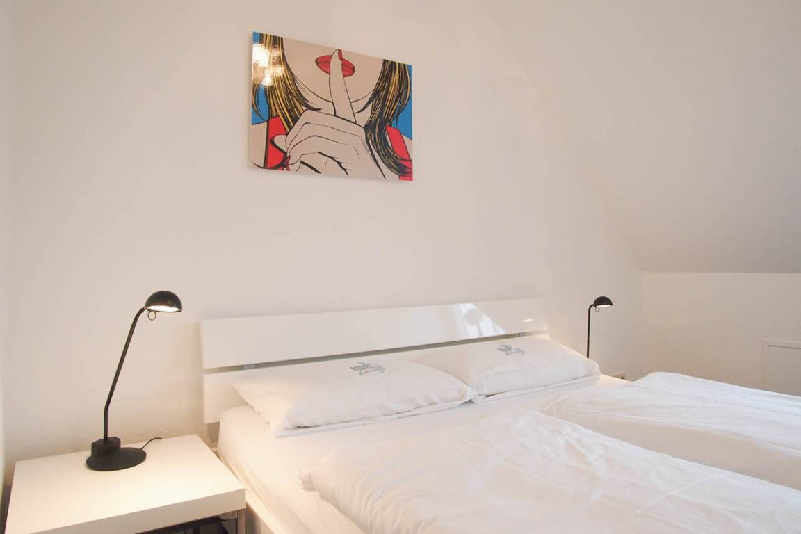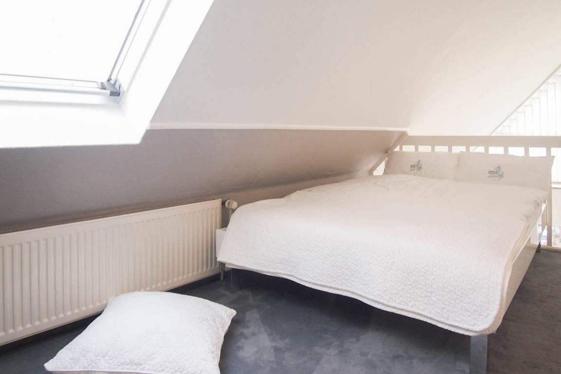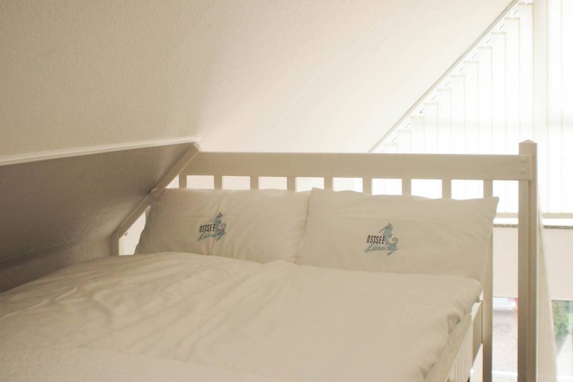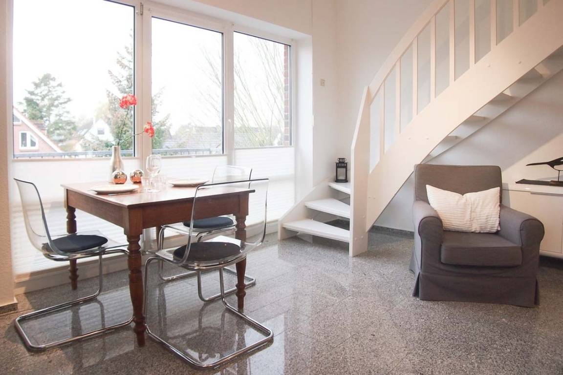 Die Wohnung befindet sich im 2. Obergeschoss einer kleinen Anlage und bietet auf 50 qm über 2 Wohnebenen ausreichend Platz für 2-4 Personen. Auf der unteren Ebene befinden sich ein Schlafzimmer mit Doppelbett (160x200), ein hochwertiges Duschbad mit Fußbodenheizung und ein lichtdurchfluteter Wohnraum mit TV. Die integrierte Küche ist gut ausgestattet und der anschließende Essbereich ist auf 3 Personen zugeschnitten. Eine weiße, offene Treppe führt zur Galerie mit dem zweiten Schlafbereich, der ebenfalls mit einem Doppelbett (140x200) ausgestattet ist. Der sonnige Südwestbalkon ist mit Gartenmöbeln sowie einer Markise ausgestattet und schließt sich direkt dem Wohnbereich an. WLAN steht zur kostenfreien Nutzung zur Verfügung.