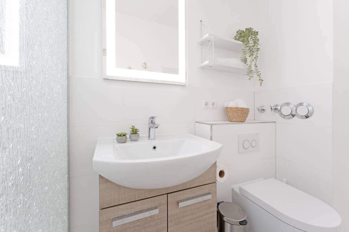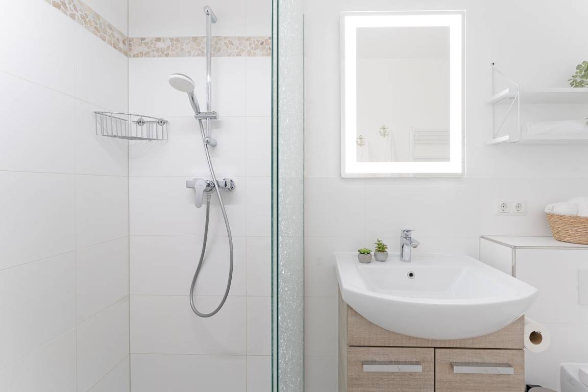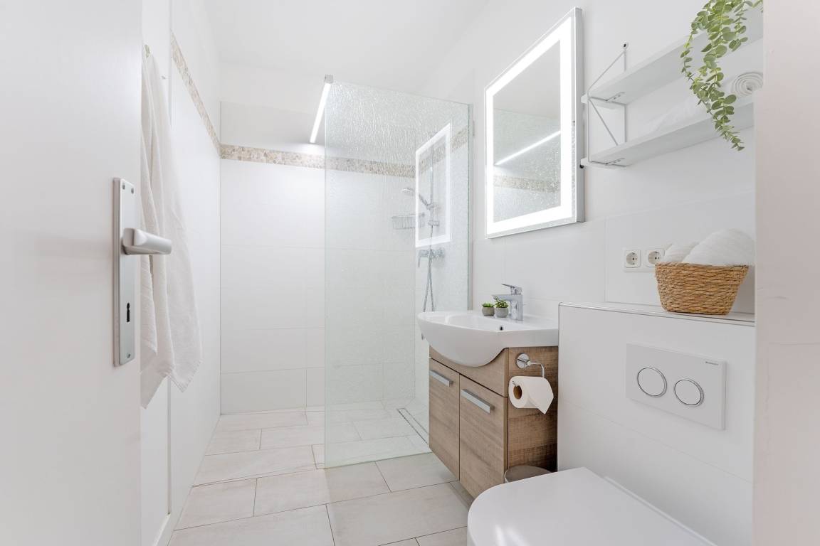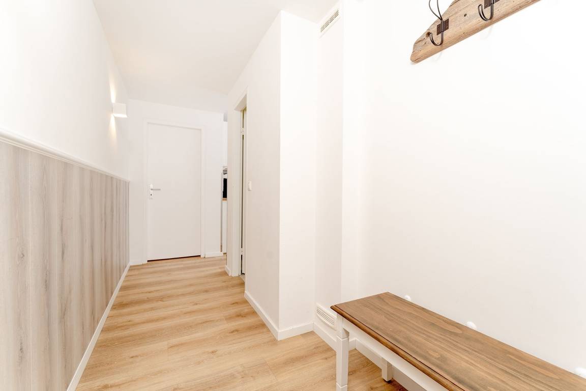 Genießen Sie Ihren Urlaub an der Ostseeküste in modernem Komfort. Die helle Wohnung verfügt über einen gemütlichen Wohnbereich mit Sofa, und TV. Der angrenzende Essbereich und die offene Küche bieten Platz für gemeinsame Mahlzeiten. Die Küche ist gut ausgestattet mit Induktionsherd, Backofen, Spülmaschine, Nespresso-Maschine, Kaffeemaschine, Toaster und Wasserkocher. Vom Wohnbereich aus gelangen Sie auf den überdachten Balkon in Südwestausrichtung – ideal, um die frische Ostseeluft bei jedem Wetter zu genießen. Das Schlafzimmer bietet zwei bequeme Einzelbetten (je 80x200 cm) und ausreichend Stauraum. Darüber hinaus befindet sich ein gemütliches Doppelschrankbett (140x200 cm) im Wohnbereich. Das Badezimmer ist modern eingerichtet und mit einer bodengleichen Dusche sowie einem beheizbaren Handtuchhalter ausgestattet.