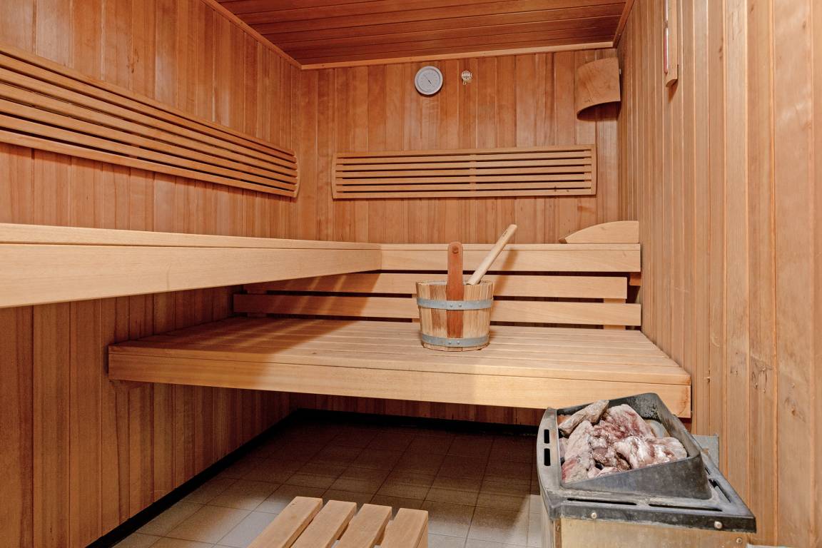 Weitere Erholung verspricht der Wellnessbereich, ausgestattet mit Sauna und Pool.