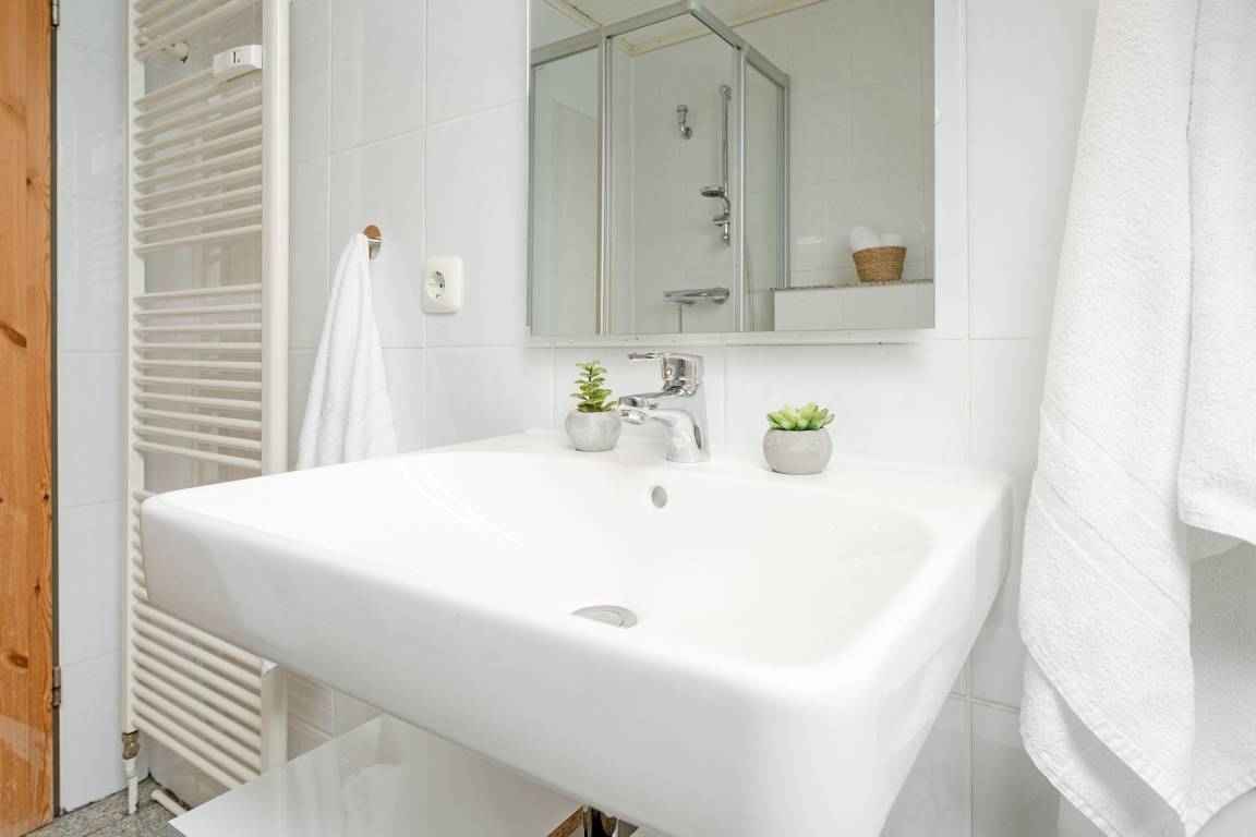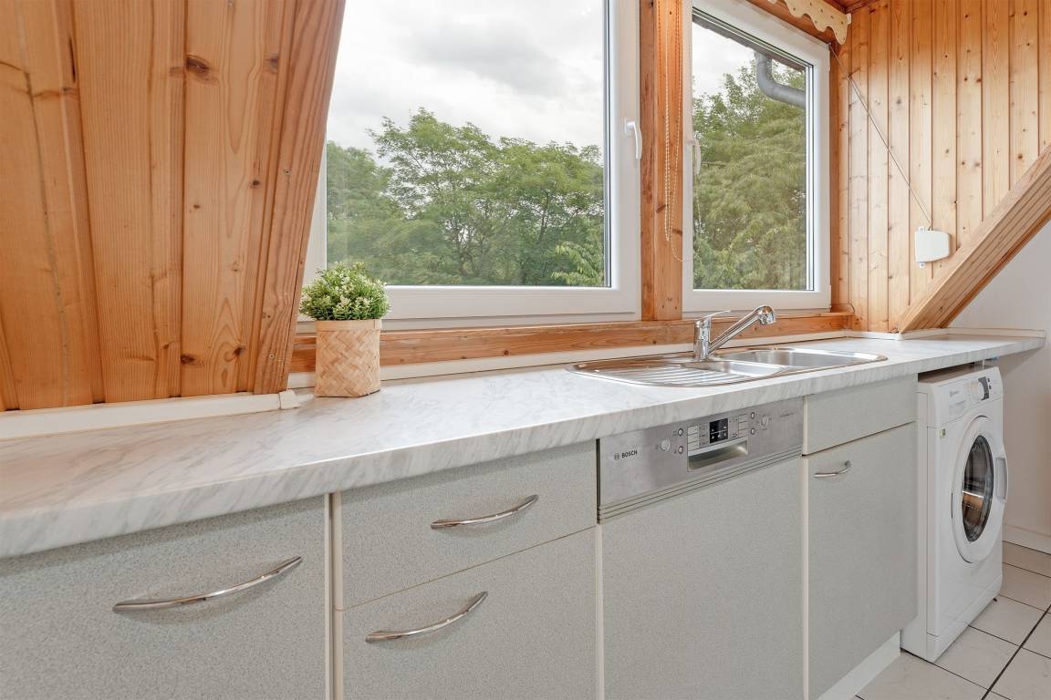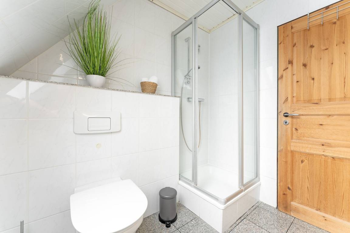 Familien und Freunde aufgepasst: Die Ferienwohnung mit dem passenden Namen Aus-Zeit bietet viel Platz und Raum für Ihre ganz persönliche und wohlverdiente Auszeit. Im gemütlichen Wohnzimmer mit heimeliger Holzvertäfelung stehen zwei kuschelige Sofas für Sie bereit. Sitzen Sie hier bei guten Gesprächen zusammen oder lassen Sie sich vom TV-Programm unterhalten. Der lange Esstisch ist ideal für lustige Spieleabende – und natürlich auch zum Essen. Bereiten Sie Ihre Speisen in der separaten, großzügigen Küche mit schönem Blick ins Grüne zu. Ein Geschirrspüler hilft später beim Abwasch. Auch eine Waschmaschine finden Sie hier. Für traumhafte Nächte sorgen 3 separaten Schlafzimmer: Eins befindet sich im 1. OG mit einem Doppelbett (180x200 cm), die beiden anderen im 2. OG mit jeweils einem Doppelbett (180x200 cm) sowie einem TV-Gerät. Das tageslichthelle Duschbad punktet mit einem Handtuchwärmer.