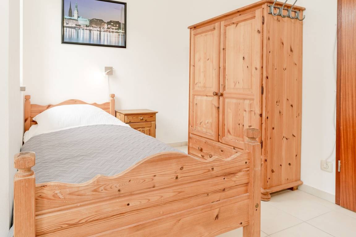 Schlafzimmer 2: 2 Einzelbetten (je 90x200 cm), Kleiderschrank, Verdunkelung (Plissees), Platz für Kinderreisebett vorhanden