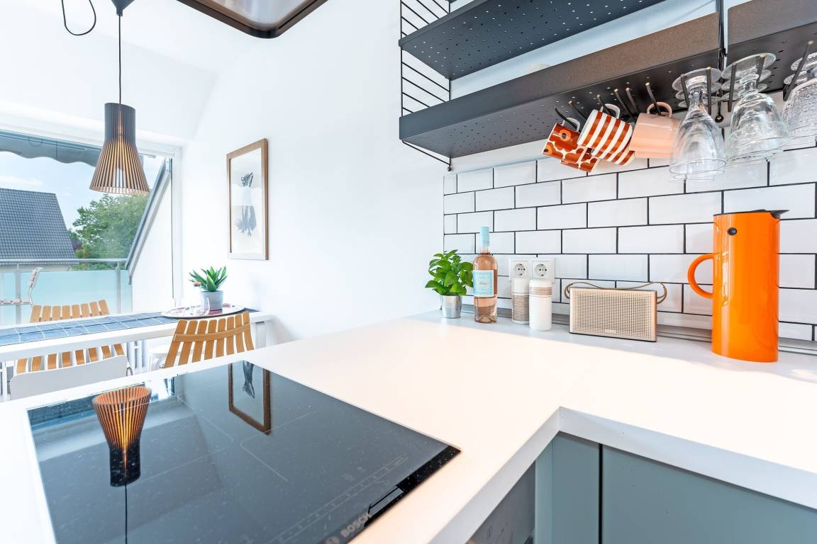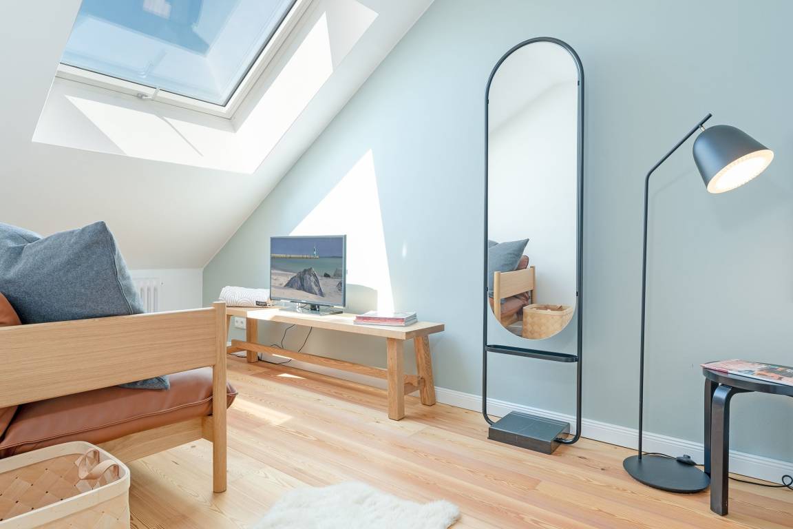 Verbringen Sie entspannte Urlaubstage abseits vom Trubel in dieser sonnigen, modernen 2-Zimmer-Maisonnette-Ferienwohnung innerhalb einer sehr gepflegten Appartementanlage in Timmendorfer Strand. Sie verfügt über eine Wohnfläche von ca. 38 m² und bietet genügend Platz für 2 Personen. Als Maisonettewohnung besticht sie mit einer modernen Raumaufteilung sowie einem gemütlichen Balkon mit Markise. Ein besonderer Hingucker sind die skandinavischen Designelemente, die überall in der Ferienwohnung zu entdecken sind.