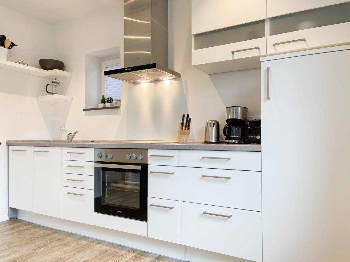 Die Ferienwohnung Waterkant #1 befindet sich im Erdgeschoss und bietet mit 1 Schlafzimmer auf 50 qm ausreichend Raum für 2-3 Personen, um einen entspannten Ostseeurlaub in Strandnähe zu verleben. Es erwartet Sie ein heller Wohnbereich mit Schlafsofa, ein anschließender Essbereich und eine offene Einbauküche, gut ausgestattet mit Ceranfeld, Backofen, Geschirrspüler und Kühl- und Gefrierschrank. Die möblierte Terrasse in Südwestausrichtung bietet einen schönen Platz im Freien zu jeder Tageszeit. Das Schlafzimmer ist mit einem Doppelbett (Boxspring 180x200), TV, Plissees und Vorhang zum Abdunkeln und einem Kleiderschrank eingerichtet. Das Bad ist mit Dusche, Waschtisch, WC , Fenster und Handtuchwärmer ausgestattet. WLAN kann selbstverständlich kostenlos genutzt werden. Ein Außenstellplatz gehört zur Wohnung. Ein abschließbarer Fahrradraum kann gemeinschaftlich genutzt werden, ebenso Waschmaschine und Trockner, die im separaten Waschraum untergebracht sind.