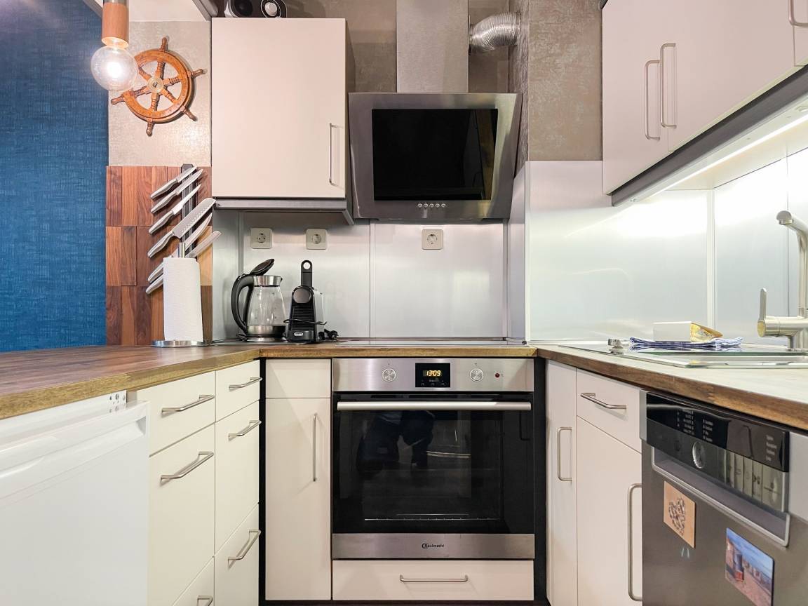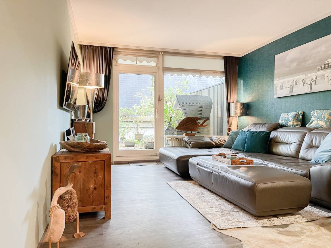 Es erwartet Sie eine gemütlich eingerichtete Ferienwohnung mit ausreichen Raum für 2 Personen, um einen entspannten Urlaub in Strandnähe zu verleben. Highlight ist die riesige, liebevoll bepflanzte Terrasse von 70 qm, die sich über die gesamte Breite der Wohnung erstreckt und mit Gartenmöbeln und einem Strandkorb ausgestattet ist. Ein herrlicher Rückzugsort zu jeder Tageszeit. Der Wohnbereich ist mit einem XL Sofa plus Recamiere und TV ausgestattet, der anschließende Essbereich bietet ausreichend Platz für 4 Personen für gemeinsame Mahlzeiten und gemütliches Beisammensein. Die integrierte Küche ist gut ausgestattet und durch einen Tresen vom Wohnbereich getrennt. Das Schlafzimmer ist mit einem Doppelbett (180x200), einem Kleiderschrank mit ausreichend Stauraum. Die Fenster sind mit vertikal Lamellen versehen, die etwas Licht nehmen, jedoch nicht vollständig verdunkeln. Das Bad verfügt über einen Waschtisch, Föhn, WC und eine Badewanne kombiniert mit einer Dusche.