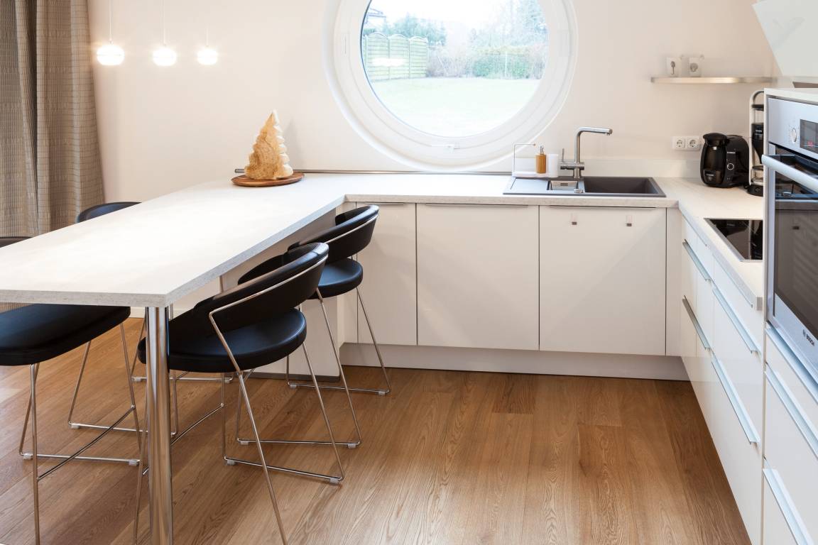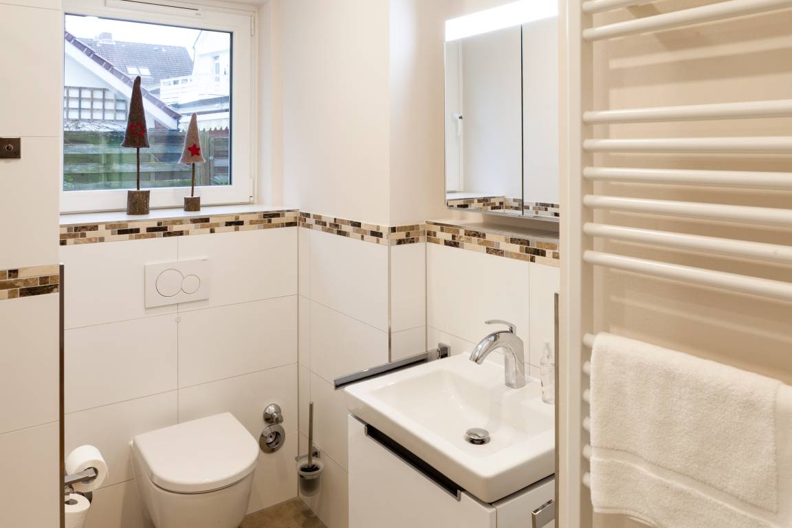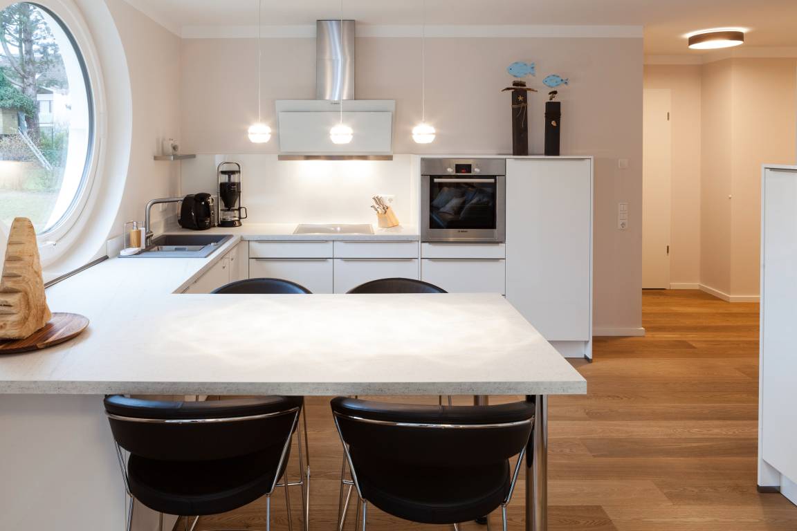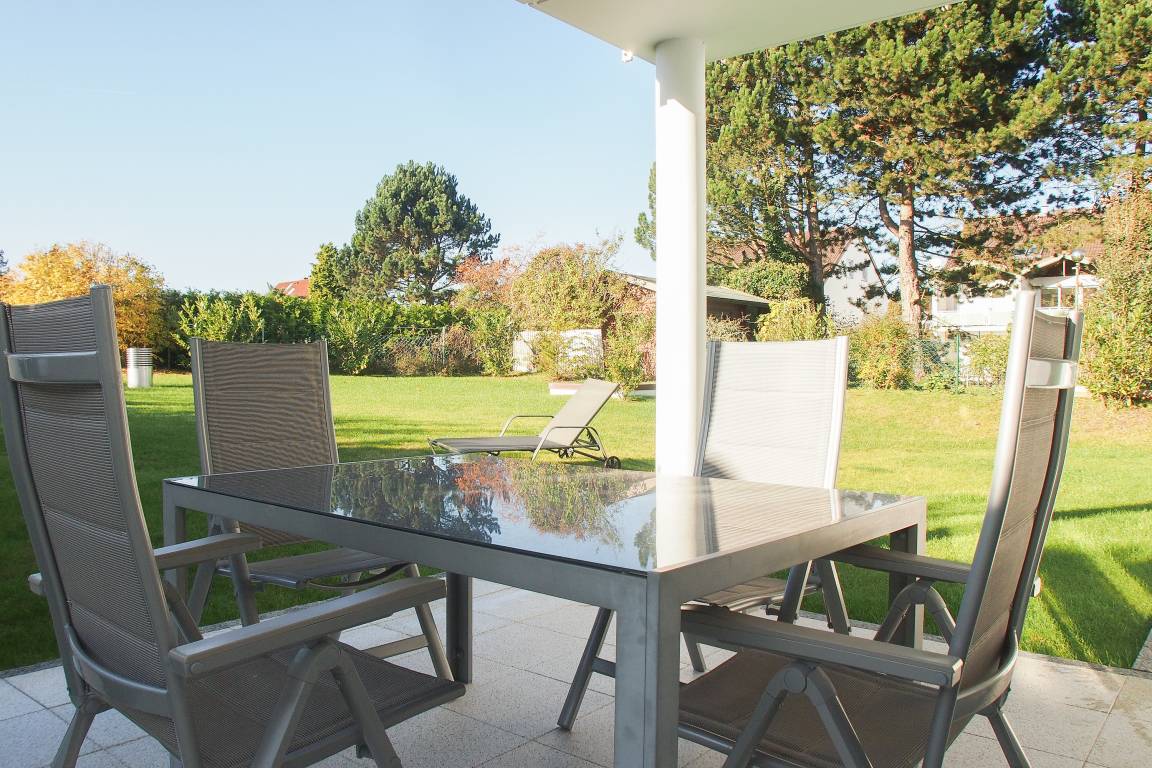 Übergroße Fensterelemente sorgen für einen lichtdurchfluteten Wohnbereich mit einem schönem Blick in den 200 qm großen Garten zur privaten Nutzung und auf die großzügige, teilweise überdachte Südwestterrasse, selbstverständlich komfortabel möbliert mit Sitzgruppe und Sonnenliegen. Hochwertige Echtholzdielen sorgen für eine wohlige, angenehme Wohnatmosphäre. Mit zwei separaten Schlafzimmern mit Doppelbetten (180x200 und 160x200) und TV, einem hochwertigen Duschbad und einem Gäste WC ensuite, finden hier 4 Personen ausreichend Platz sich zu entfalten. Die exklusive Einbauküche mit angrenzendem Essbereich ist bestens mit allen technischen Geräten ausgestattet und genügt höchsten Ansprüchen.Von Mitte Mai bis Mitte September steht für Sie ein Strandkorb am Strand zur kostenlosen Nutzung bereit.