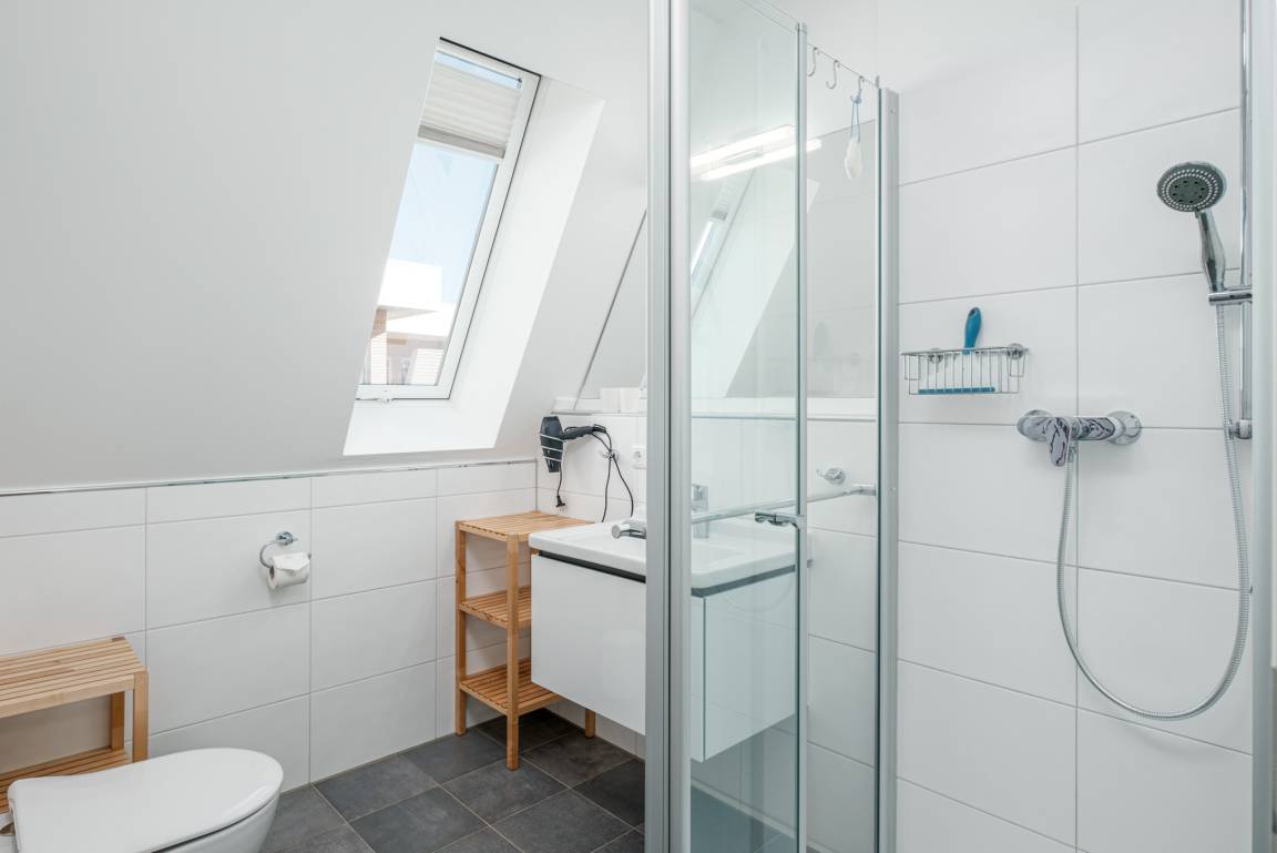 Im Badezimmer steht Ihnen eine Dusche, WC, Kosmetikspiegel, Fön sowie eine Waschmaschine zur Verfügung.