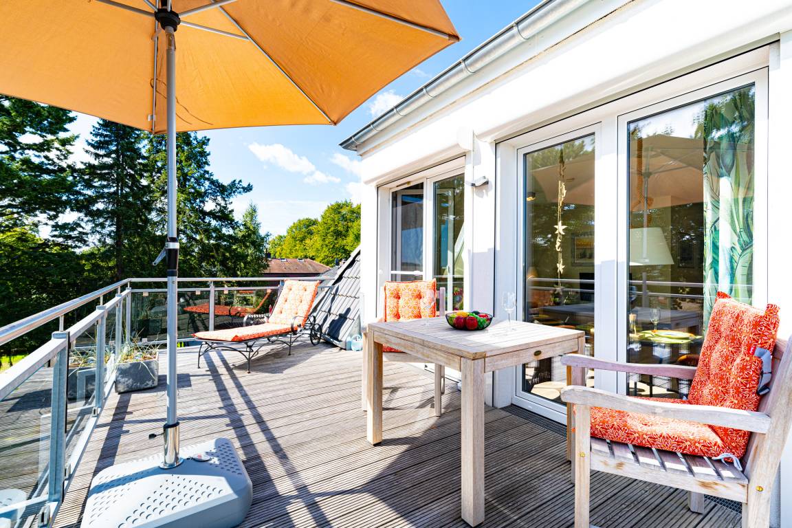 Die Besonderheit dieser modernen Niendorf Ferienwohnung ist die schöne, geräumige, 18m² große Dachterrasse zur Ostseite.