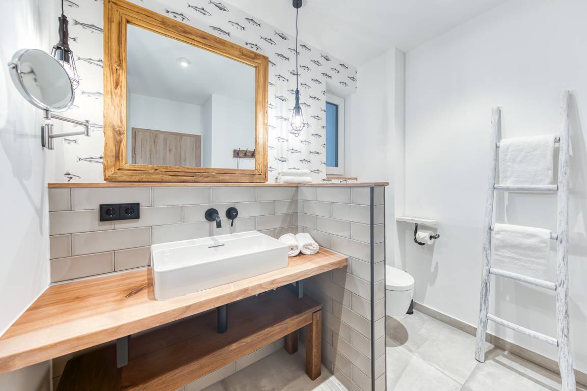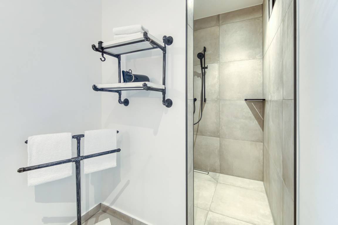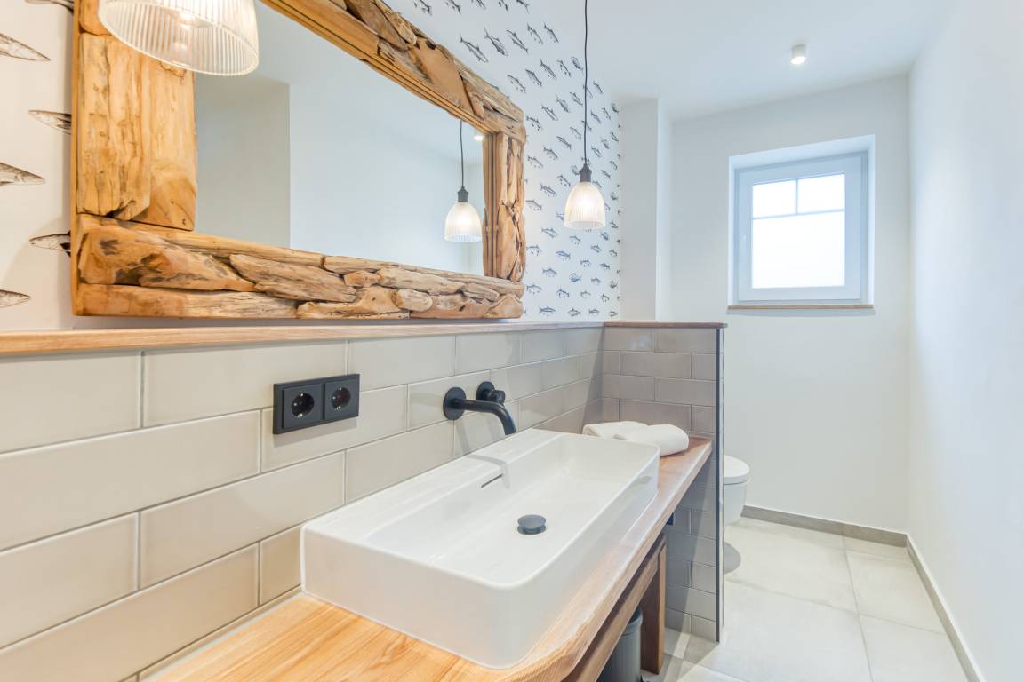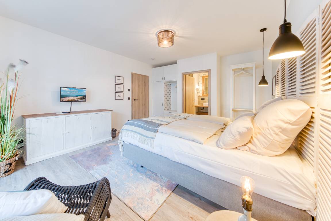 In den großzügigen und modern ausgestatteten Badezimmern können Sie sich in der bodengleichen Dusche von einem erholsamen Strandtag erfrischen.