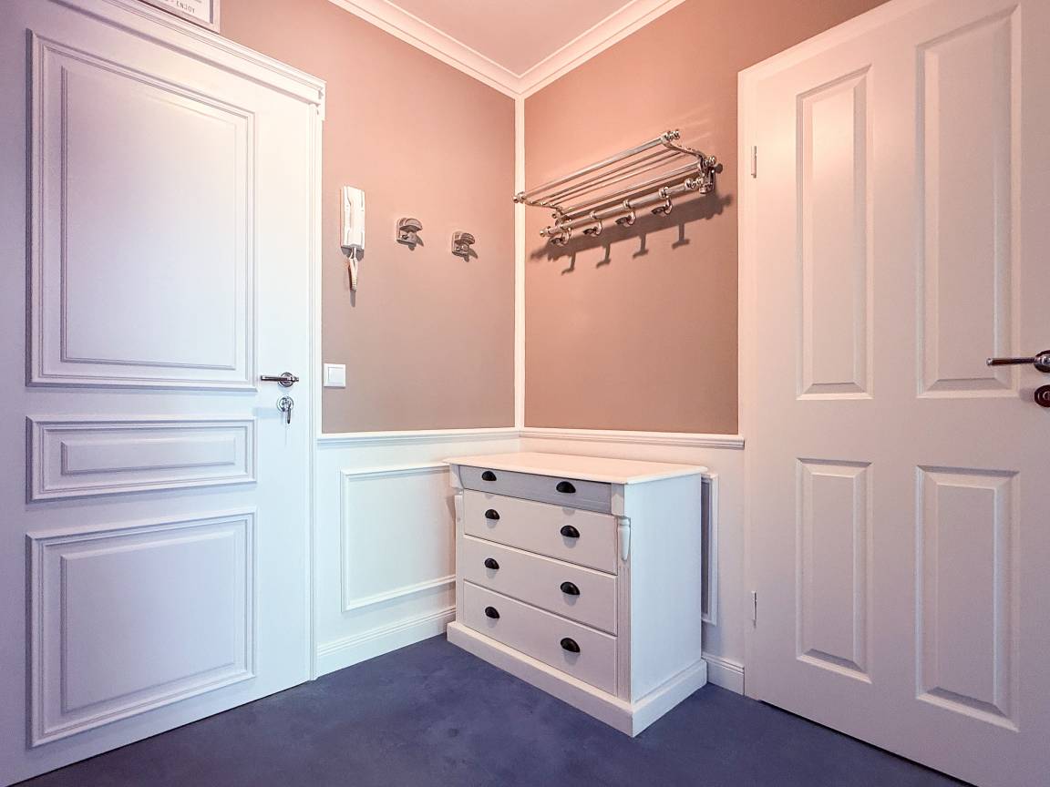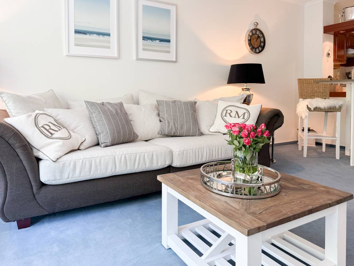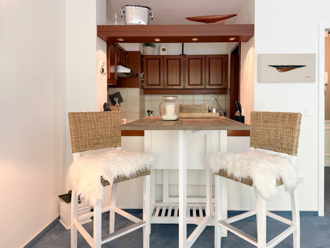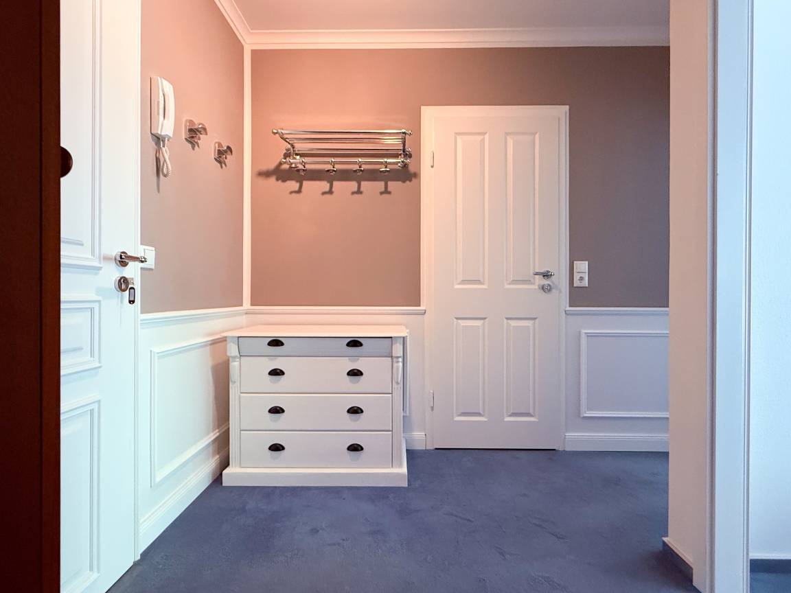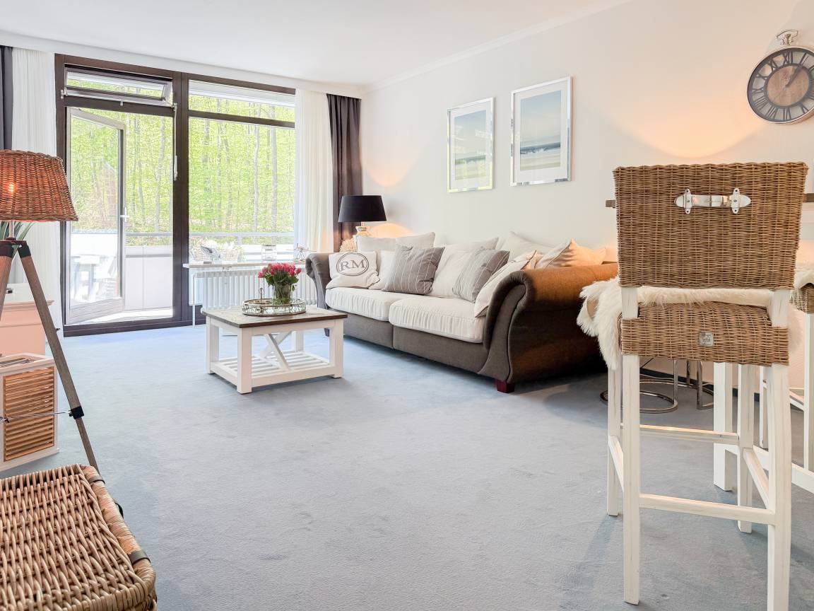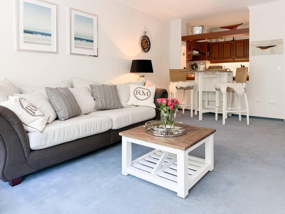 Es erwartet Sie ein stilvoll eingerichteter Rückzugsort, der für 2 Personen ein gemütliches Ambiente bietet, um einen entspannten Ostseeurlaub zu verleben. Der schöne Balkon in Südwestausrichtung, ausgestattet mit Gartenmöbeln und Markise, erstreckt sich über die gesamte Breite der Wohnung und ist sowohl vom Wohnzimmer, als auch vom Schlafzimmer zu begehen. Der großzügige Wohnbereich ist mit einem gemütlichen XL Sofa, TV und WLAN ausgestattet und der anschließende Essbereich ist für 2 Personen eingerichtet. Die integrierte bestens ausgestattete Küche verfügt über eine Durchreiche zum Essbereich. Das Schlafzimmer ist mit einem Doppelbett (180x200), Kleiderschrank und Verdunkelungsvorhängen ausgestattet. Das neue luxuriöse Bad verfügt über Waschtisch, WC, eine bodengleiche Walk In Dusche, Rainshower und Handbrause. Zu der Wohnung gehört ein Tiefgaragenstellplatz (Tor-Durchfahrtshöhe max. 1,90 m), dort können auch 2 Fahrräder vor dem Fahrzeug abgestellt werden. Das Tor ist von innen über den Schalter zu öffnen.[nbsp] Mit dem Fahrstuhl im Erdgeschoß gelangt man entspannt in die 2. Etage.