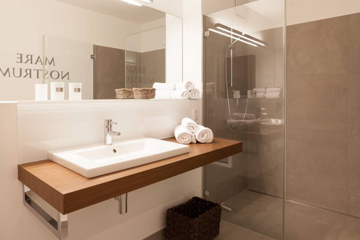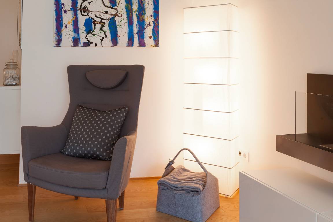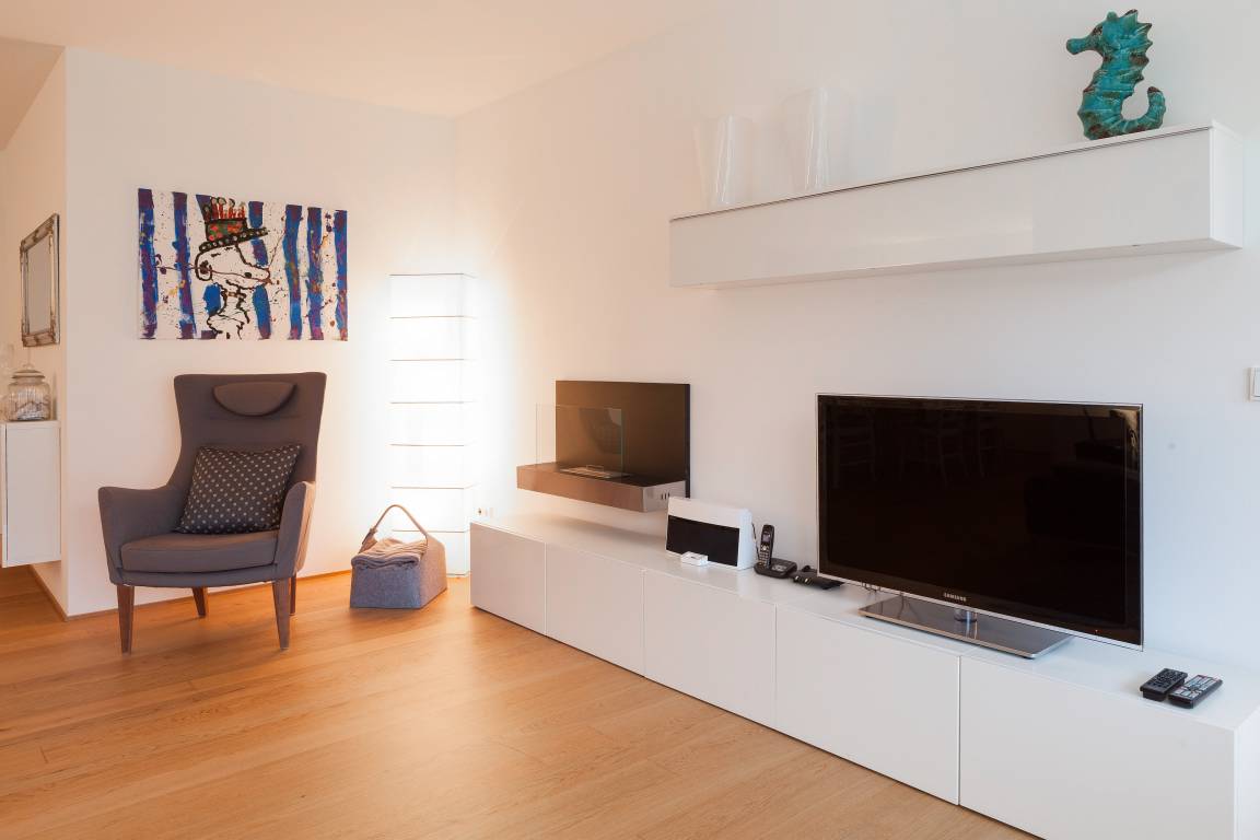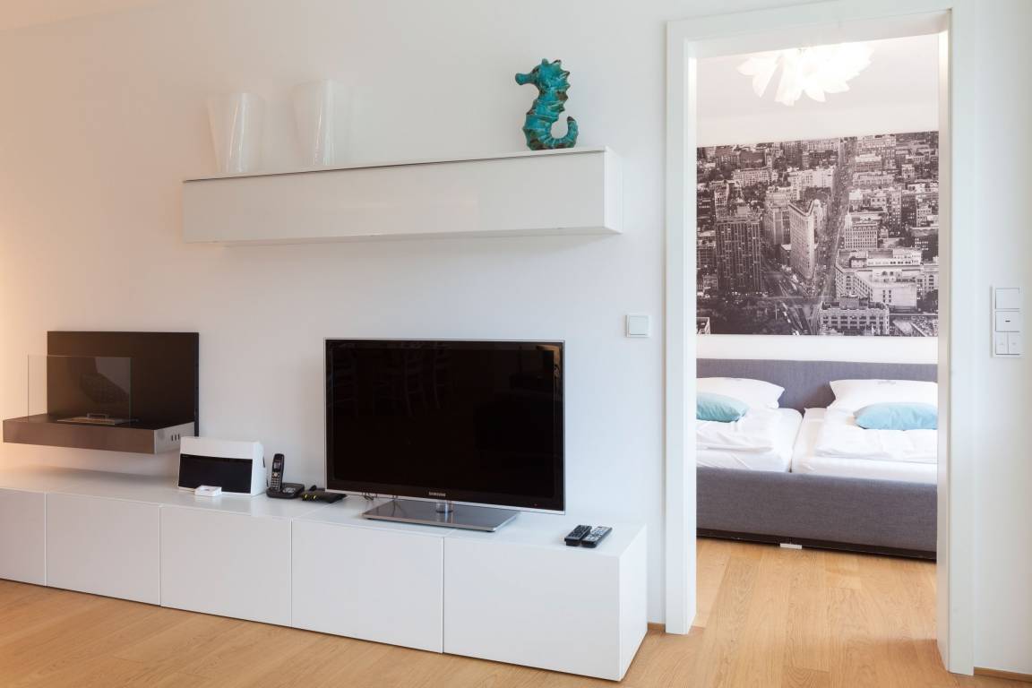 Die moderne, stilvoll eingerichtete Wohnung ist komplett mit Echtholzparkett ausgestattet. Alle Fensterelemente sind bodentief und mit elektrischen Außenjalousien versehen. Es gibt einen großzügigen Wohnraum mit Ethanolkamin, TV, Radio und WLAN[nbsp] und einen tollem Blick bis zur Ostsee. Die offene, moderne Einbauküche mit großzügigem Essbereich genügt höchsten Ansprüchen und verfügt über Mikrowelle, Backofen, Spülmaschine und Induktionskochfeld. Zwei separate Schlafzimmer (ein Doppelbett 200x200 und 2 Einzelbetten 80x200), ein weiterer TV mit integriertem DVD Laufwerk sowie ein modernes Bad mit großem, ebenerdigen Duschbereich und Fußbodenheizung stehen zur Verfügung. Die riesige, 50 qm große Terrasse ist mit Esstisch und Stühlen sowie mit gemütlichen Loungemöbeln ausgestattet, überdacht und windgeschützt. Herrlich zum Entspannen und den schönen Blick auf die Ostsee zu genießen. Das Haus am Meer verfügt über einen Fahrstuhl und eine Tiefgarage (Einfahrstshöhe 2 m), in der ein fester Stellplatz reserviert ist. Ein Fahrradkeller, Münzwaschmaschine und -Trockner sind vorhanden. Für unsere kleinen Gäste befindet sich auf der Gartenseite des Hauses ein Spielplatz.