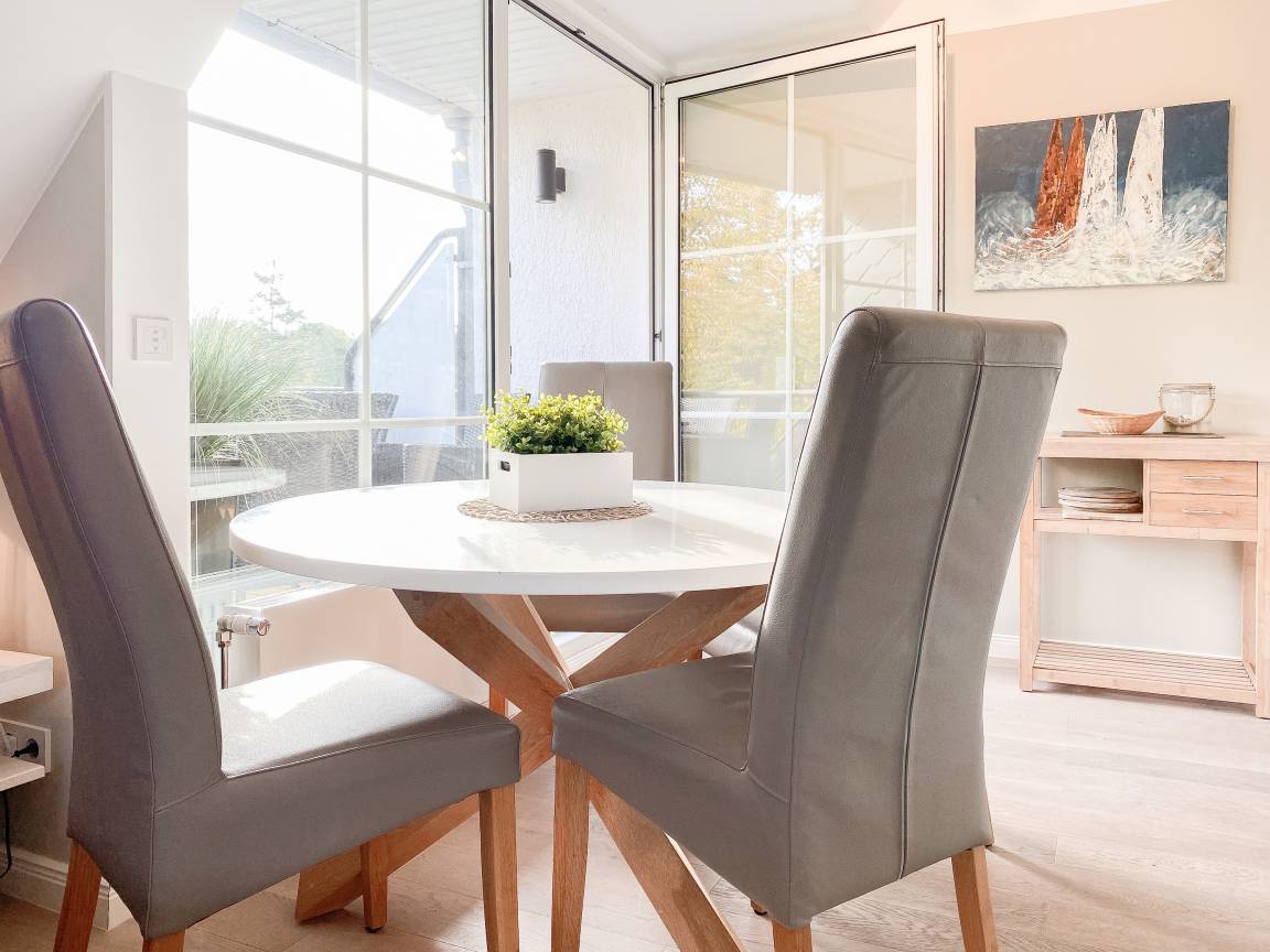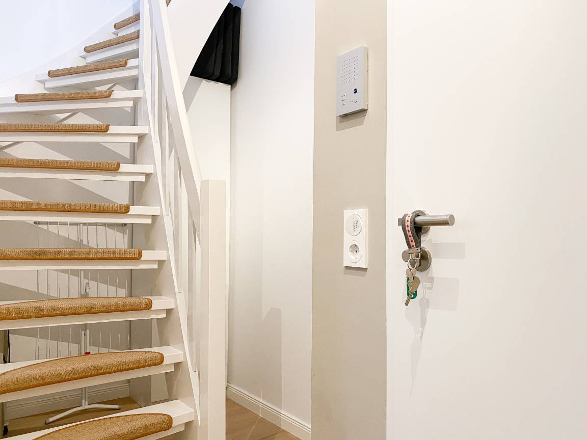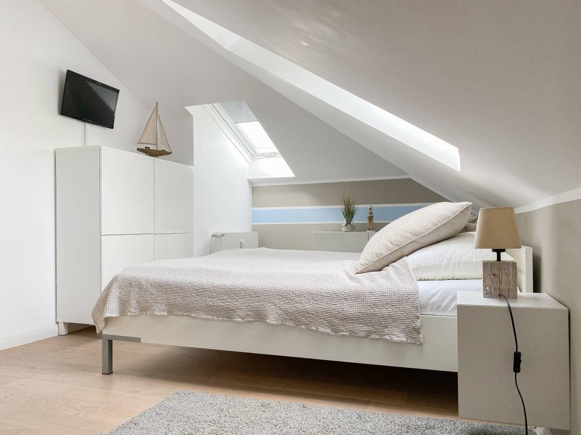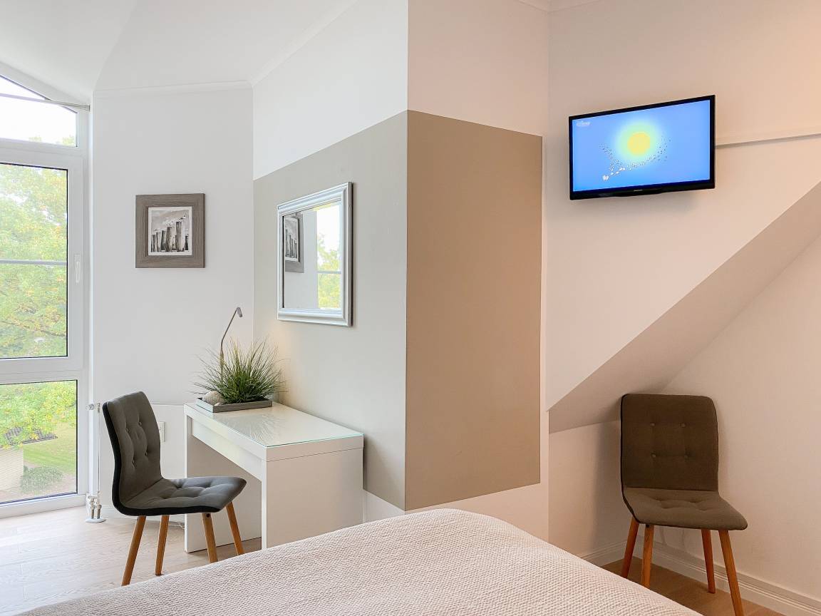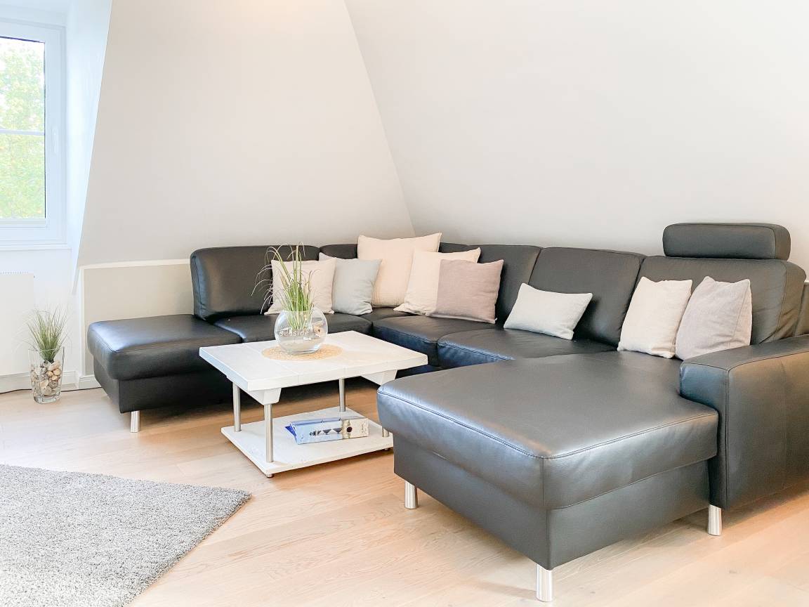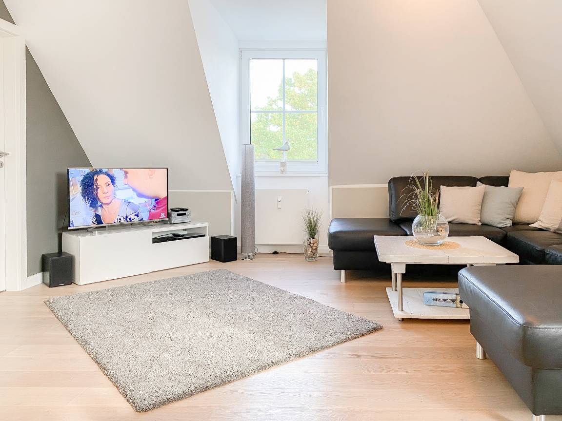 In der obersten Etage in der 4. Etage eines kernsanierten Hauses erstreckt sich die Wohnung über 2 Ebenen und bietet mit 2 separaten Schlafzimmern ausreichend Platz für 4 Personen.[nbsp] Echtholzböden und die geschmackvolle Einrichtung sorgen für eine Atmosphäre zum Wohlfühlen. Auf der unteren Ebene befindet sich ein gemütlicher Wohnbereich mit TV und Stereoanlage sowie ein Essbereich für 4 Personen und eine individuelle Küchenzeile mit Spülmaschine, Mikrowelle mit Grillfunktion und 2 Platten Cerankochfeld. Der vorgelagerte Sonnenbalkon ist mit einer elektrischen Markise ausgestattet. Ebenfalls auf dieser Ebene befinden sich ein modernes Duschbad und ein Schlafzimmer, ausgestattet mit einem Boxspringbett (160x200), TV und Verdunkelungsvorhängen. Das zweite Schlafzimmer erreichen Sie über eine Treppe vom Flurbereich. Es verfügt über ein Doppelbett (180x200), TV und Verdunkelungsrollos. Vom Dachfenster hat man einen schönen Blick auf die Ostsee. WLAN steht selbstverständlich zur kostenlosen Nutzung zur Verfügung.