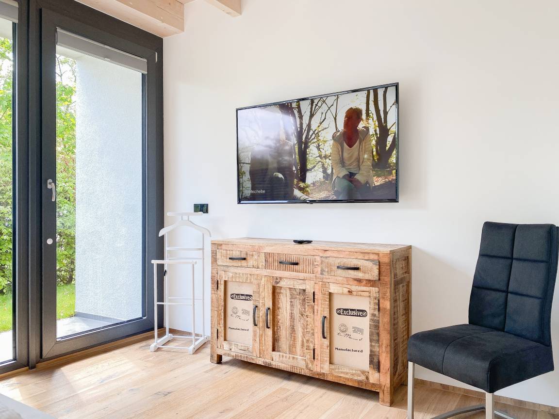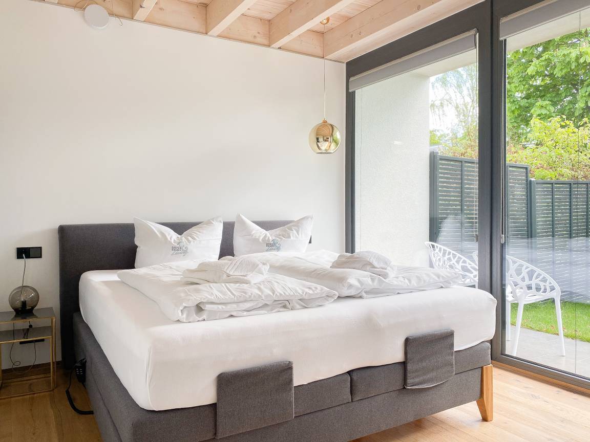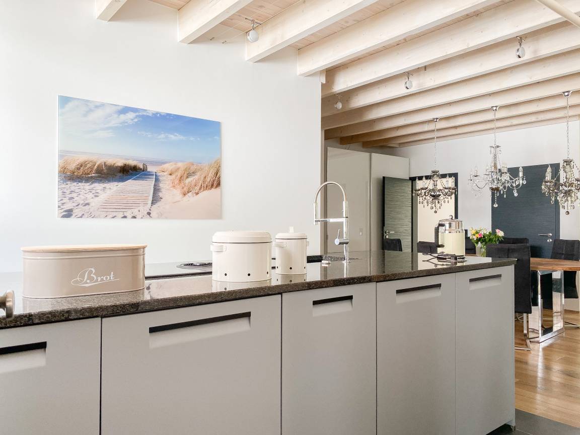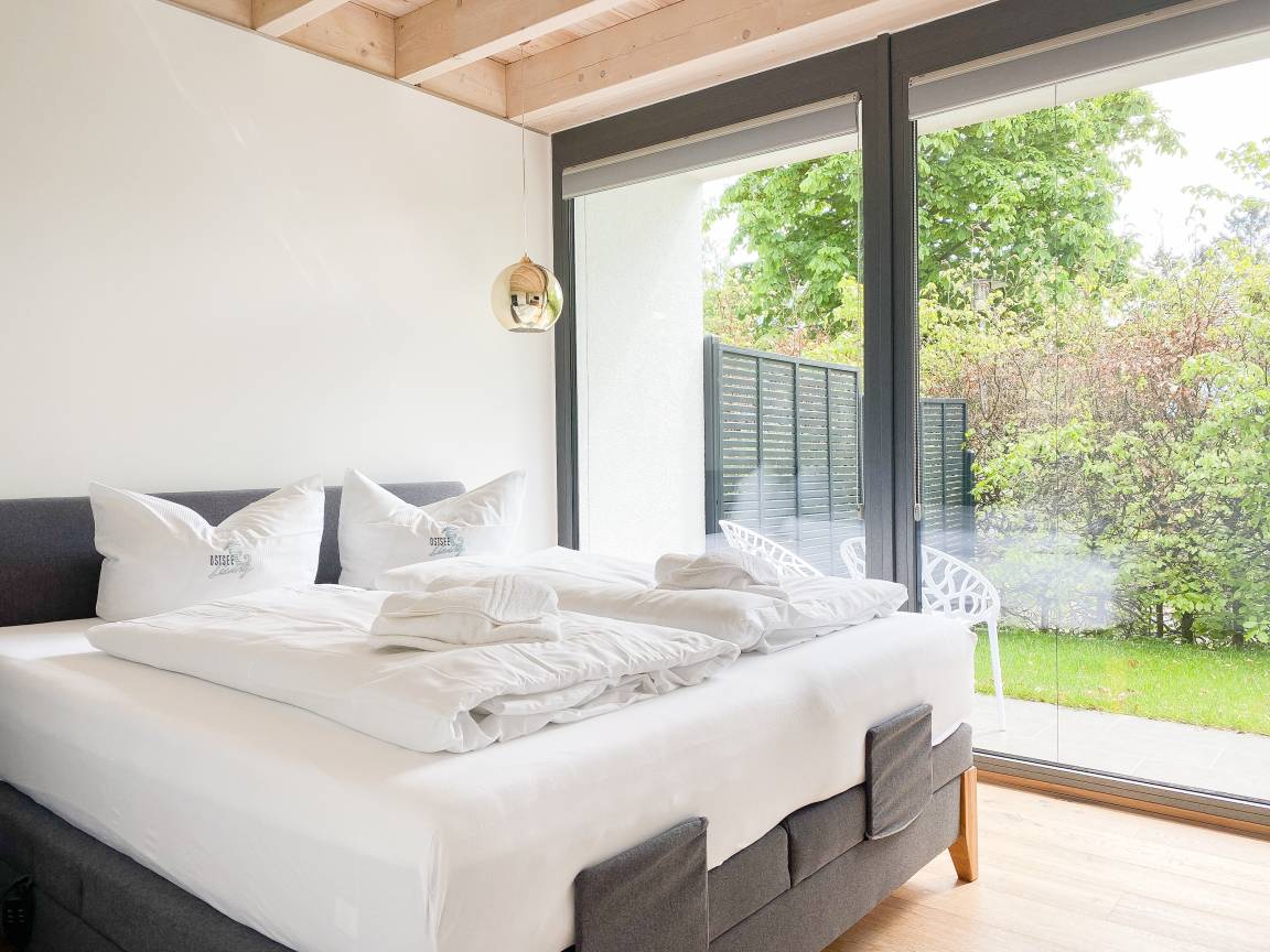 Die Erdgeschosswohnung Meerchenwald 4 verfügt über 2 separate Schlafzimmer mit elektromotorisch verstellbaren Boxspringbetten (180x200), Verdunkelungsplissees und TV sowie zwei moderne Duschbäder en Suite. Im Flur bietet ein großer Einbauschrank ausreichend Stauraum für Ihre Urlaubsgarderobe. Der großzügige Wohnbereich mit riesigen Glasfronten zur Süd Terrasse mit kleinem Garten verfügt über 2 Sofas und einen gemütlichen Sessel, TV, DVD-Player und Surround Anlage. Selbstverständlich steht WLAN zur kostenlosen Nutzung zur Verfügung. Der anschließende Essbereich ist für 6 Personen eingerichtet und die perfekt ausgestattete, hochmoderne Wohnküche lässt garantiert keine Wünsche offen.