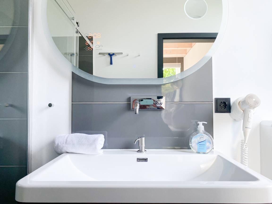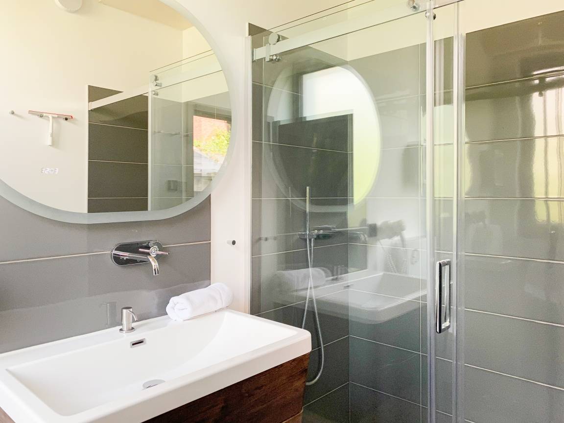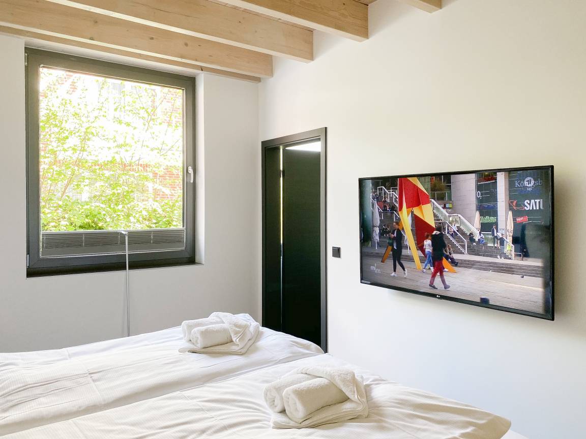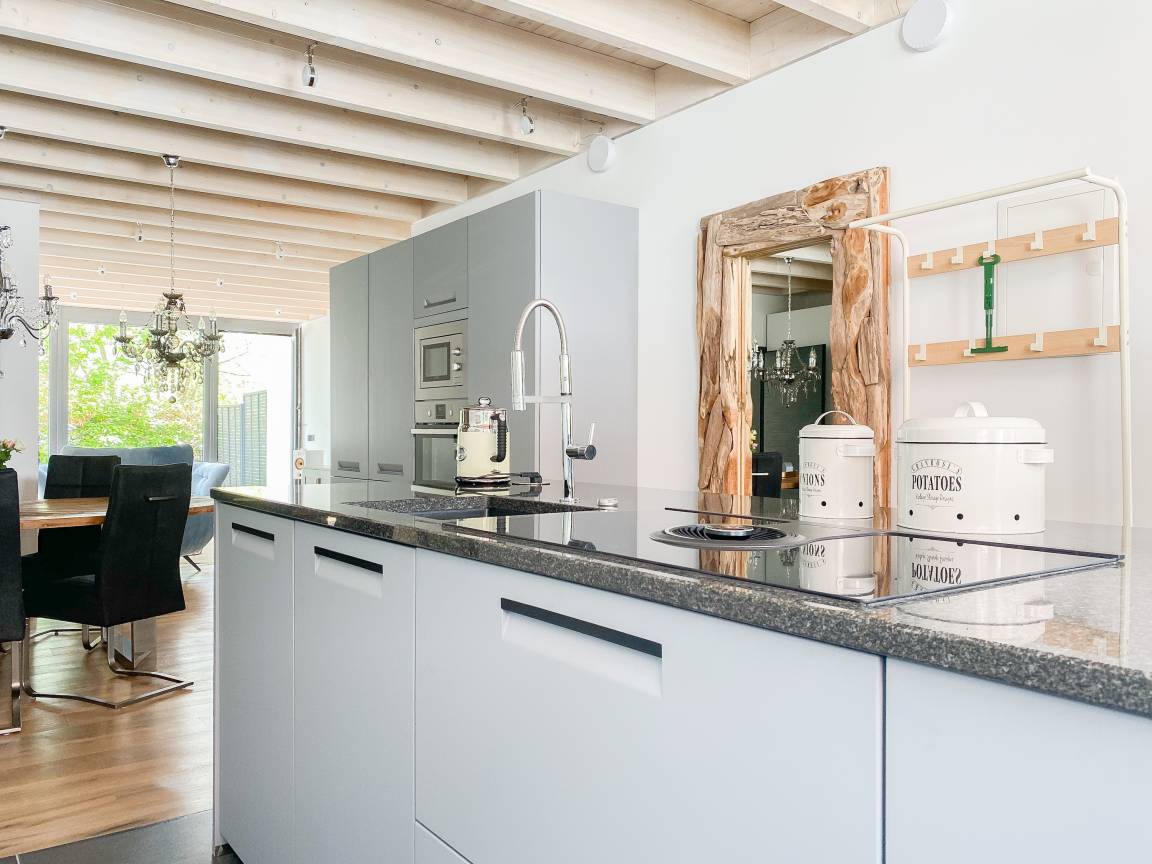 Die Erdgeschosswohnung Meerchenwald 4 verfügt über 2 separate Schlafzimmer mit elektromotorisch verstellbaren Boxspringbetten (180x200), Verdunkelungsplissees und TV sowie zwei moderne Duschbäder en Suite. Im Flur bietet ein großer Einbauschrank ausreichend Stauraum für Ihre Urlaubsgarderobe. Der großzügige Wohnbereich mit riesigen Glasfronten zur Süd Terrasse mit kleinem Garten verfügt über 2 Sofas und einen gemütlichen Sessel, TV, DVD-Player und Surround Anlage. Selbstverständlich steht WLAN zur kostenlosen Nutzung zur Verfügung. Der anschließende Essbereich ist für 6 Personen eingerichtet und die perfekt ausgestattete, hochmoderne Wohnküche lässt garantiert keine Wünsche offen.