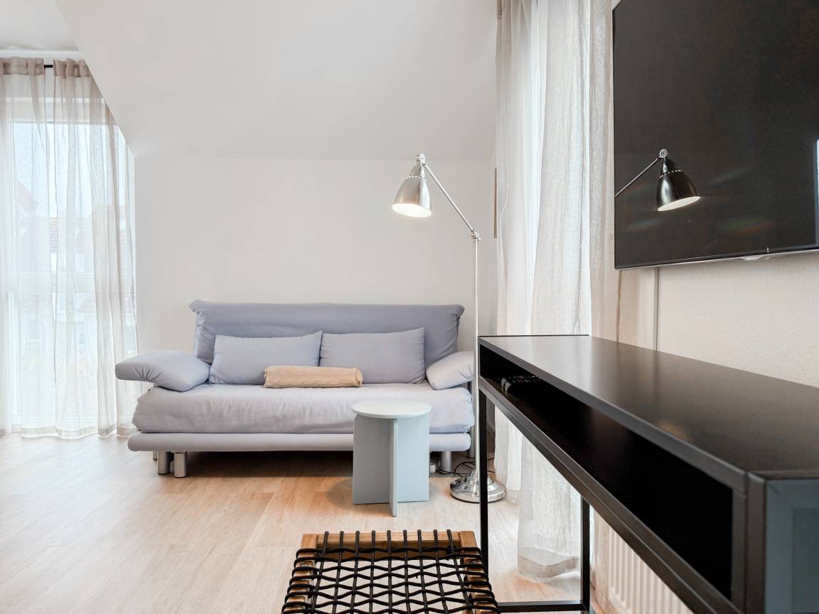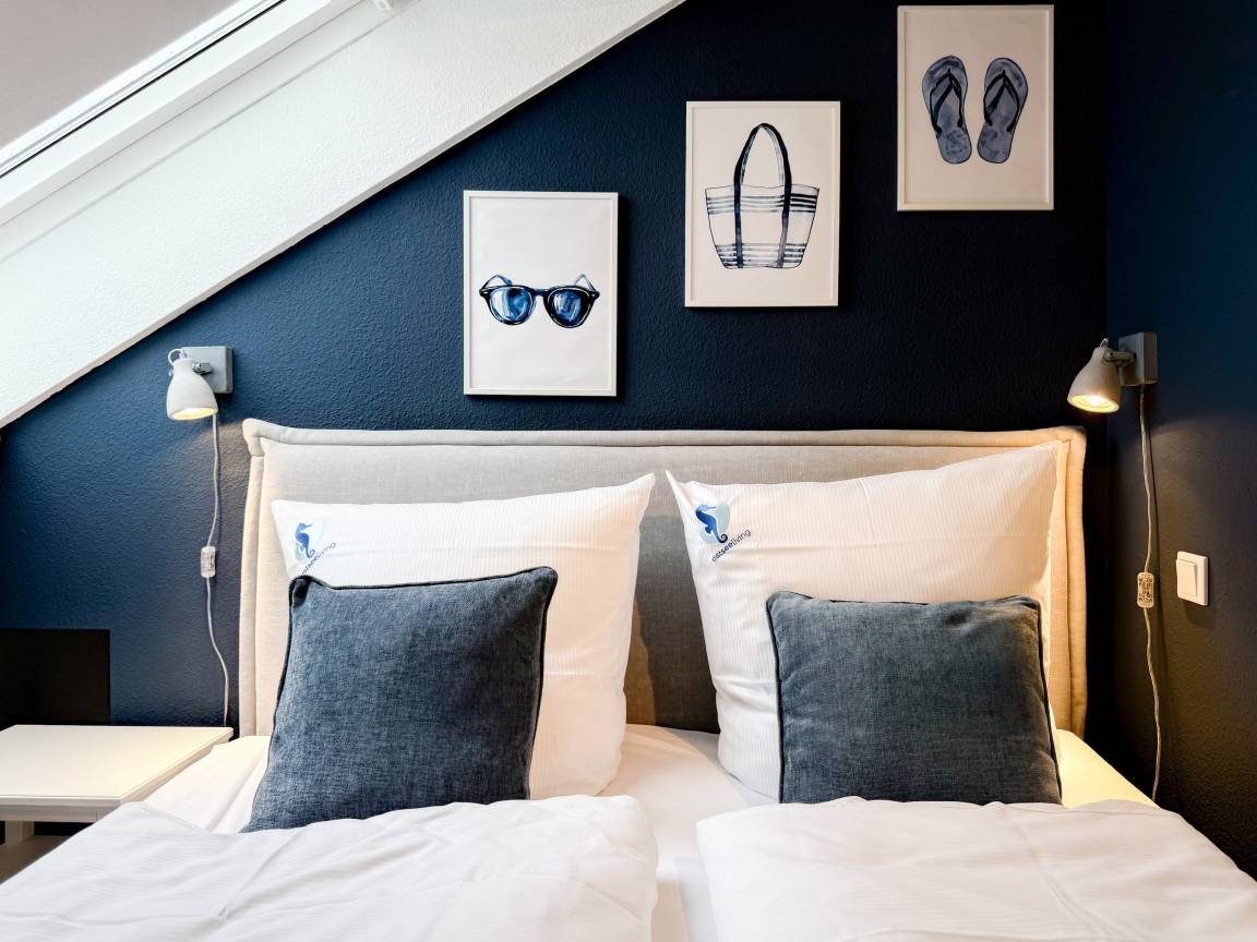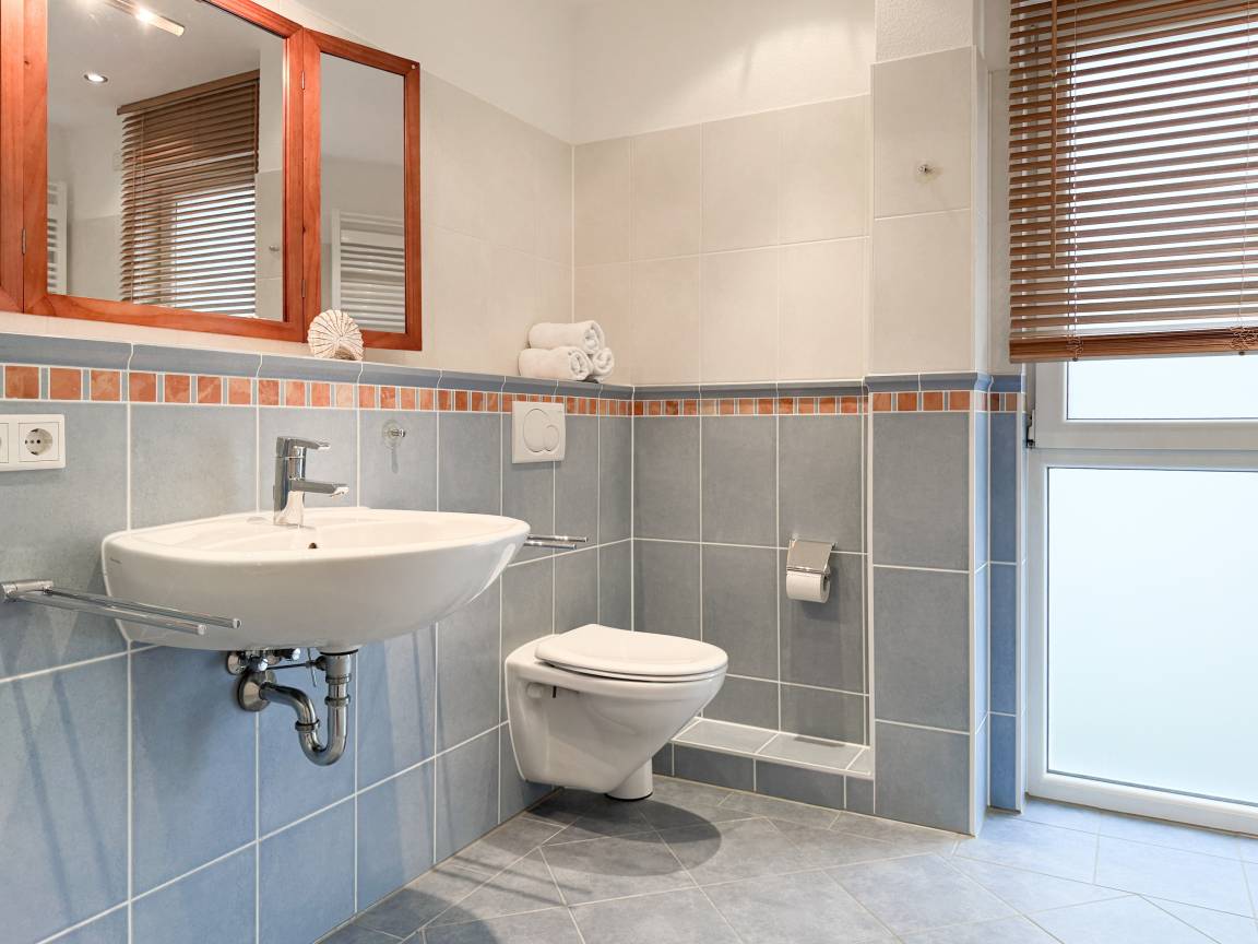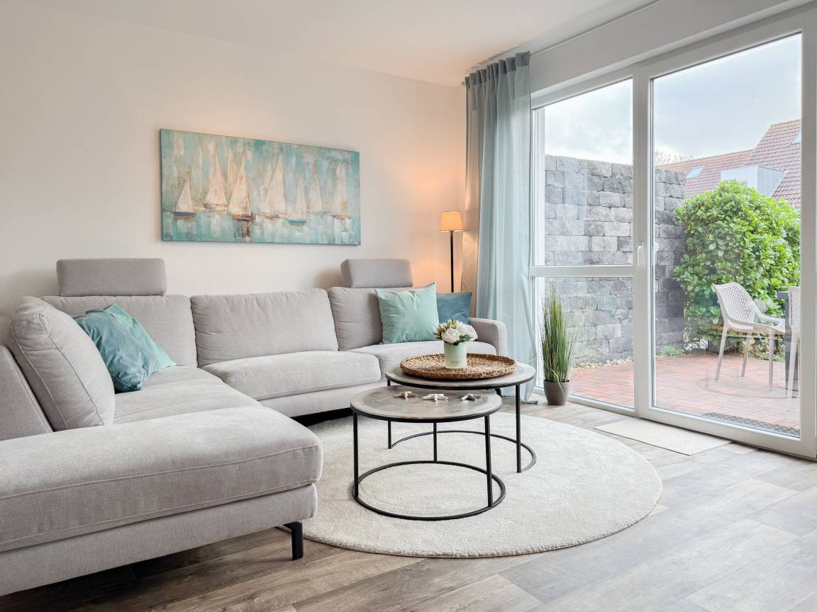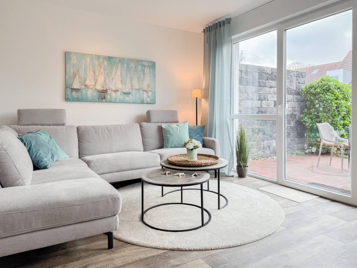 Willkommen in diesem wunderbaren Doppelhaus, das mit 3 Schlafzimmern und 2 Bädern auf über 100 qm Wohnfläche perfekt für 6 Personen geeignet ist, um einen erholsamen Ostseeurlaub in unmittelbarer Nähe zum Strand zu verbringen. Sonnige Räume und die äußerst hochwertige Ausstattung sorgen für besten Wohnkomfort in einem angenehmen Ambiente. Im Erdgeschoss erwartet Sie ein großzügiger Wohnbereich, der mit einem komfortablen Ecksofa und einem TV eingerichtet ist. Der angrenzende Essbereich ist ebenfalls großzügig gestaltet und verfügt über einen runden Esstisch, eine Sitzbank sowie Stühle, die perfekt für gesellige Stunden und gemeinsame Mahlzeiten geeignet sind. Besonders schön ist die nach Süden ausgerichtete Sonnenterrasse, die viel Tageslicht einfängt. Sie ist mit Gartenmöbeln, einem Strandkorb und einer elektrischen Markise ausgestattet, die an sonnigen Tagen für Schatten sorgt. Die großzügige, separat gelegene Einbauküche ist hervorragend ausgestattet und bietet alle Annehmlichkeiten, die man für das gemeinsame Kochen benötigt. Hier können Sie sich in geselliger Runde beim Kochen austauschen und kreativ sein. Im Eingangsbereich befindet sich eine praktische Garderobe, die Platz für Jacken und Schuhe bietet. Angrenzend gibt es ein modernes Tageslichtbad, ausgestattet mit Dusche, Waschbecken und WC. Waschmaschine und Trockner sind in einem separaten Abstellraum untergebracht, ebenfalls im Erdgeschoss. Im Obergeschoss befindet sich ein weiteres Badezimmer mit Waschtisch, Duschwanne, WC und Fenster. Rechts und links davon sind zwei separate Schlafzimmer angeordnet. Schlafzimmer 1 ist äußerst geräumig und mit einem Boxspringbett (180x210), einem Kleiderschrank mit ausreichend Stauraum für Ihre Urlaubsgarderobe und einem Fernseher eingerichtet. Ein kleiner Wohnbereich mit einem Sofa bietet einen gemütlichen Rückzugsort zum Entspannen und Lesen. Schlafzimmer 2 ist ebenfalls mit einem Doppelbett (180x200), TV, einem geräumigen Kleiderschrank sowie einer Leseecke ausgestattet. Im Dachgeschoss befindet sich das 3. Schlafzimmer mit einem Boxspringbett (160x200), Kleiderschrank, TV und Schreibtisch. Die Dachflächenfenster lassen sich über ein Rollo verdunkeln, alle anderen Fenster des Hauses sind mit elektrischen Außenjalousien versehen. WLAN steht selbstverständlich kostenlos zur Verfügung. Vor dem Haus befinden sich zwei Parkplätze. Fahrräder können sicher und trocken im Schuppen direkt am Haus untergebracht werden.