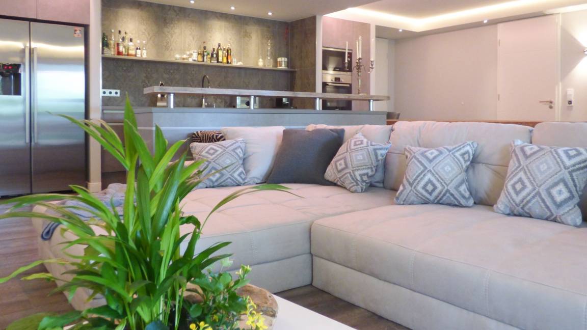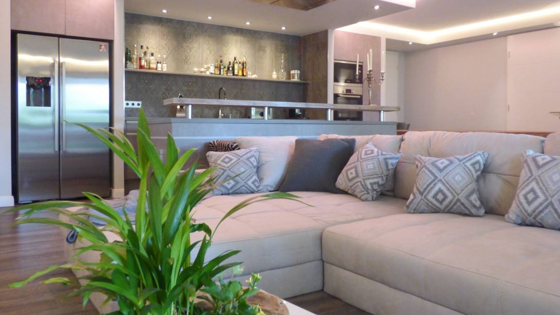 Das Herzstück der Wohnung[nbsp][nbsp]bilden die großzügigen Bereiche Wohnen, Essen und Kochen, ausgestattet mit bodentiefen Fensterelementen mit Blick[nbsp] auf die riesige, überdachte Veranda, die sich über die gesamte Hausbreite erstreckt und den Garten. Genießen Sie den tollen Außenbereich zu jeder Tageszeit. Es erwartet Sie eine hochmoderne Designküche, perfekt ausgestattet mit allen technischen Geräten und integriertem Weinkühlschrank, ein großzügiger [nbsp]Essbereich sowie eine hochwertige Wohnlandschaft mit TV und Highspeed WLAN. Es stehen zwei separate Schlafzimmer, ausgestattet mit Boxspringbetten und TV[nbsp][nbsp]sowie ein[nbsp] tolles Wellnessbad mit riesiger Badewanne und ein weiteres Duschbad zur Verfügung. Im Abstellraum ist ein Waschtrockner untergebracht. Ein PKW Stellplatz befindet sich auf dem Grundstück direkt an der Wohnung.
