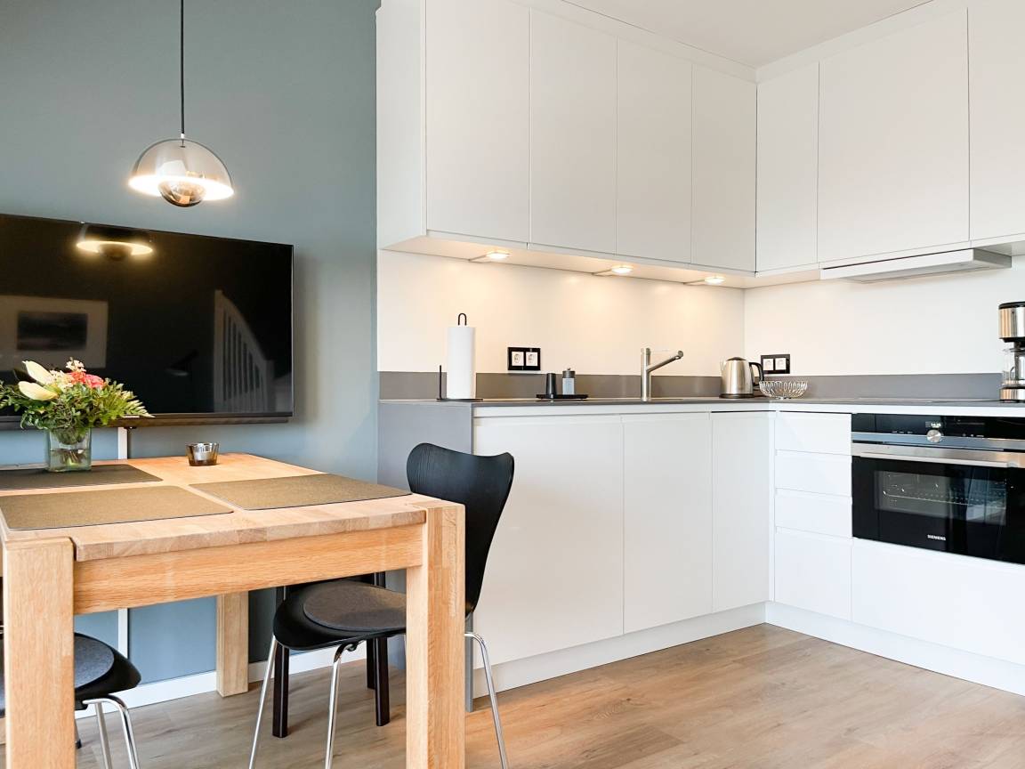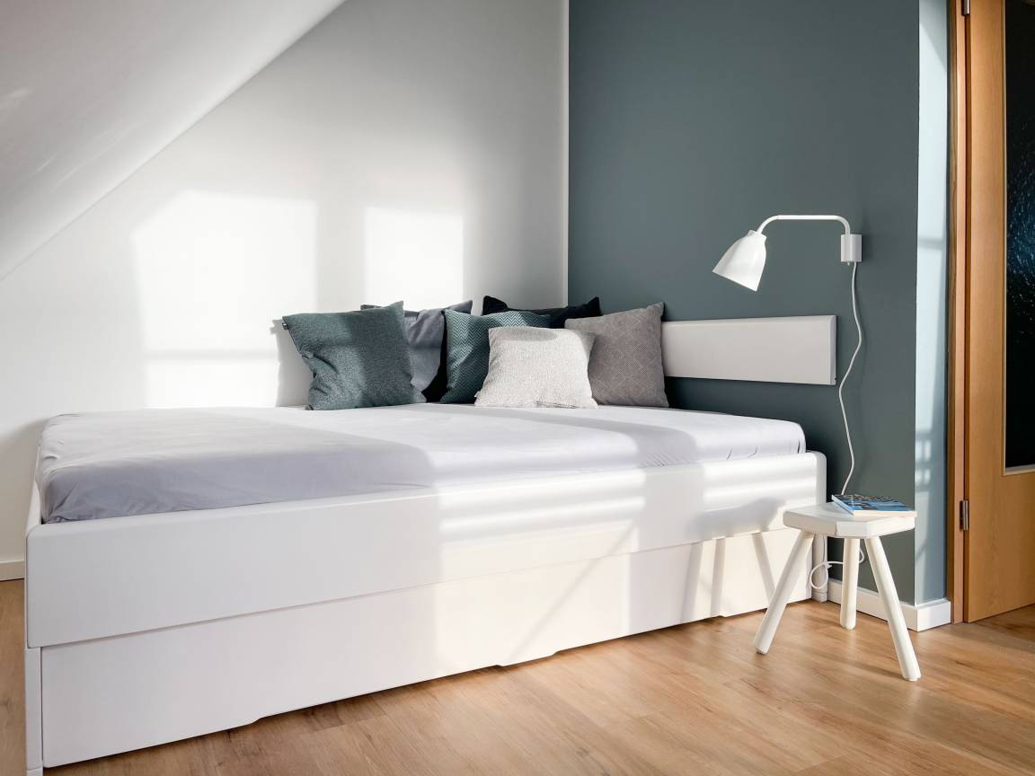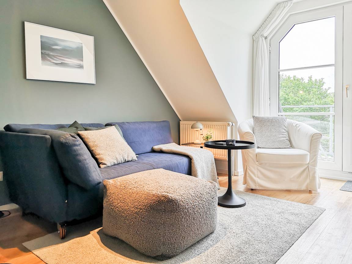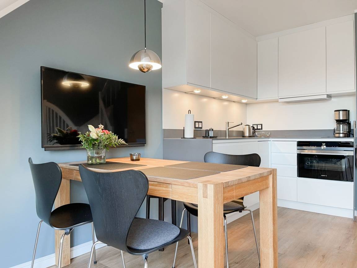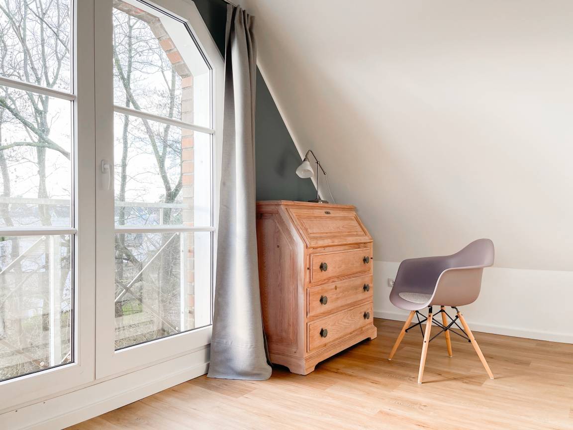 Die lichtdurchflutete Maisonette liegt im 2. Obergeschoss und erstreckt sich über zwei Ebenen zur sonnigen Süd-Ost-Seite. Die stilvolle, skandinavische Einrichtung mit liebevollen Details schafft ein behagliches Ambiente für zwei Personen. Der hochwertig eingerichtete Wohn- und Essbereich bietet neben einem TV und einem Bluetoothradio selbstverständlich auch kostenloses WLAN. Die vom Tischler angefertigte, voll ausgestattete Küche lässt keine Wünsche offen. Das separate Schlafzimmer, ebenfalls passgenau vom Tischler, verfügt über ein Doppelbett (160cm x 200cm, getrennte Matratzen 80x200 mit Toppern) und einen Kleiderschrank. Verdunkelungsvorhänge sorgen für einen erholsamen Schlaf. Das neue, hochwertige Bad ist mit einer Dusche, WC, Waschtisch und Fenster ausgestattet.Die obere Wohnebene, erreichbar über eine Treppe vom Wohnbereich ausgehend, bietet einen weiteren gemütlichen Rückzugsort. Hier finden Sie eine Kommode/Schreibtisch, eine gemütliche Leseecke und ein Bett, das sowohl als „Daybed" als auch für die Nacht genutzt werden kann.