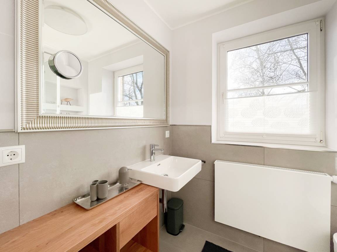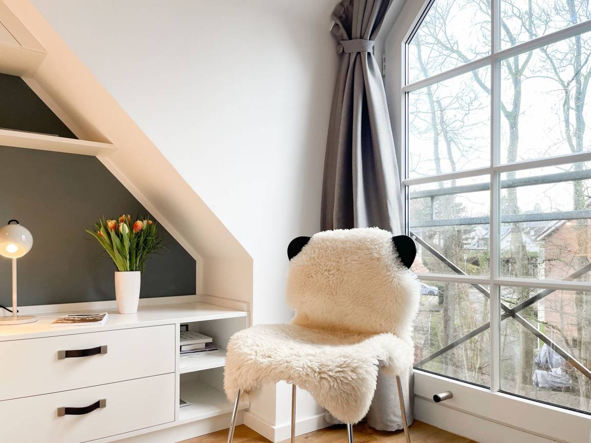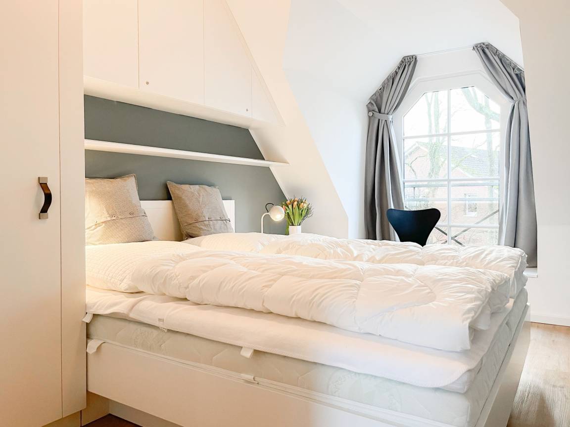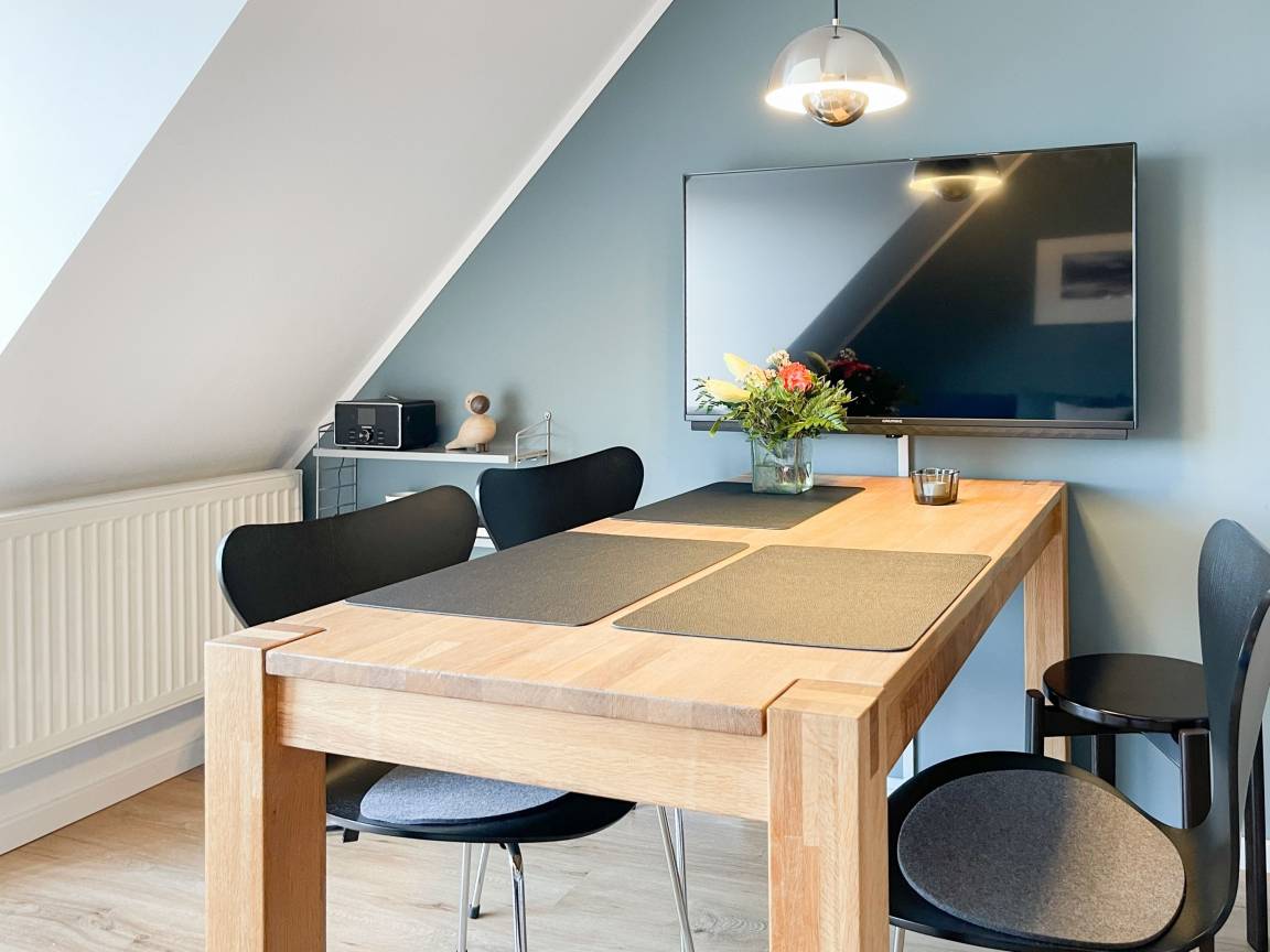 Die lichtdurchflutete Maisonette liegt im 2. Obergeschoss und erstreckt sich über zwei Ebenen zur sonnigen Süd-Ost-Seite. Die stilvolle, skandinavische Einrichtung mit liebevollen Details schafft ein behagliches Ambiente für zwei Personen. Der hochwertig eingerichtete Wohn- und Essbereich bietet neben einem TV und einem Bluetoothradio selbstverständlich auch kostenloses WLAN. Die vom Tischler angefertigte, voll ausgestattete Küche lässt keine Wünsche offen. Das separate Schlafzimmer, ebenfalls passgenau vom Tischler, verfügt über ein Doppelbett (160cm x 200cm, getrennte Matratzen 80x200 mit Toppern) und einen Kleiderschrank. Verdunkelungsvorhänge sorgen für einen erholsamen Schlaf. Das neue, hochwertige Bad ist mit einer Dusche, WC, Waschtisch und Fenster ausgestattet.Die obere Wohnebene, erreichbar über eine Treppe vom Wohnbereich ausgehend, bietet einen weiteren gemütlichen Rückzugsort. Hier finden Sie eine Kommode/Schreibtisch, eine gemütliche Leseecke und ein Bett, das sowohl als „Daybed" als auch für die Nacht genutzt werden kann.