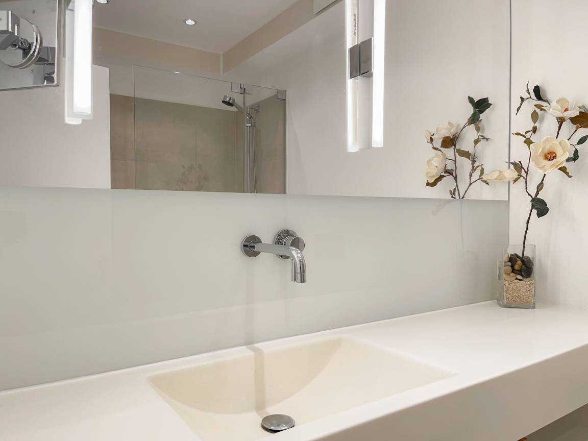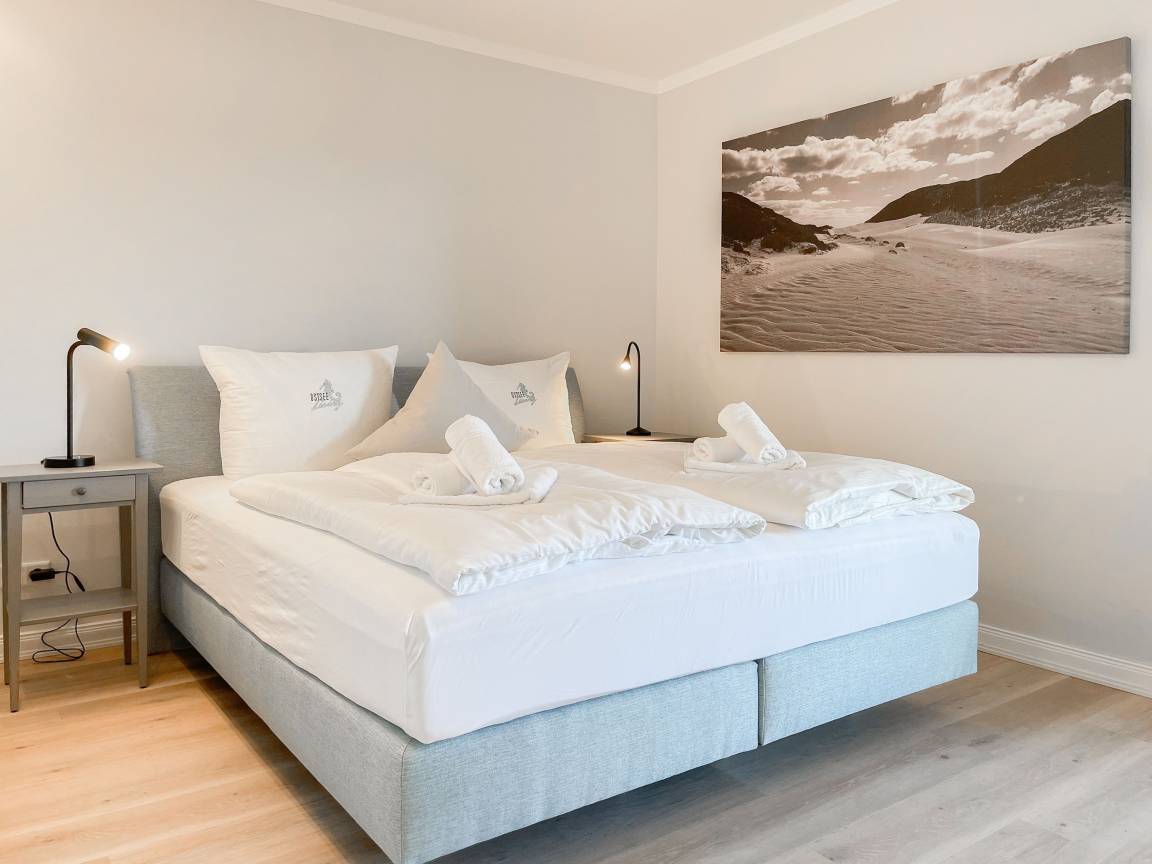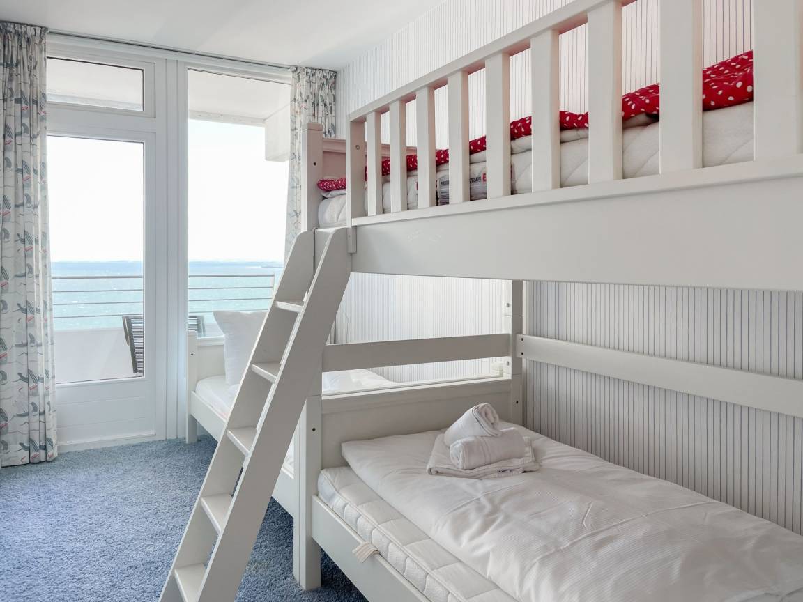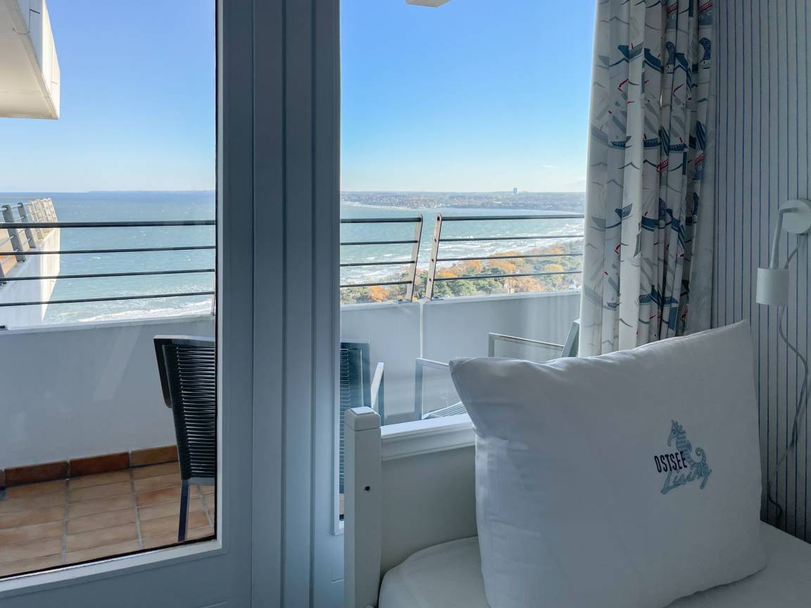 Die traumhafte Ferienwohnung Ocean View bietet auf 90 qm höchsten Wohnkomfort mit einer luxuriösen Ausstattung und einem stilvollen Interieur. Der weitläufige Sonnenbalkon über Eck ist mit Gartenmöbeln, Sonnenliegen und einer elektrischer Markise ausgestattet und sowohl vom Wohnbereich als auch von beiden Schlafzimmern zugänglich. Genießen Sie tagsüber das traumhafte Meerblickpanorama aus nahezu jedem Raum und bei Dunkelheit die besondere Atmosphäre der beleuchteten Lübecker Bucht. Der in warmen, hellen Farben gehaltene Wohn- Essbereich verfügt neben dem phantastischen Meerblick über eine äußerst hochwertige Einrichtung. Es steht ein gemütliches XXL Sofa, TV und WLAN zur Verfügung. Der anschließende Essbereich bietet ausreichend Platz für 4 Personen und die integrierte Design Küche läßt keine Wünsche offen. Es stehen 2 Schlafzimmer zur Verfügung, die beide ebenfalls einen wunderschönen Meerblick bieten. Die Fenster sind mit Verdunkelungsvorhängen bzw. Plissee und Rollo versehen. Das große Schlafzimmer verfügt über eine Boxspringbett (180x200) und einen geräumigen Kleiderschrank, das kleine Schlafzimmer ist mit einem Einzel- sowie einem Etagenbett ausgestattet und Stauraum für die Urlaubsgarderobe bietet ein großer Einbauschrank, der sich im Flurbereich vor den Schlafräumen befindet. Das moderne Bad verfügt über Waschtisch und eine[nbsp] Badewanne mit Dusche. Eine Waschmaschine ist im Einbauschrank im Flur untergebracht. Ein fester PKW Stellplatz in der Hotelgarage (Einfahrtshöhe 1,90/kein Aufzug) ist inklusive. Bei Verlust der Parkkarte ist Ersatz zu leisten. Ein Fahrtstuhl im Gebäude ist vorhanden.