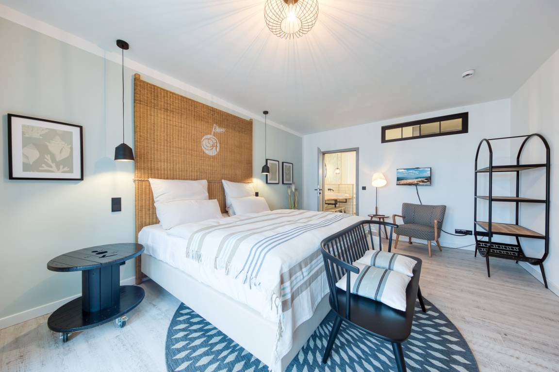 Beide Schlafzimmer sind mit Boxspring-Doppelbetten (1 x 180 cm x 200 cm) und einem Flachbildfernseher ausgestattet. Die beiden hellen und modernen Badezimmer mit bodengleicher Dusche, WC und Fön befinden sich direkt neben den Schlafzimmern.