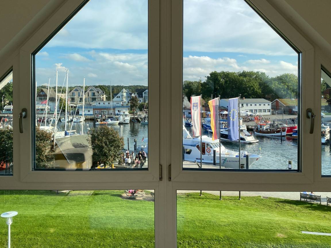 Traumhafter Blick über den Niendorfer Hafen bis zur Ostsee. Die Ferienwohnung Hafenloge befindet sich in hervorragender Strandlage in zweiter Reihe zur Ostsee direkt am Niendorfer Hafen. Frische Brötchen gibt es beim Bäcker um die Ecke, fangfrischen Fisch direkt vom Kutter und zahlreiche Restaurants und Cafés sowie ein Fahrradverleih und ein Spielplatz befinden sich in unmittelbarer Umgebung.