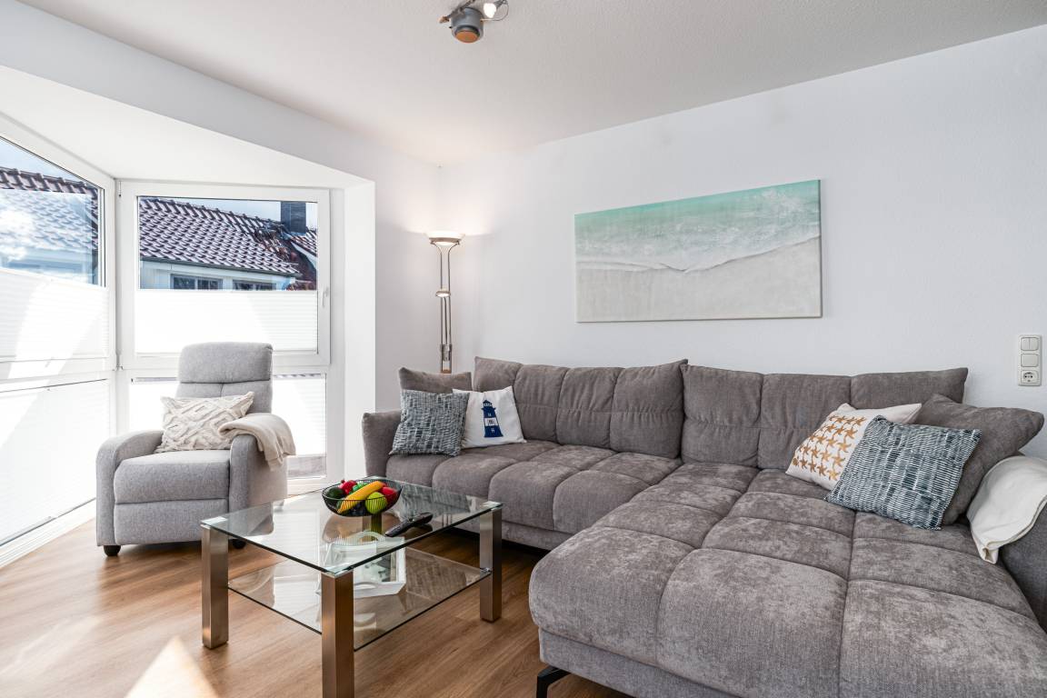 Das in 2025 renovierte und neu möblierte 2-Zimmer Appartement liegt im 2. Obergeschoss des Hauses und bietet auf 52m² Wohnfläche viel Platz für bis zu 4 Personen. Als Highlight gehört zu der Ferienwohnung ein Balkon mit Meerblick, der zum Verweilen und Entspannen einlädt.