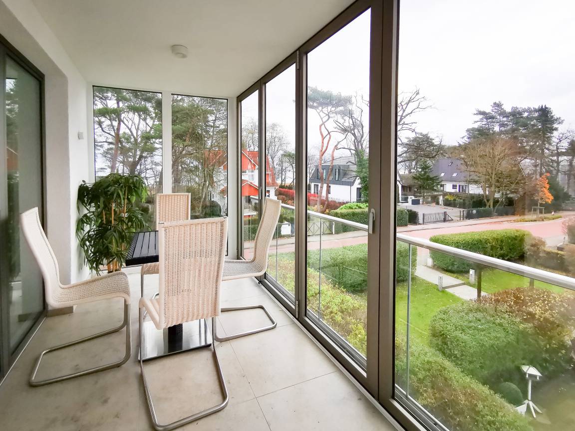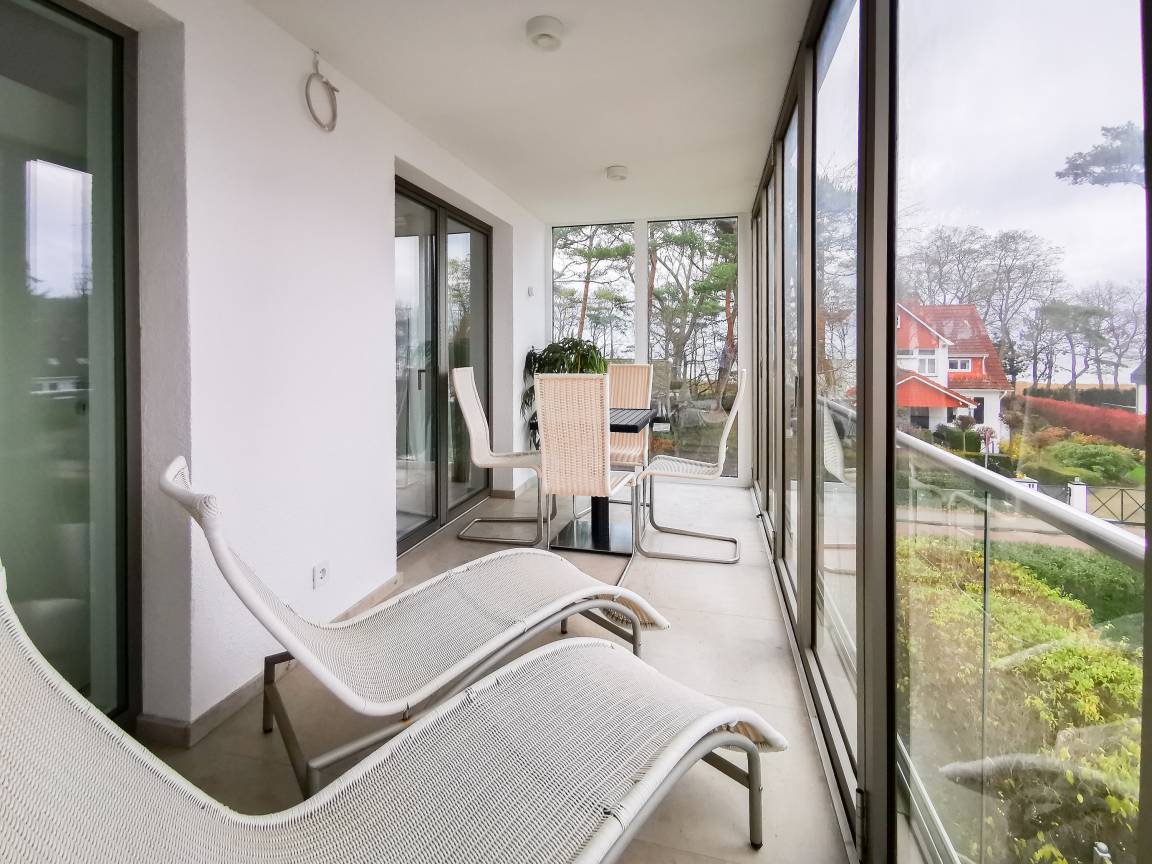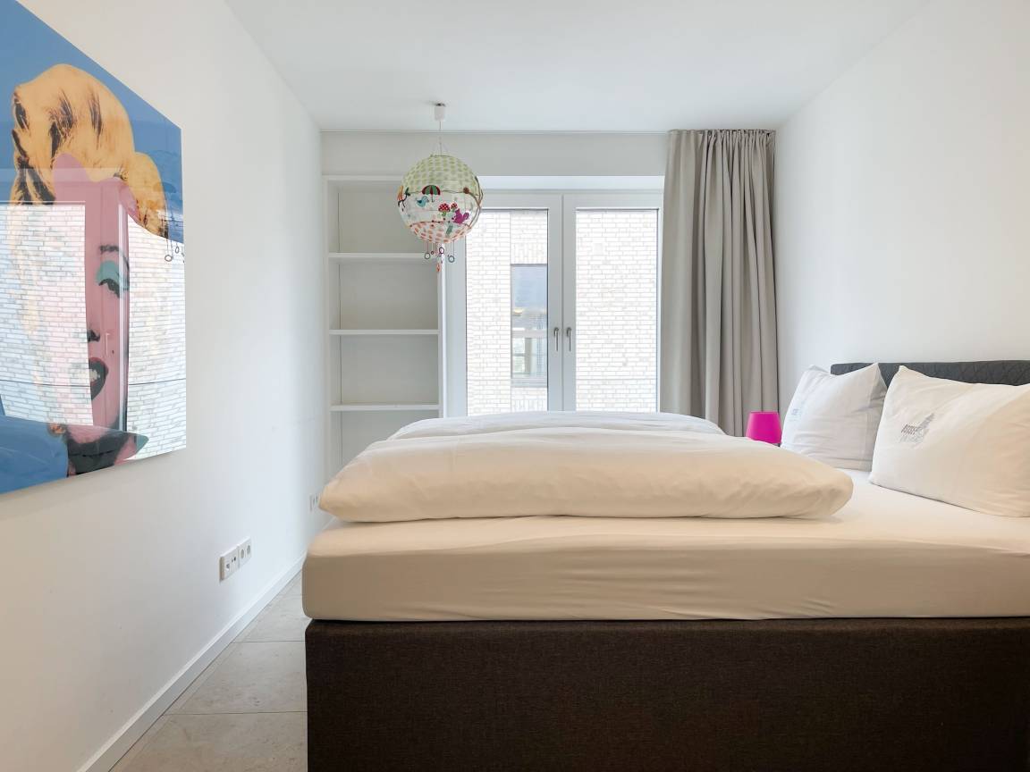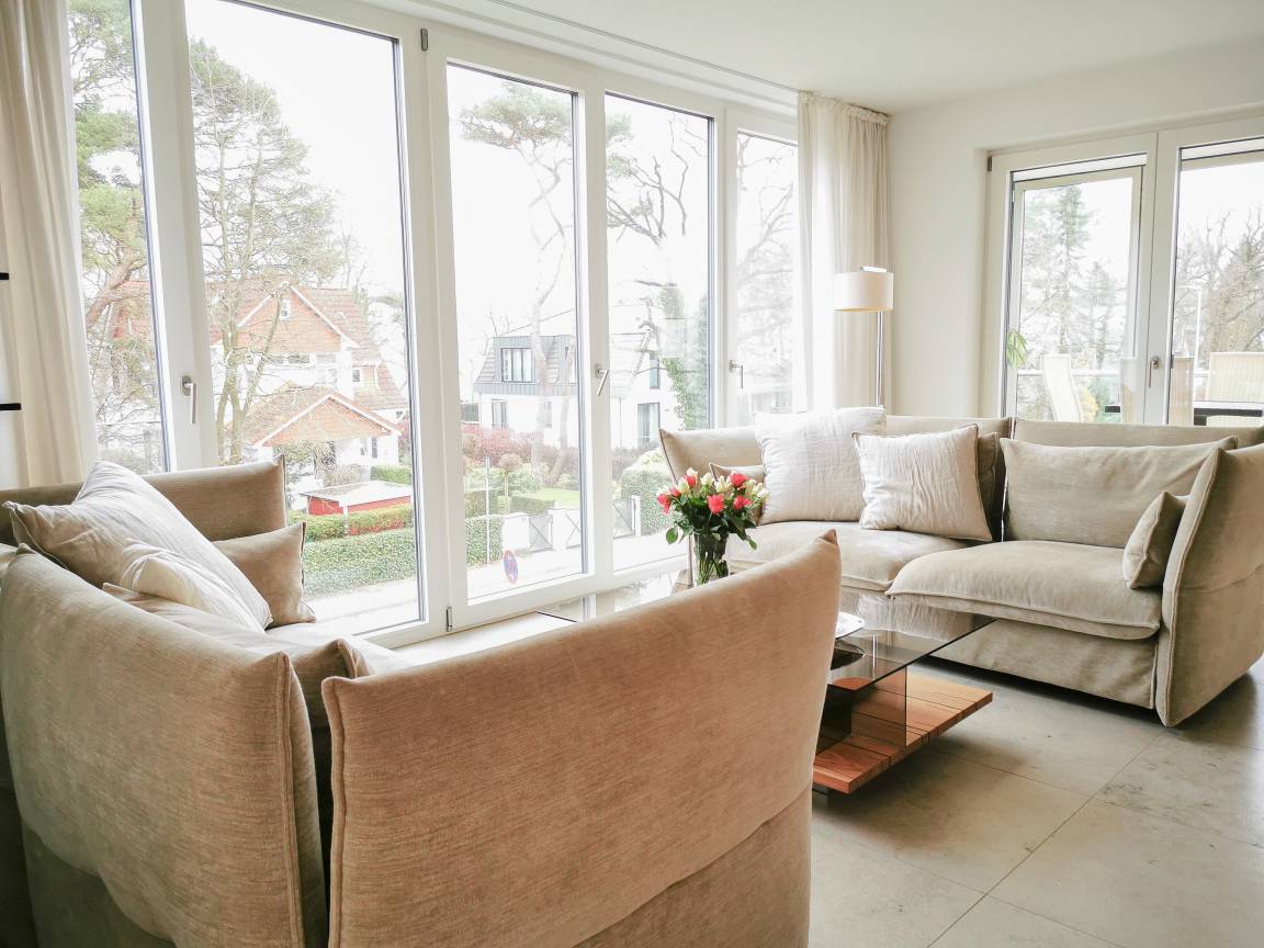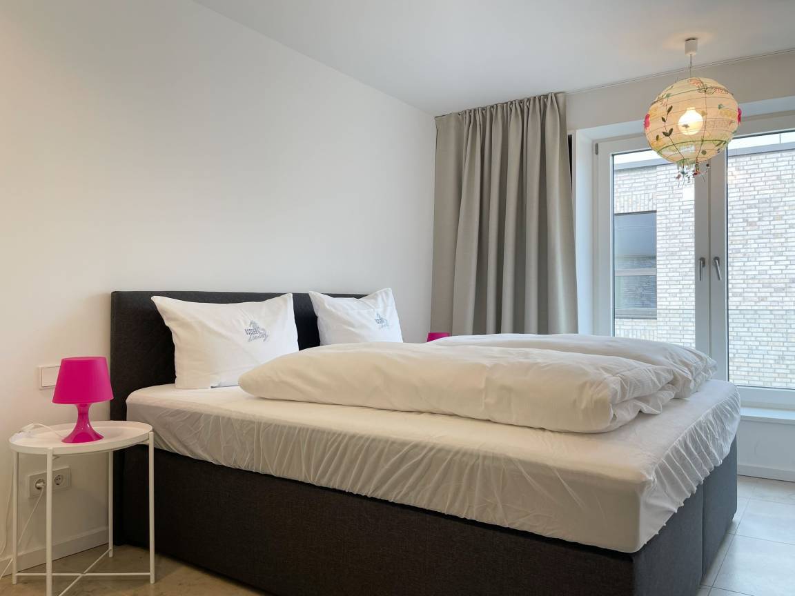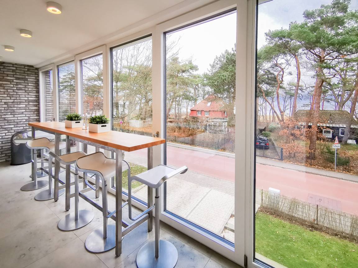 Das großzügige, lichtdurchflutete Wohnzimmer bietet einen herrlichen Ausblick, teilweise bis auf die Ostsee. Hier können Sie schöne Stunden mit Ihrer Familie verbringen und[nbsp] ein Kamin sorgt für behagliche Stunden am warmen Feuer. Die sehr hochwertige und offen gestaltete bulthaup Markenküche fügt sich harmonisch in das Gesamtbild der Wohnung ein und bietet ebenfalls einen schönen Ostseeblick. Sie ist mit einem Esstresen und Barhockern ausgestattet, an dem 6 Personen bequem Platz finden. Das Master Schlafzimmer, eingerichtet mit einem Boxspringbett (180x200), TV und Verdunkelungsvorhängen, lässt Sie nach einem schönen Urlaubstag perfekt zur Ruhe kommen. Ein großer Kleiderschrank hält genügend Möglichkeiten für Sie bereit, Ihre Urlaubsgarderobe unterzubringen. Von hier haben Sie direkten Zugang zu einem Badezimmer der Extraklasse. Die Natursteinfliesen und die helle Ausstattung des Bades sorgen für eine ausgesprochene Wohlfühlatmosphäre. Für absolute Entspannung sorgt die integrierte Sauna, die Sie natürlich kostenfrei nutzen können. Zwei weitere Schlafzimmer sind mit je einem kleinen Kleiderschrank, Verdunkelungsvorhängen und einem Boxspringbett eingerichtet.[nbsp] Selbstverständlich gehören drei TV und WLAN zum Entertainment-Paket.