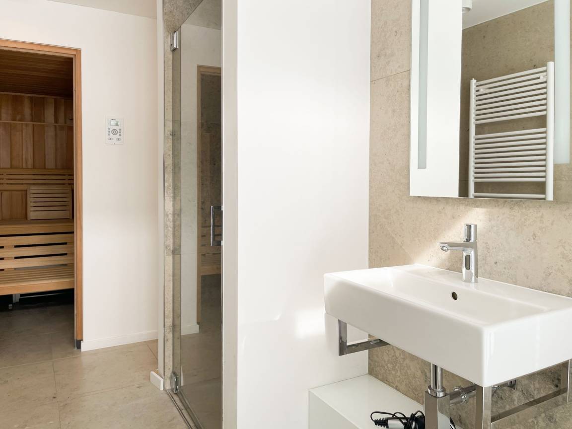 Die Ferienwohnung liegt im 2. Obergeschoss einer neuen Wohnanlage und bietet auf über 100 qm Wohnfläche mit 3 separaten Schlafzimmern, 2 Bädern und einem zusätzlichen Gäste WC hervorragend Platz für bis zu 6 Personen. Die hellen Natursteinfußböden und die geschmackvolle Inneneinrichtung sind äußerst modern und die luxuriöse Zusatzausstattung wie die integrierte Sauna, lässt keine Wünsche offen. Sie möchten ein leckeres Frühstück bei aufgehender Morgensonne genießen? Dann schieben Sie einfach die bodentiefe Glasfront des extravaganten Wintergartens auf und machen diesen zum offenen Balkon. Gartenmöbel und Sonnenliegen stehen selbstverständlich zur Verfügung.