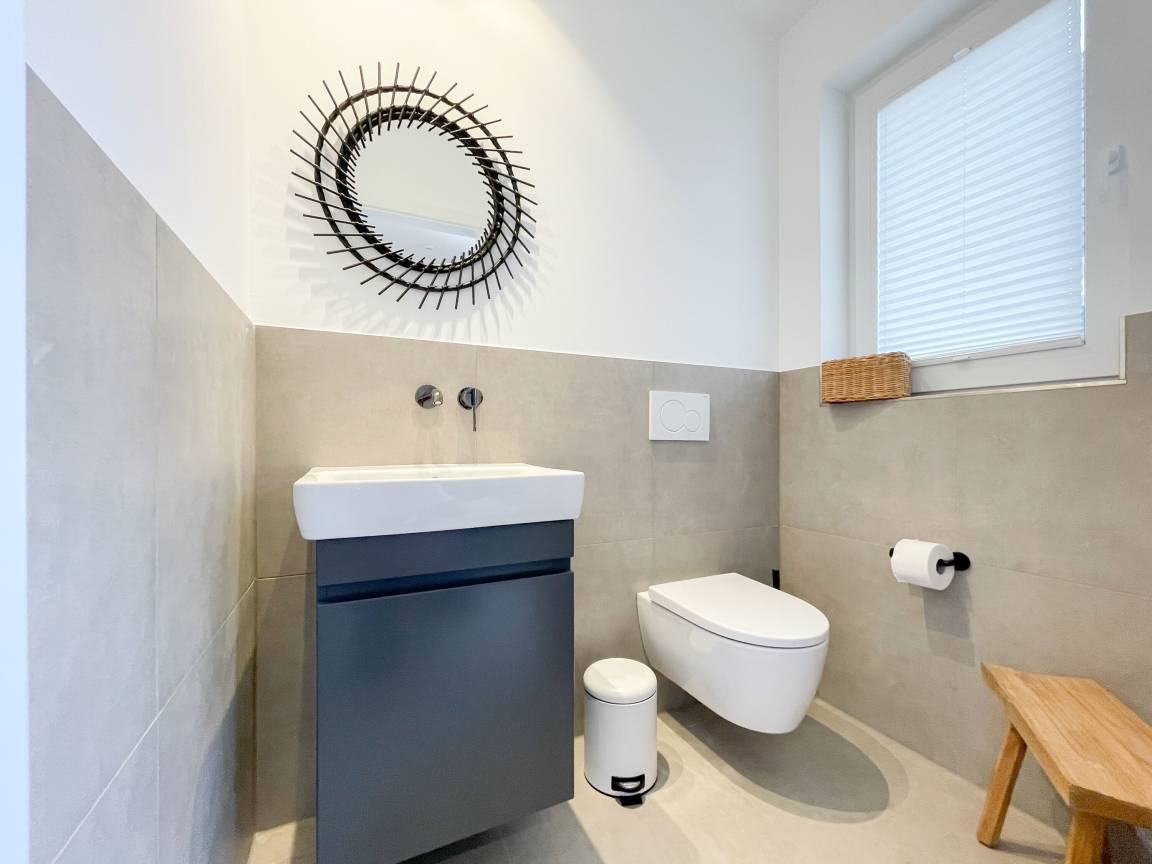 Es erwartet Sie eine wunderschönes Ferienhaus im skandinavischen Stil. Sonnige Räumlichkeiten und die äußerst hochwertige Einrichtung garantieren einen hohen Wohnstandard in einem schönen Ambiente. Mit 4 Schlafzimmern, einem exklusiven Bad mit Walk In Dusche, Radio und Sauna sowie einem zusätzlichen Gäste WC, bietet das Hygge Hus auf über 100 qm Wohnfläche ausreichend Raum für 6 Personen, um einen erholsamen Ostseeurlaub in Strandnähe zu verleben. Im Erdgeschoss erwartet Sie ein lichtdurchfluteter Wohn- Essbereich, großzügig geschnitten und hochwertig möbliert. Die integrierte Einbauküche in perfekter Ausstattung eignet sich hervorragend für gemeinsames Kochen. Die vorgelagerte Terrasse in Südwestausrichtung ist mit Gartenmöbeln und einem Strandkorb ausgestattet. Im Eingangsbereich befindet sich die Garderobe und ein modernes Gäste WC mit Fenster. Im Obergeschoss gibt es zwei separate Schlafzimmer mit Boxspringbetten (180x200 und 140x200), TV und Kleiderschrank. Das hochwertige Wellnessbad mit großzügiger Walk-In Dusche und integrierter Sauna befindet sich ebenfalls im Obergeschoss. Die Schlafzimmer 3 und 4 befinden sich im Dachgeschoss und sind jeweils mit Boxspringbetten (120x200) und Kommode eingerichtet. Alle Fenster sind mit elektrischen Außenjalousien versehren, außer[nbsp] 1 Schlafzimmer im Dachgeschoss, das mit Verdunkelungsplissees ausgestattet ist. Waschmaschine und Trockner sind im separaten Technikraum neben der Terrasse untergebracht.