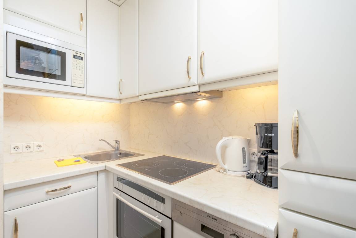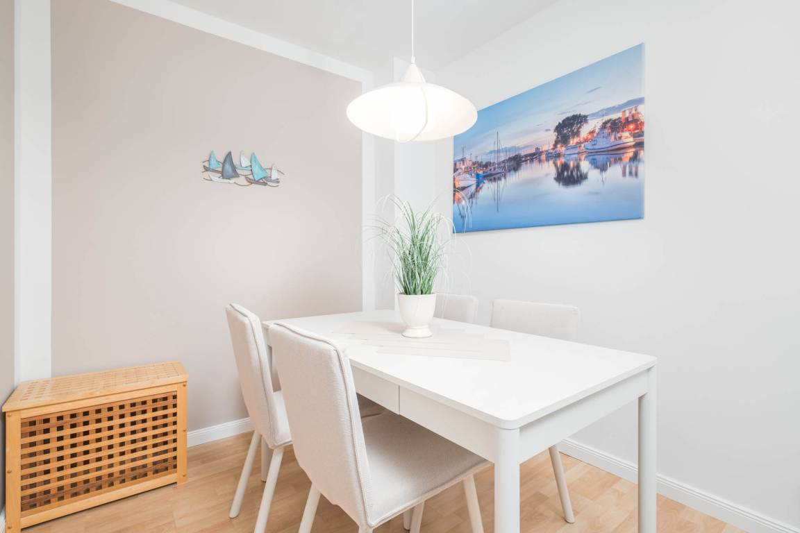 Das Appartement in Timmendorfer Strand / Niendorf an der Ostsee hat eine schöne Essecke und voll ausgestattete Einbauküche mit Geschirrspüler und Mikrowelle, sodass Sie sehr leckere Speisen im Appartement vorbereiten können.