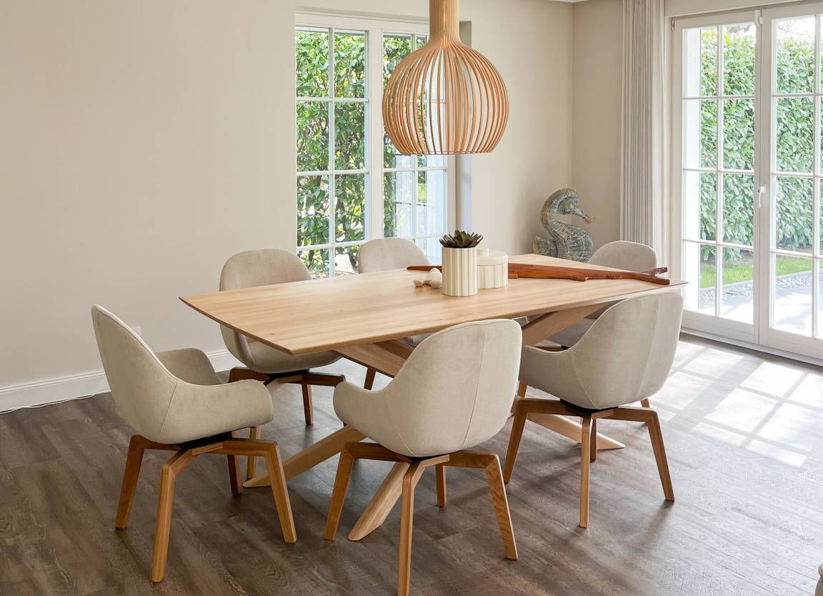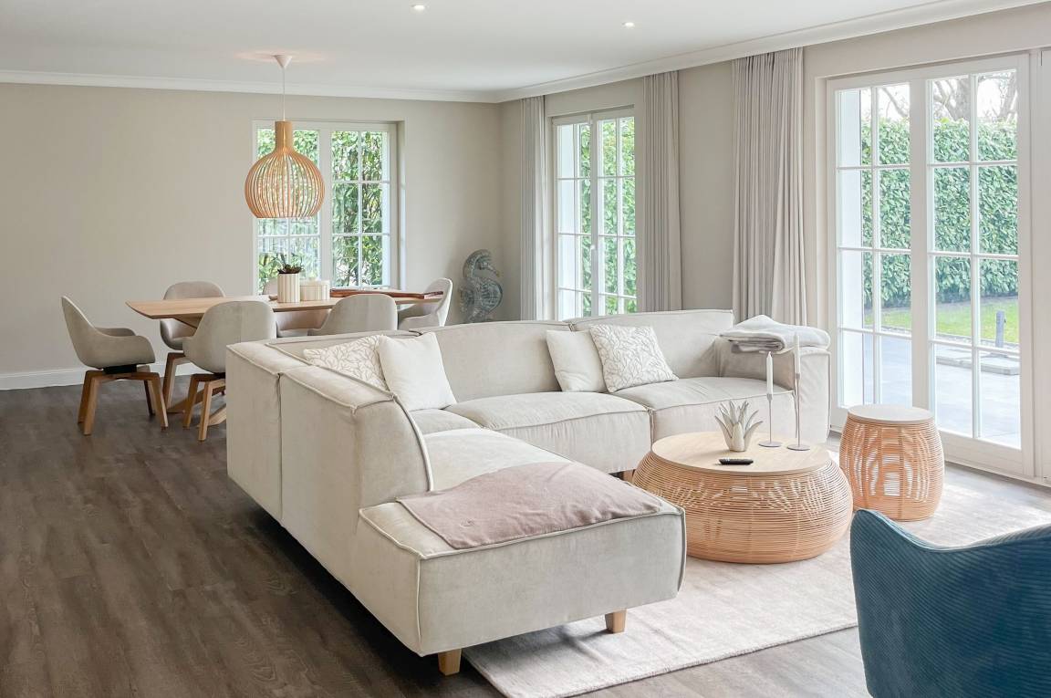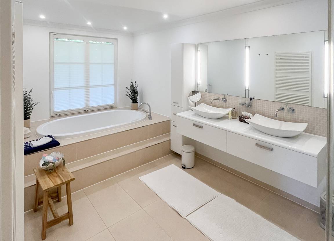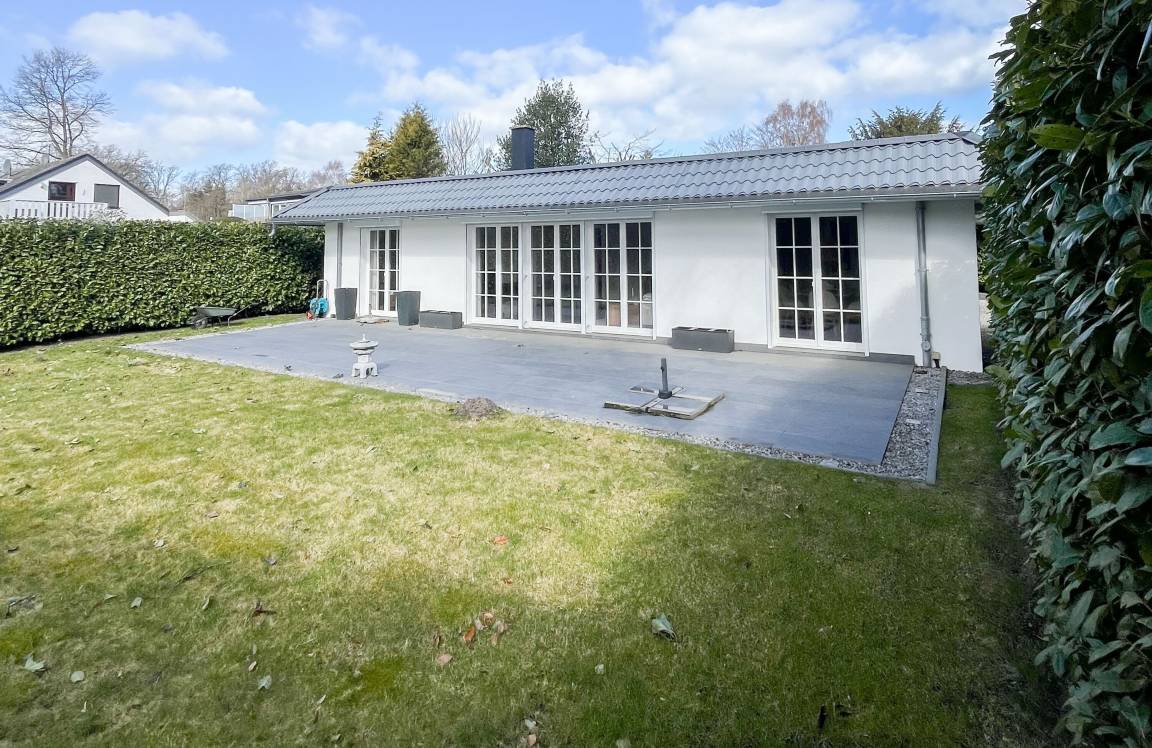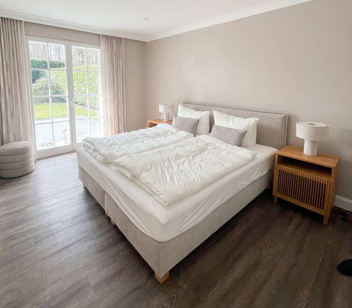 Es erwartet Sie ein wunderschöner Bungalow, der bereits beim Eintreten Behaglichkeit und Wohlbefinden vermittelt. Warme Farben, viel Licht und die äußerst hochwertige Ausstattung garantieren höchsten Wohnkomfort für den anspruchsvollen Gast. Alle Fenster sind mit elektrischen Außenjalousien versehen und die Fußbodenheizung sorgt für ein angenehmes Raumklima. 145 qm Wohnfläche auf einer Wohnebene bieten ausreichend[nbsp] Raum für 4 Personen, um einen entspannten Ostseeurlaub in Strandnähe zu verleben. Es erwartet Sie ein äußerst großzügig bemessener und hochwertig eingerichteter Wohn- und Essbereich mit Blick auf die Sonnenterrasse in Südausrichtung, die sich über die gesamte Hausbreite erstreckt und von einem privaten Gartengrundstück umgeben ist. Loungemöbel, Sonnenliegen und Gartenmöbel laden dazu ein, viele gemütliche Stunden im Freien zu verbringen. Ein Highlight ist definitiv die große und perfekt ausgestattete Wohnküche, die alle Annehmlichkeiten bietet, um jeden Hobbykoch zu begeistern. Hier können Sie sich in geselliger Runde beim Kochen austauschen und kreativ sein. Die beiden äußerst geräumigen Schlafzimmer sind mit Boxspringbetten (180x200), Smart-TV und ausreichend Schrankfläche ausgestattet. Es steht ein exklusives Bad ensuite mit XL Badewanne, ebenerdiger Dusche, WC, Bidet und Doppelwaschtisch zur Verfügung. Das zweite Bad ist mit einer ebenerdigen Dusche, Waschbecken und WC ausgestattet. In einem separaten Abstellraum sind Waschmaschine und Trockner untergebracht. Auf dem Grundstück befinden sich 2 PKW-Stellplätze und Fahrräder können trocken unter dem Carport abgestellt werden.