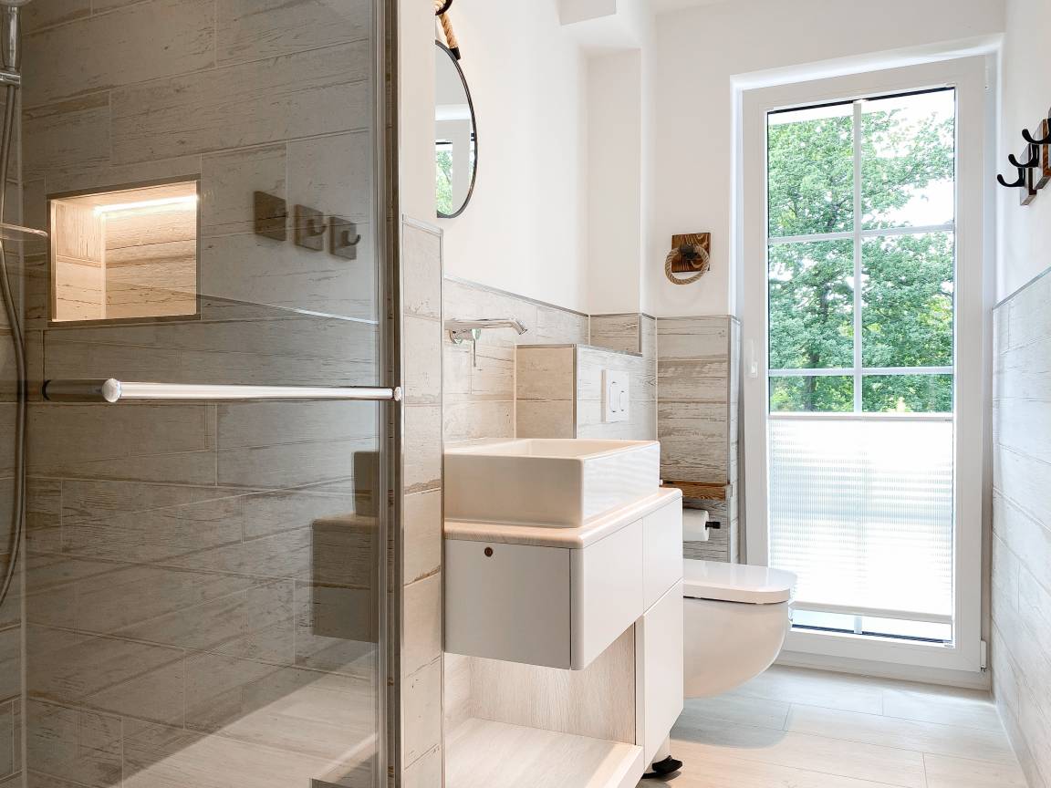 Im East-Coast Stil mit Südstaaten-Elementen und großen Balkonen, teilweise mit Meerblick, freuen wir uns auf Gäste, die sich bei uns zuhause fühlen sollen und gerne wiederkommen. Unsere Farben sind "sand" und "weiß" verbunden mit dunklen Holzelementen, alles im Riviera Maison-Stil. Die Grohe Bäder machen aus der Dusche ein Paradies mit großer Auswahl und Einstellungen. Die hochwertigen Küchen sind bestens ausgestattet und machen Lust auf gemeinsames Kochen. Lassen sie sich überraschen durch die interessanten Holzelemente und die vielen kleinen wohnlichen Details! Das Harbour Beach 53 ist massiv gebaut mit Bio- und ökologischen Elementen wie Erdwärme, Fotovoltaik und Stromtankstelle. Für Yogagruppen und Veranstaltungen steht ein 70qm großer Übungsraum mit modernster Laserbeamer-Übertragungstechnik zur Verfügung.