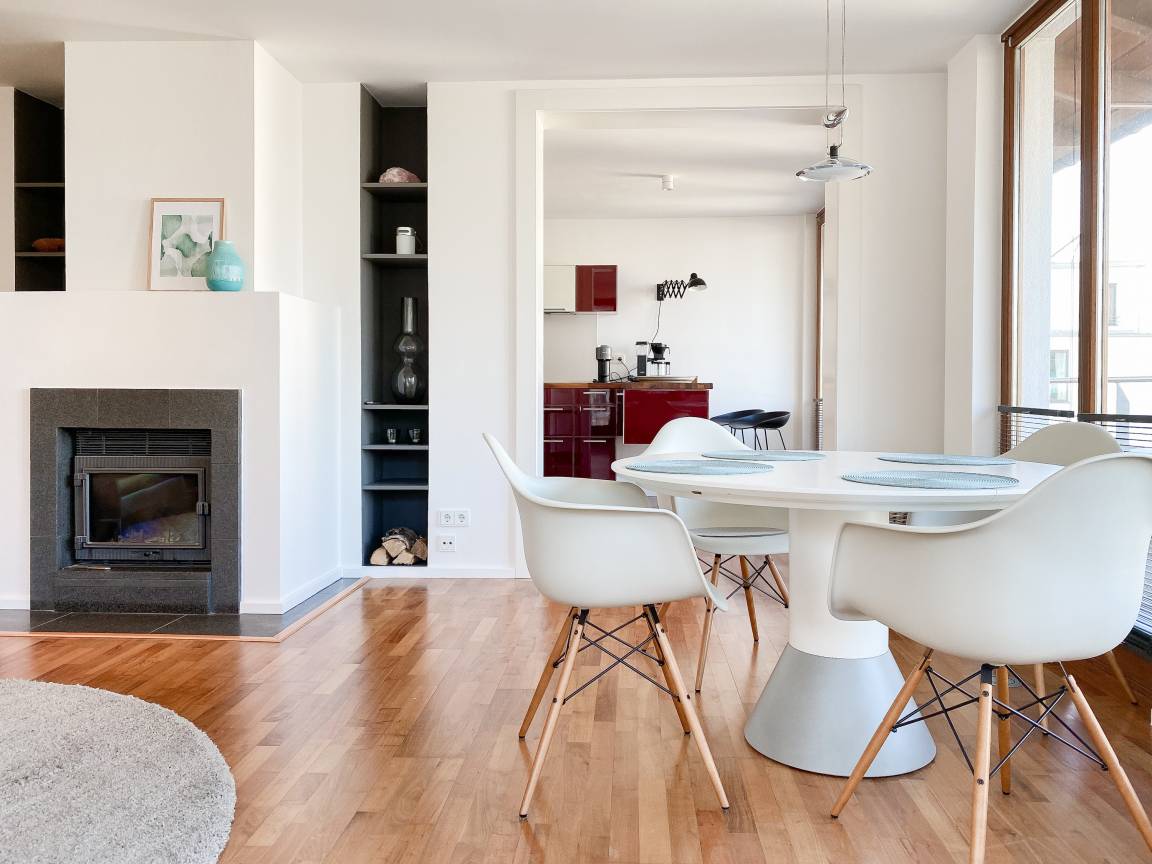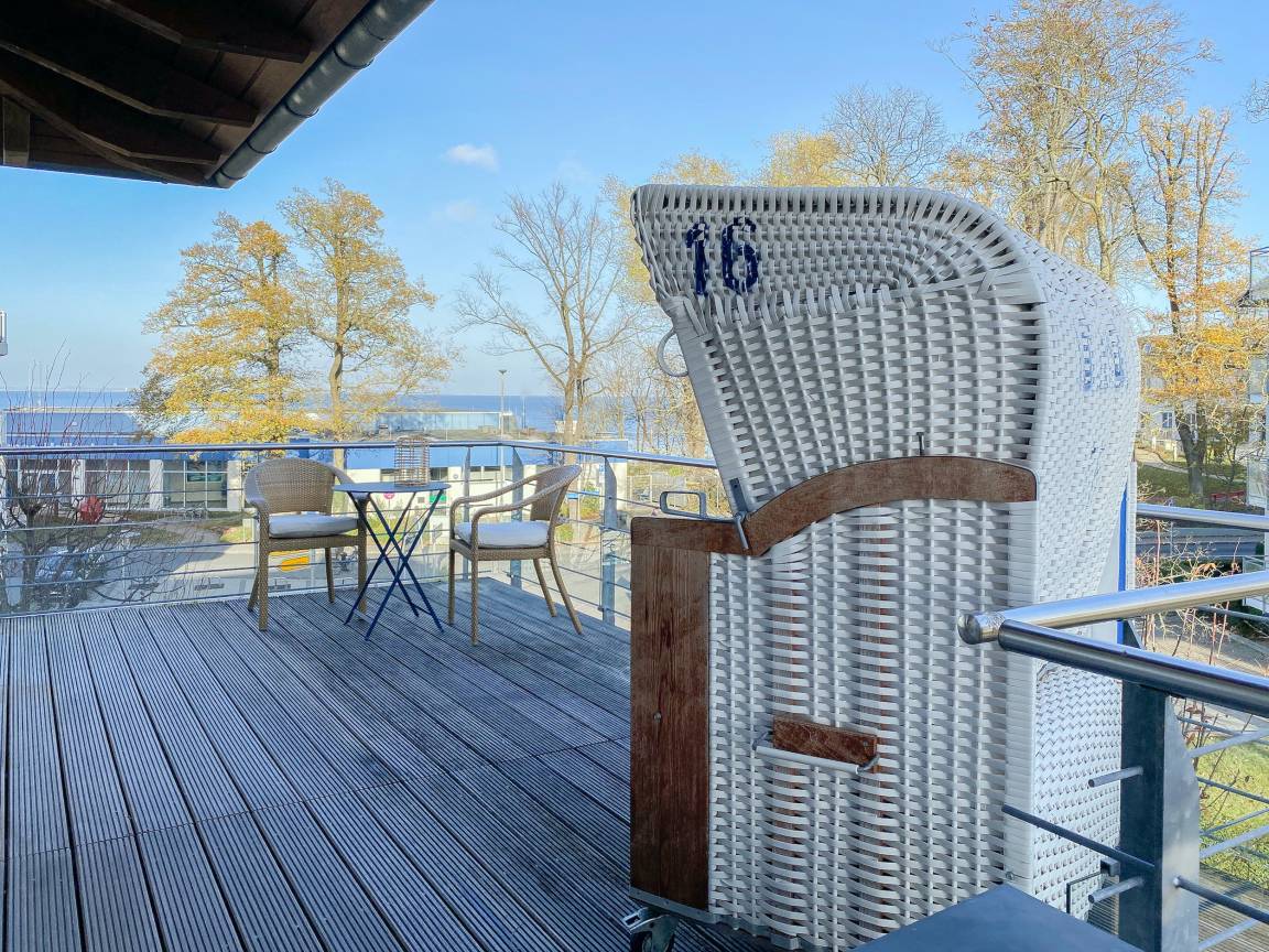 Es erwarten Sie lichtdurchflutete, großzügige Räumlichkeiten auf über 100 qm Wohnfläche und eine riesige, umlaufende Dachterrasse, die von allen Räumen zugänglich ist und mit einem Strandkorb, Gartenmöbeln und Sonnenliegen ausgestattet ist. Genießen Sie die herrliche Aussicht bis auf die Ostsee und Sonne oder Schatten je nach Belieben. Durch die Kombination von anspruchsvollem Design, hochwertigen Materialien und warmen Farben ist es gelungen, eine angenehme Atmosphäre in herrlichem Ambiente zu schaffen. Im 2. Obergeschoss erwartet Sie ein großzügiger Wohn- Essbereich mit Kamin und Ostseeblick. Die anschließende, halb offene Küche ist bestens ausgestattet und verfügt neben einer Frühstücksbar über reichlich Platz für gemeinsames Kochen. Es gibt 2 separate Schlafzimmer mit Doppelbetten (180x200 und 160x200), eines mit großem Kleiderschrank und Verdunkelungsvorhängen, das andere mit einer Kommode, Kleiderständer und Verdunkelungsjalousien sowie 2 hochwertige Bäder. WLAN steht selbstverständlich zur kostenlosen Nutzung zur Verfügung. Ein Fahrstuhl ist vorhanden.