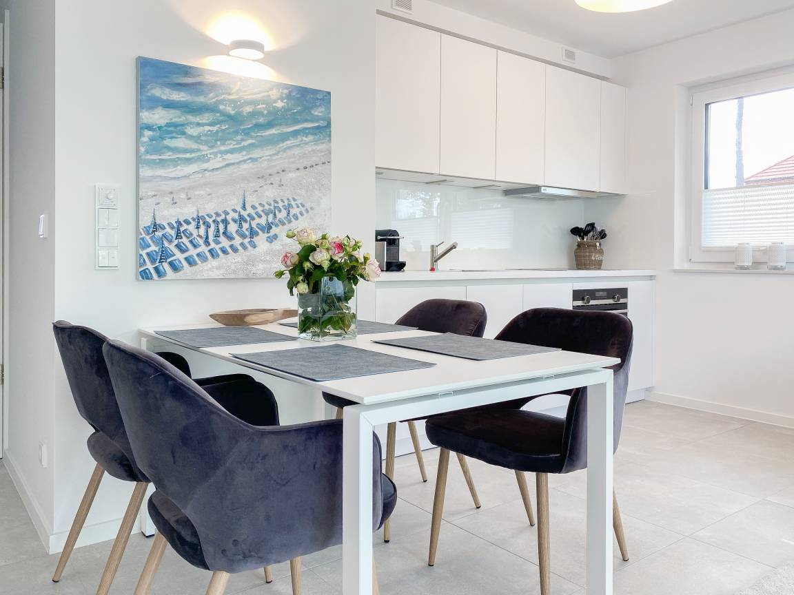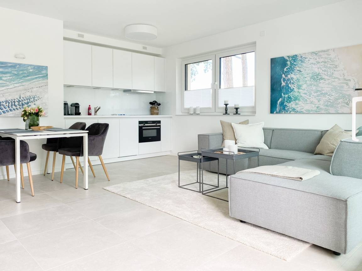 Zehn exklusive Wohnungen mit Balkonen und Terrassen zur Meerseite bieten traumhafte Ausblicke bis auf die Ostsee und jeglichen Komfort zur Gewährleistung eines hohen Wohnstandards in schönem Ambiente. Alle Wohnungen verfügen über moderne Bäder mit Walk In Duschen, Fußbodenheizung und elektrischen Außenjalousien mit einstellbaren Lamellen, die gleichermaßen für Tageslicht und Privatsphäre sorgen.