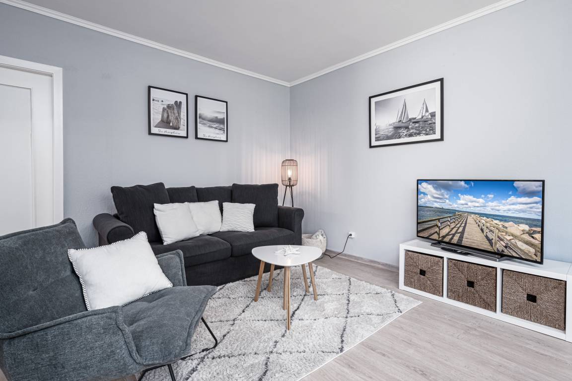 Im Wohnzimmer entspannen Sie sich auf der bequemen Schlafcouch mit Sessel und Smart-TV. Auch die neue integrierte Küche bietet mit Ceranfeld, Backofen und Geschirrspüler viele Möglichkeiten sich im Urlaub kulinarisch bei gemeinsamen Kochsession's auszulassen und diese im Essbereich zu genießen. Von hier aus gelangen Sie auch auf den ruhig gelegenen Balkon mit Westausrichtung.