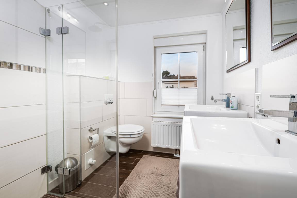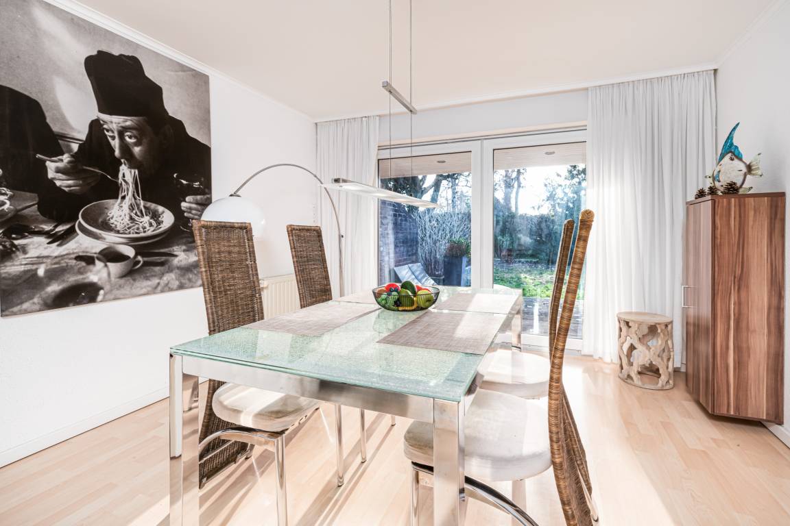 Für gemeinsame Kochabende steht Ihnen die hochwertig ausgestattete Küche zur Verfügung. Das separate Schlafzimmer verfügt über ein Doppelbett (2 x 80 cm x 200 cm) und einen Fernseher. Zur Verdunklung sind hier Außenrollläden angebracht. Im Badezimmer mit Tageslicht finden Sie neben 2 separaten Waschbecken auch eine ebenerdige Dusche vor. Abgerundet wird dieses Angebot durch einen hübschen Garten mit Südausrichtung, in dem Sie entspannte Stunden mit der ganzen Familie verbringen können.