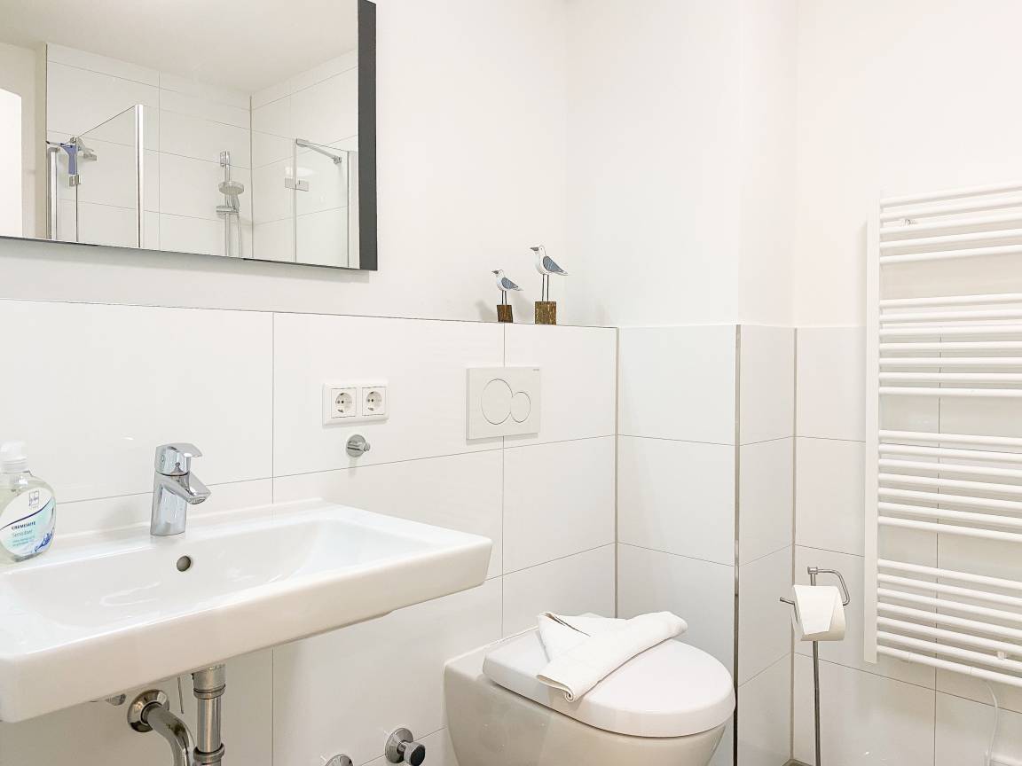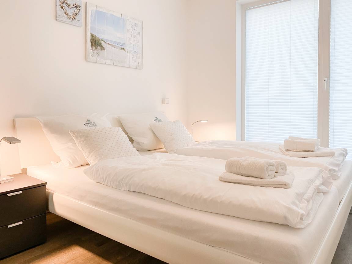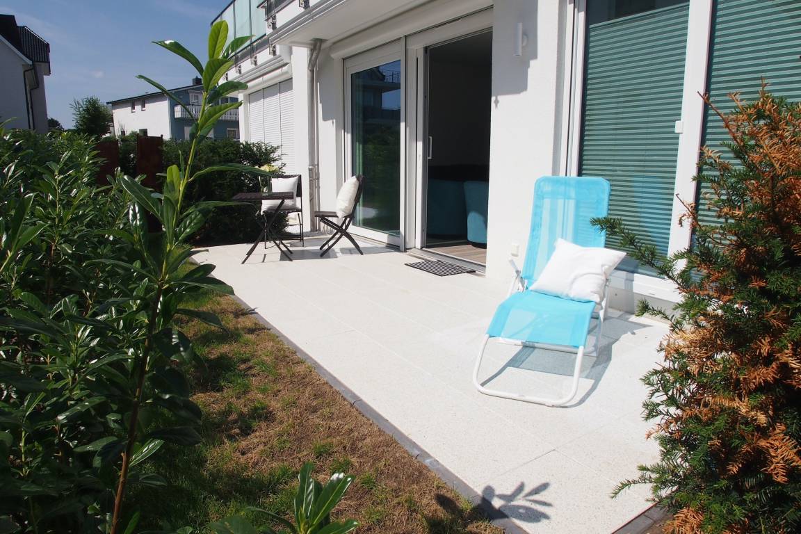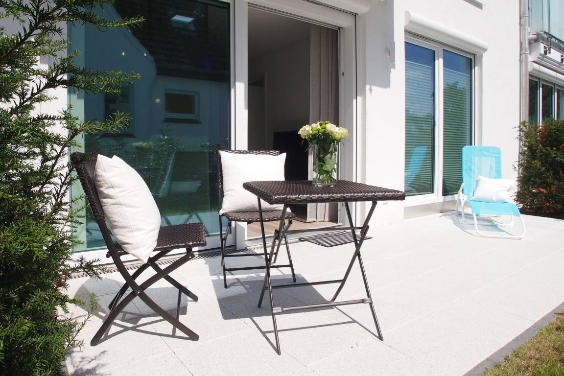 Die Ferienwohnung "Lütte Krabbe" bietet ausreichend Platz für 2-3 Personen. Große, bodentiefe Fensterelemente sorgen für einen hellen, freundlichen Wohnbereich, der mit einem Sofa mit Schlaffunktion, zwei Sesseln und TV ausgestattet ist. Auf der Sonnenterrasse in Südausrichtung, die sich über die gesamte Breite der Wohnung erstreckt, lässt es sich mit reichlich Sonnenschein vom Frühstück bis zum Abend herrlich entspannen. Die offene Küche mit integriertem Essbereich verfügt über alle technischen Geräte wie Backofen, Ceranfeld und Geschirrspüler sowie alle notwendigen Küchenutensilien. Das separate Schlafzimmer ist mit einem Doppelbett (180x200) und ausgestattet verfügt ebenfalls über einen Terrassenzugang.[nbsp] Alle Räume sind mit elektrischen Außenjalousien versehen und lassen sich vollständig verdunkeln. Das moderne Duschbad verfügt über Fußbodenheizung und einen Handtuchwärmer. WLAN steht selbstverständlich zur kostenlosen Nutzung zur Verfügung.